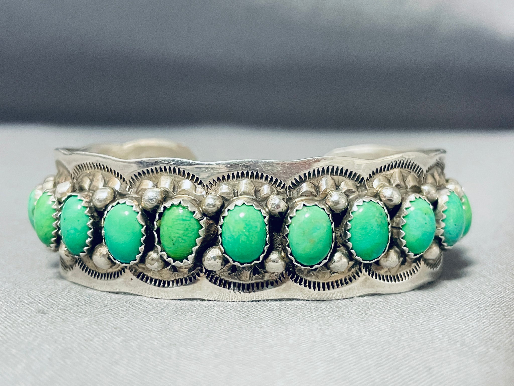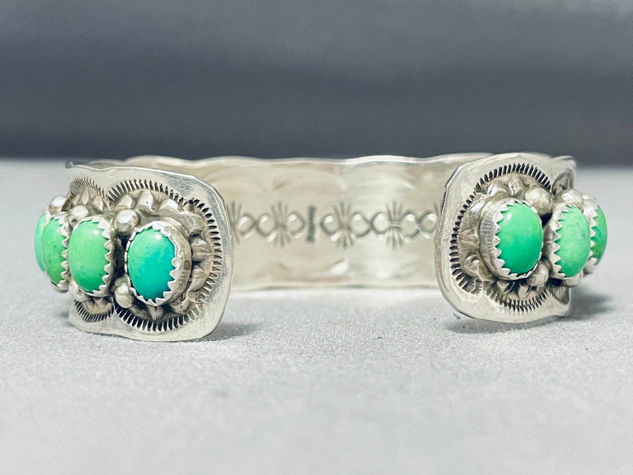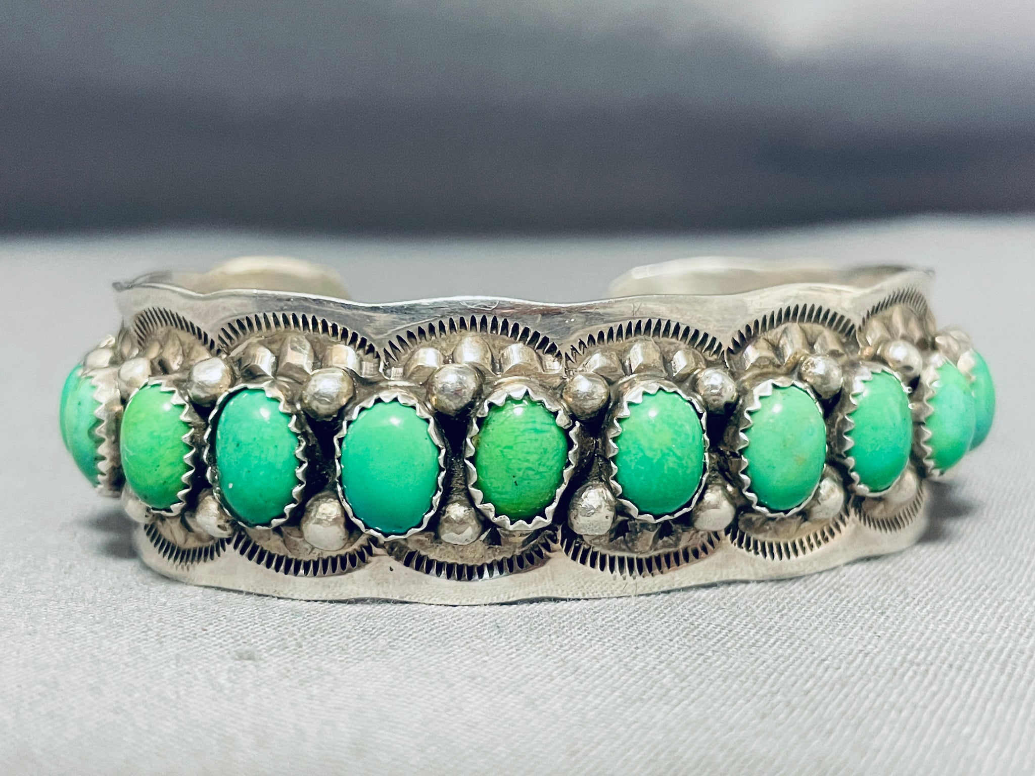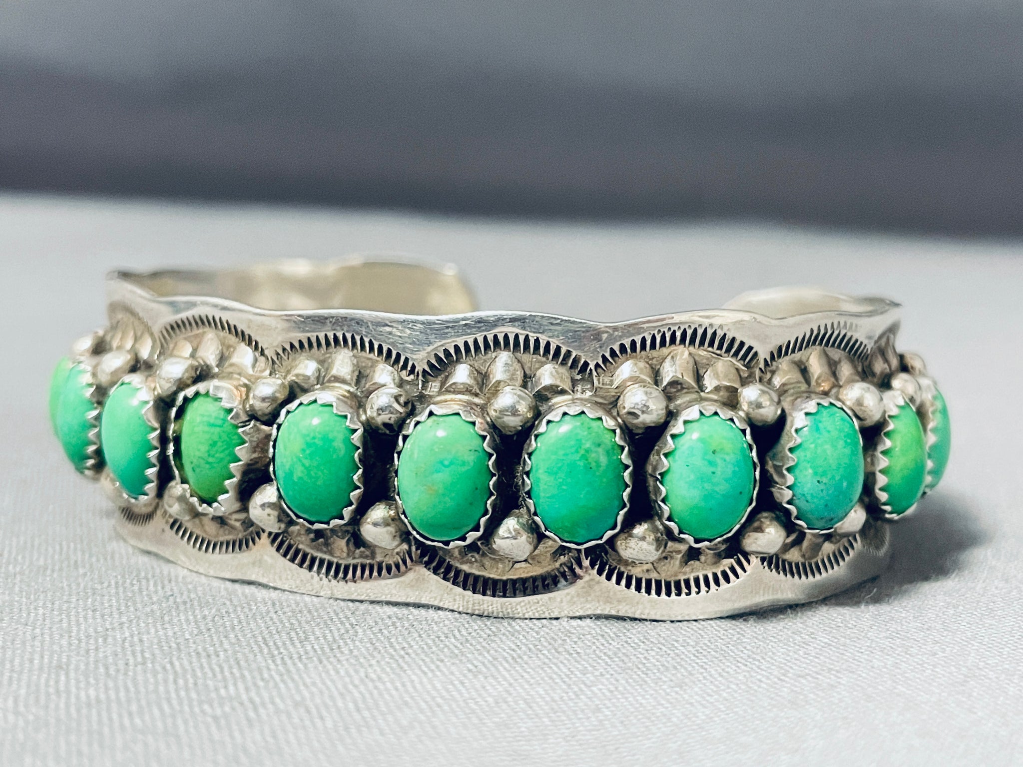 Unique Vintage Native American Navajo Green Turquoise Sterling Silver Bracelet
