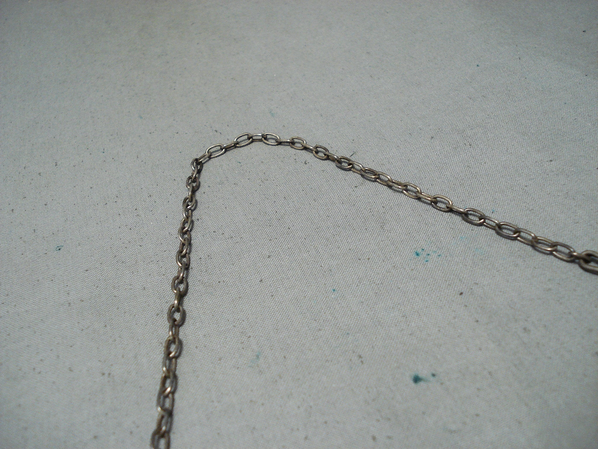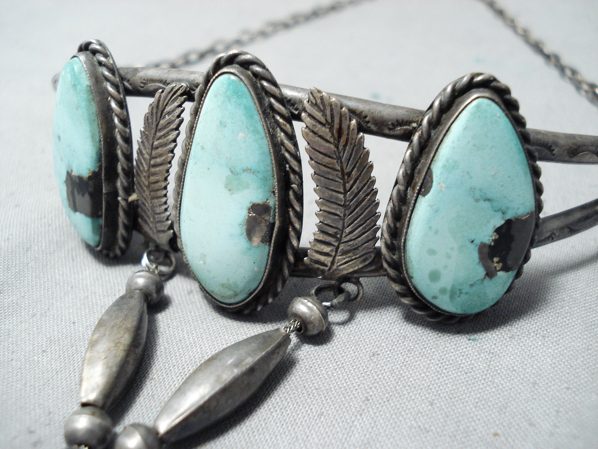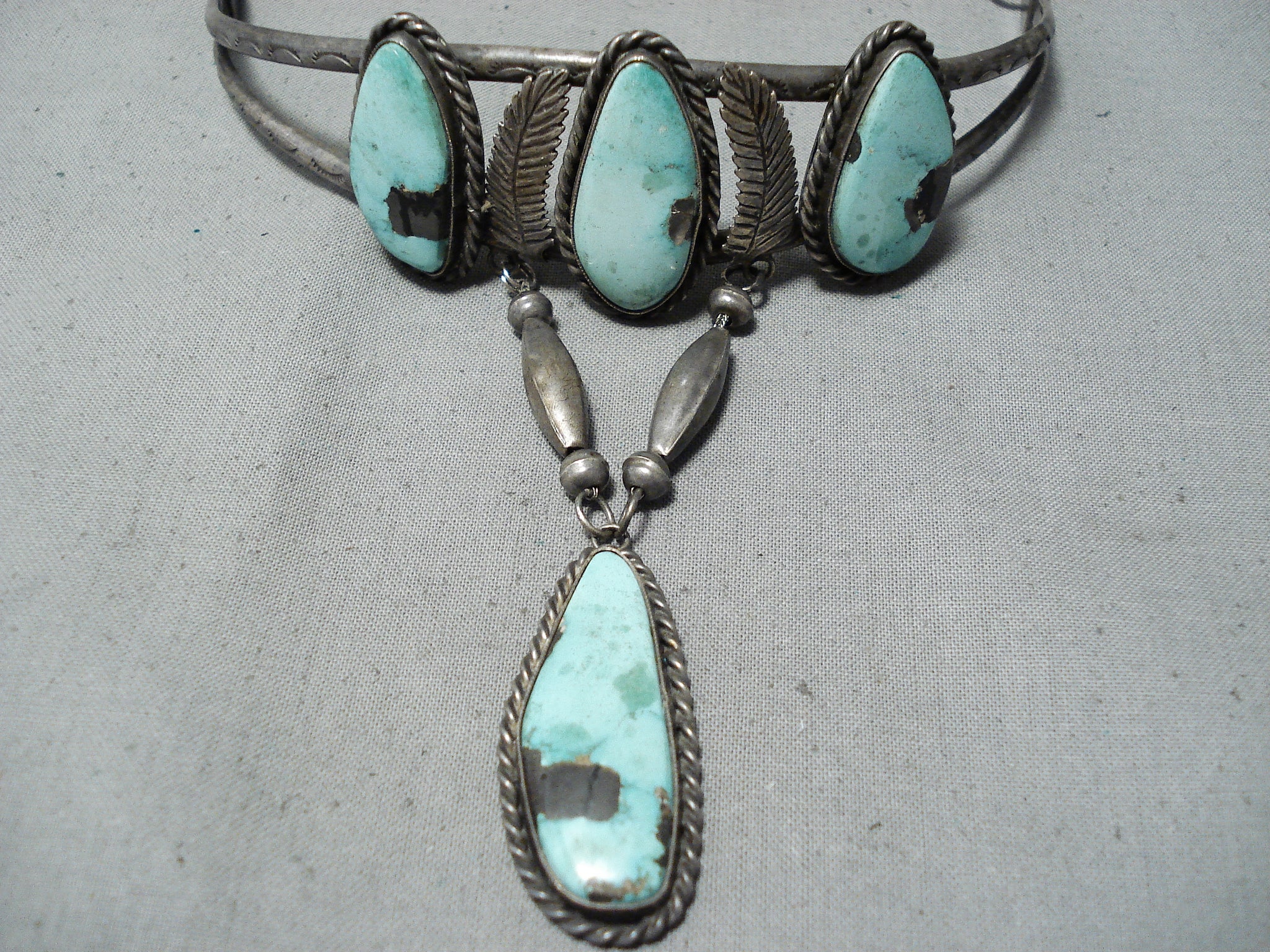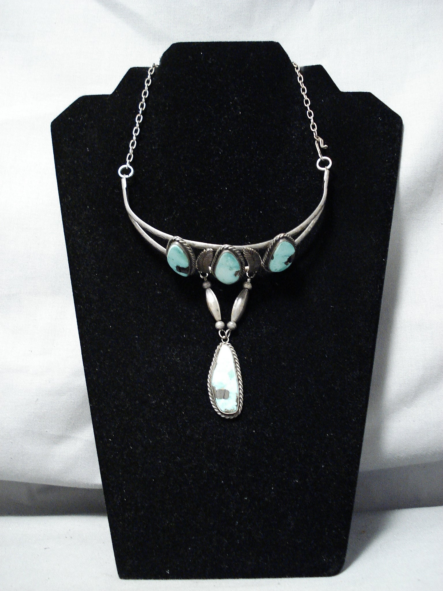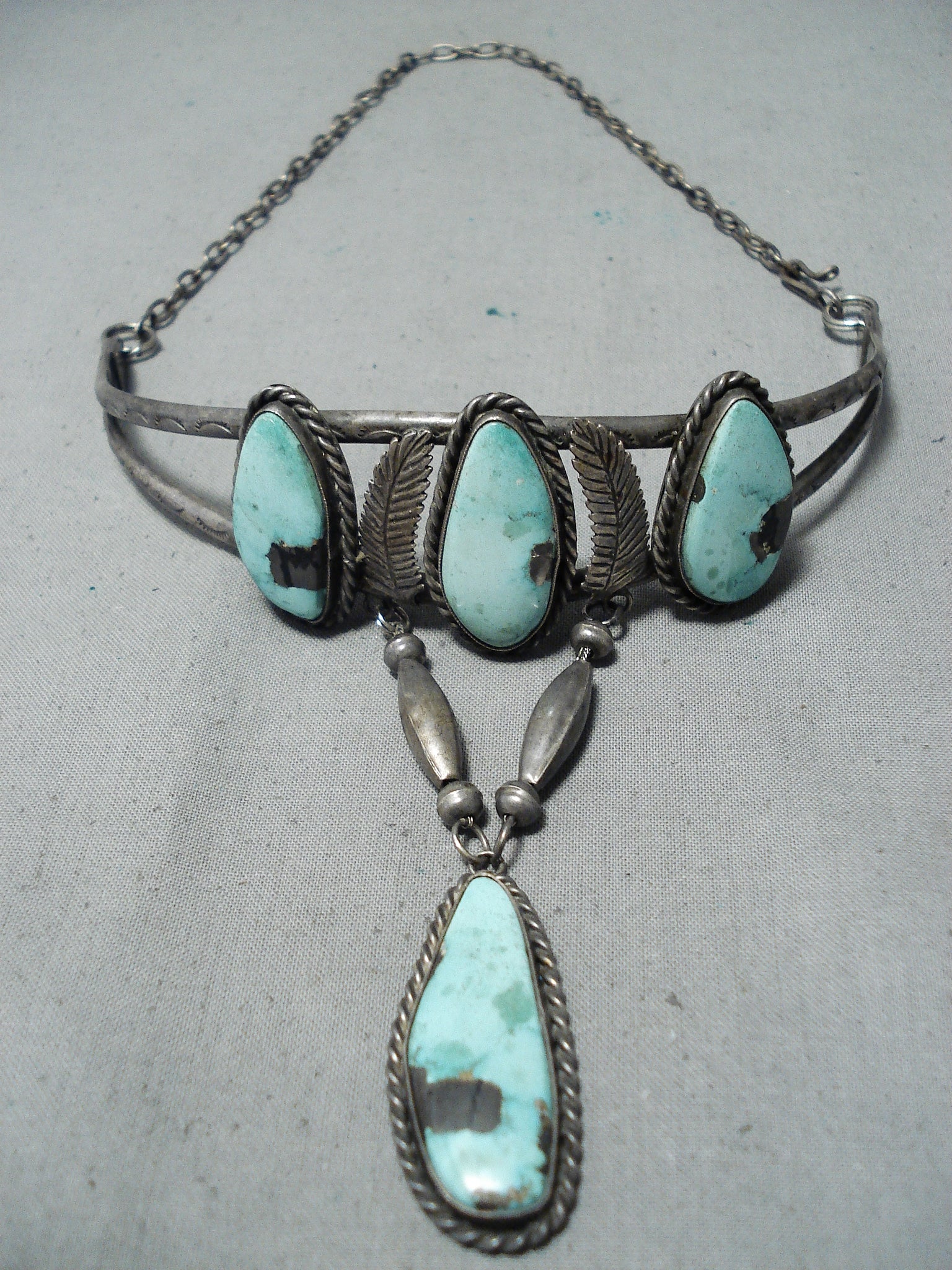 Unique Vintage Native American Navajo Green Turquoise Sterling Silver Necklace Old