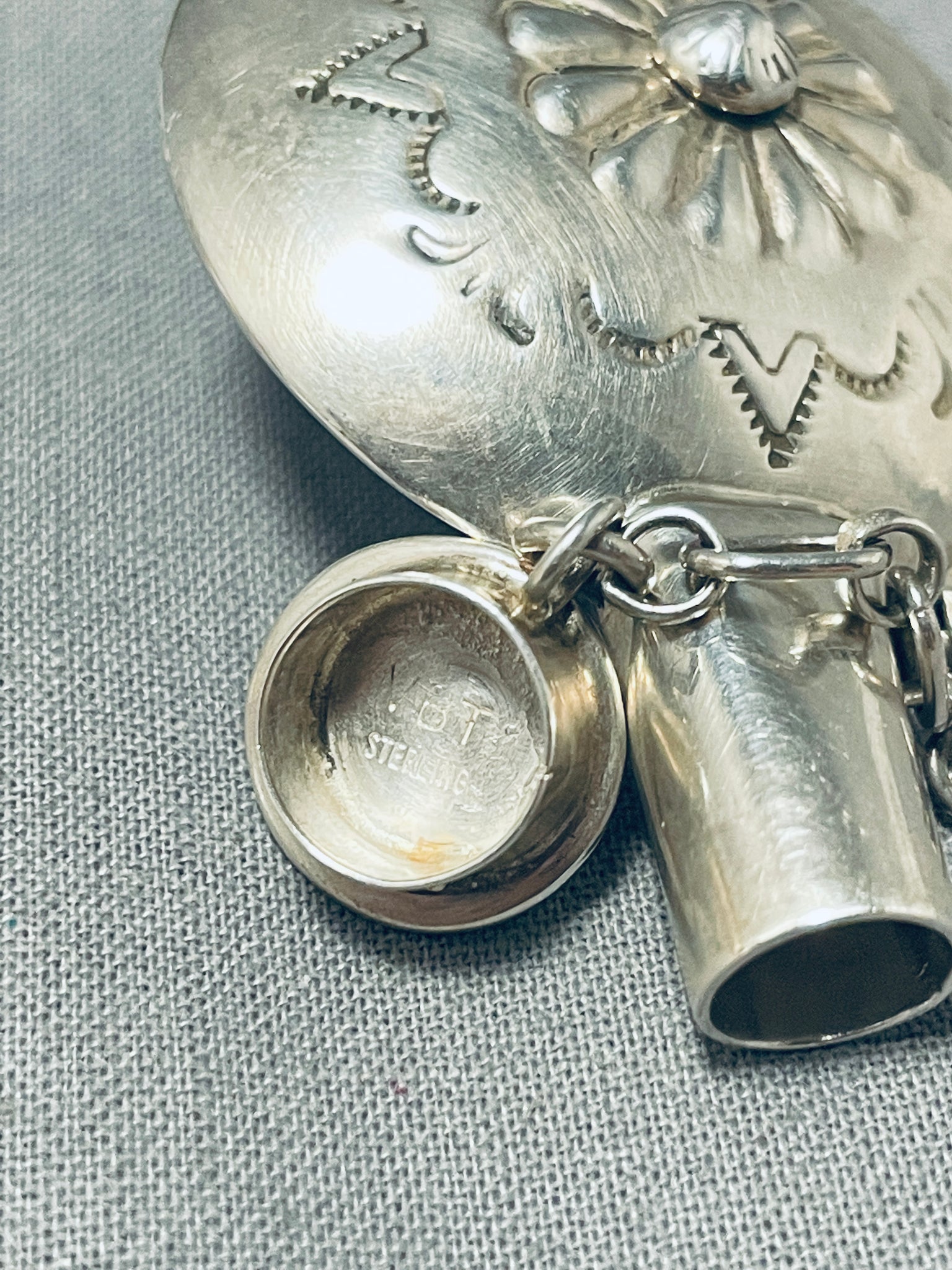 Unique Vintage Native American Navajo Handcarved Sterling Silver Flask