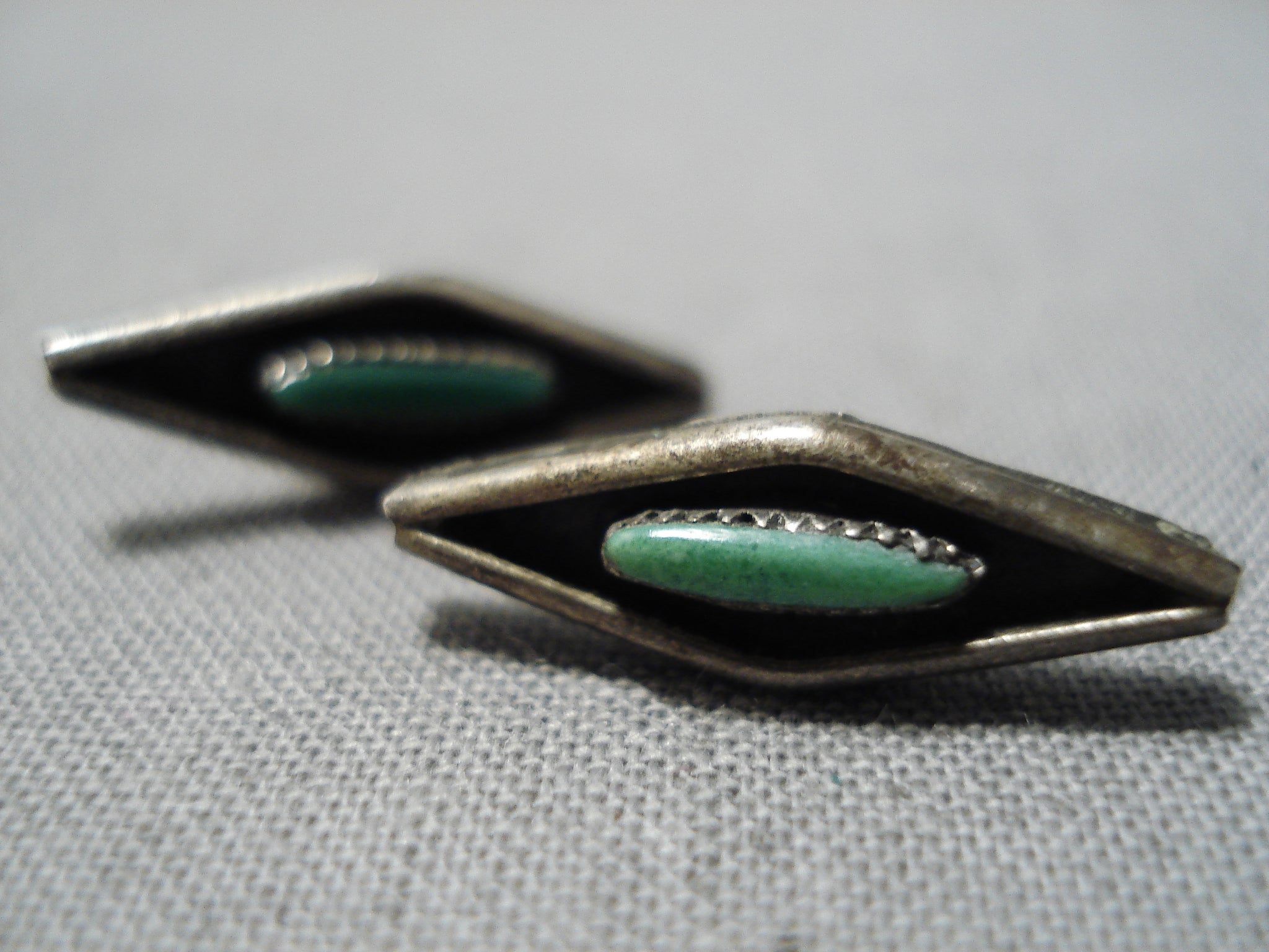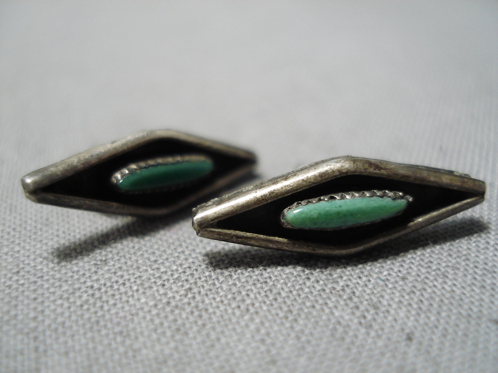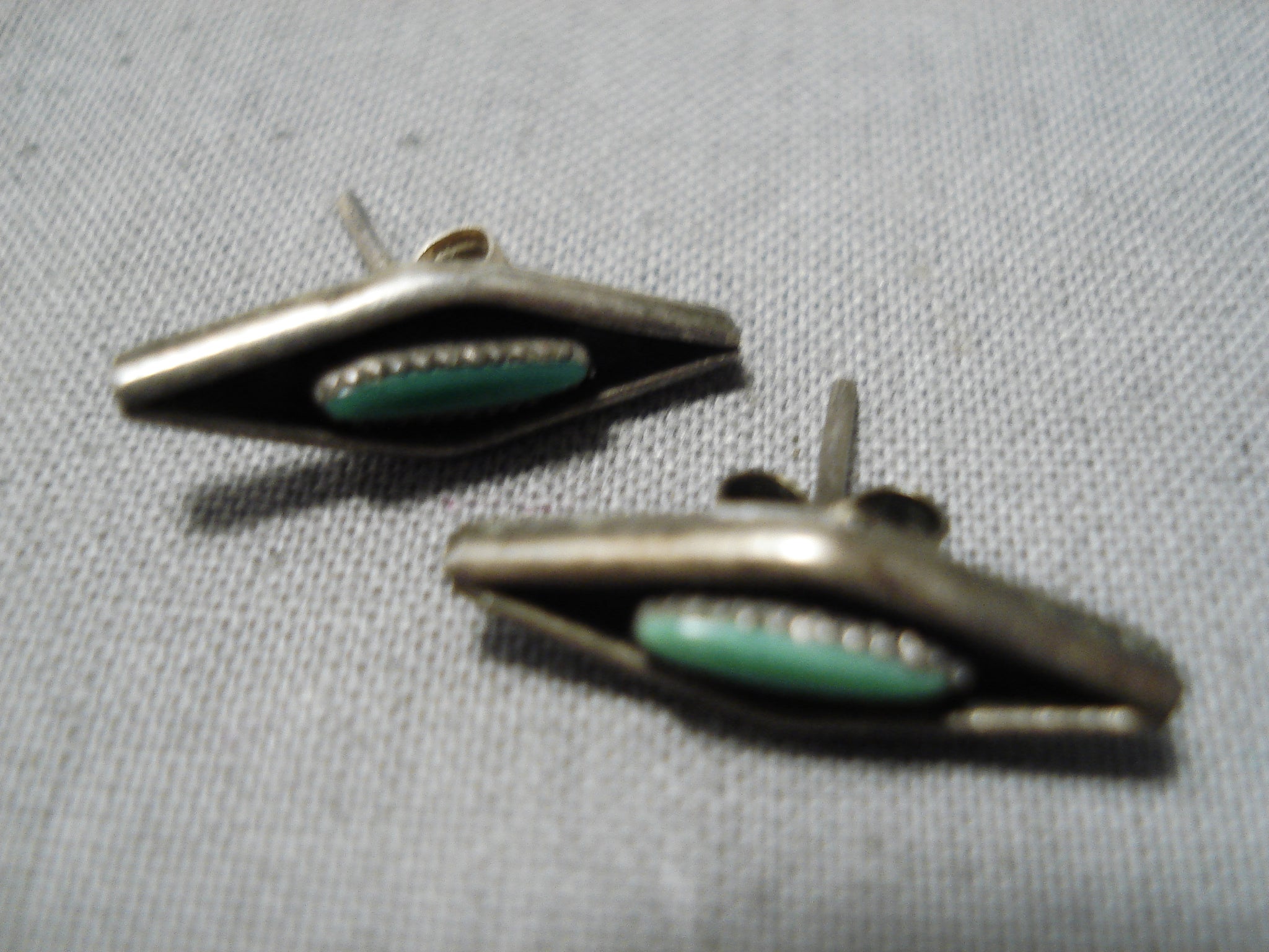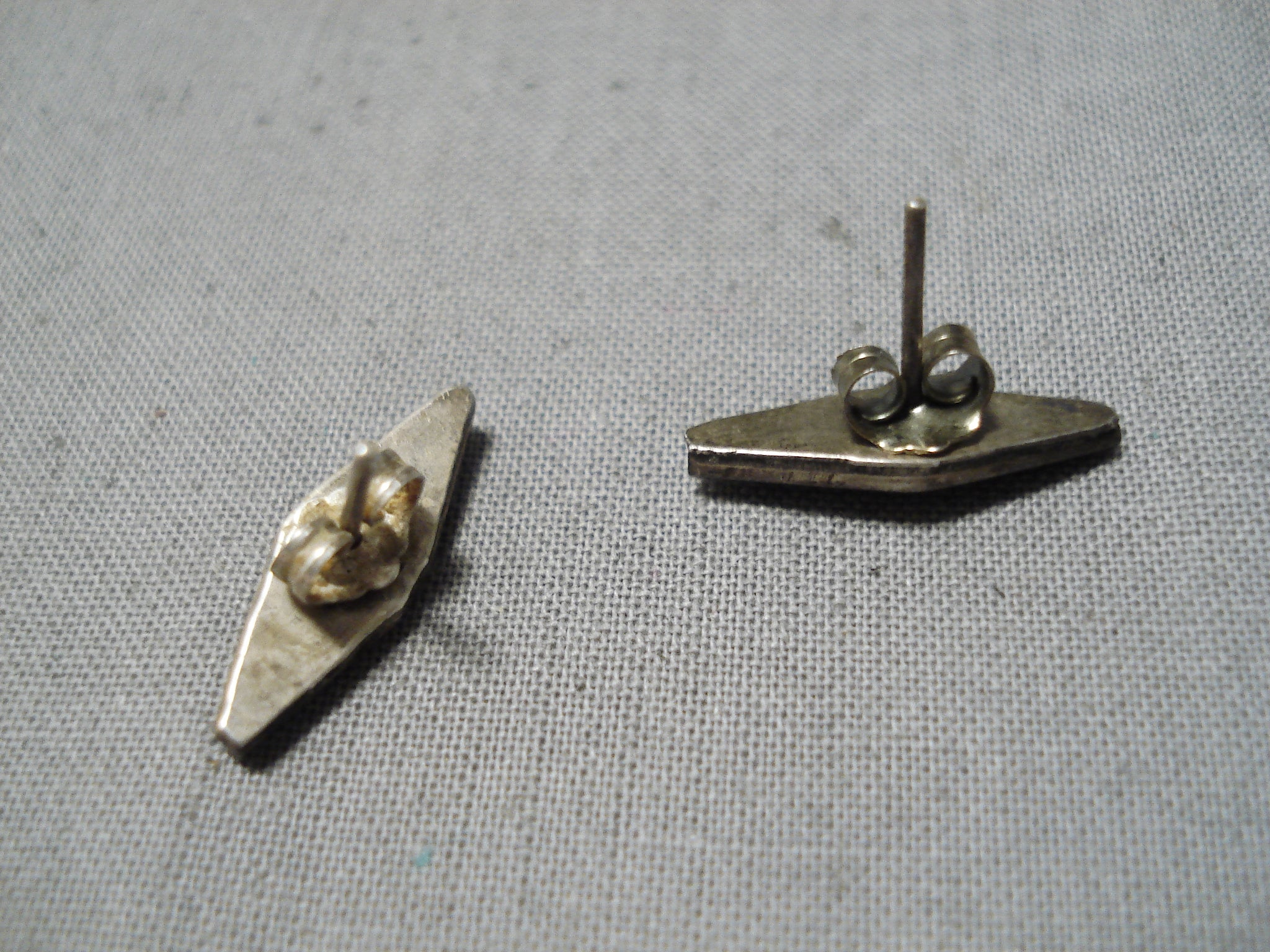 Unique Vintage Native American Navajo Royston Turqoise Sterling Silver Earrings Old