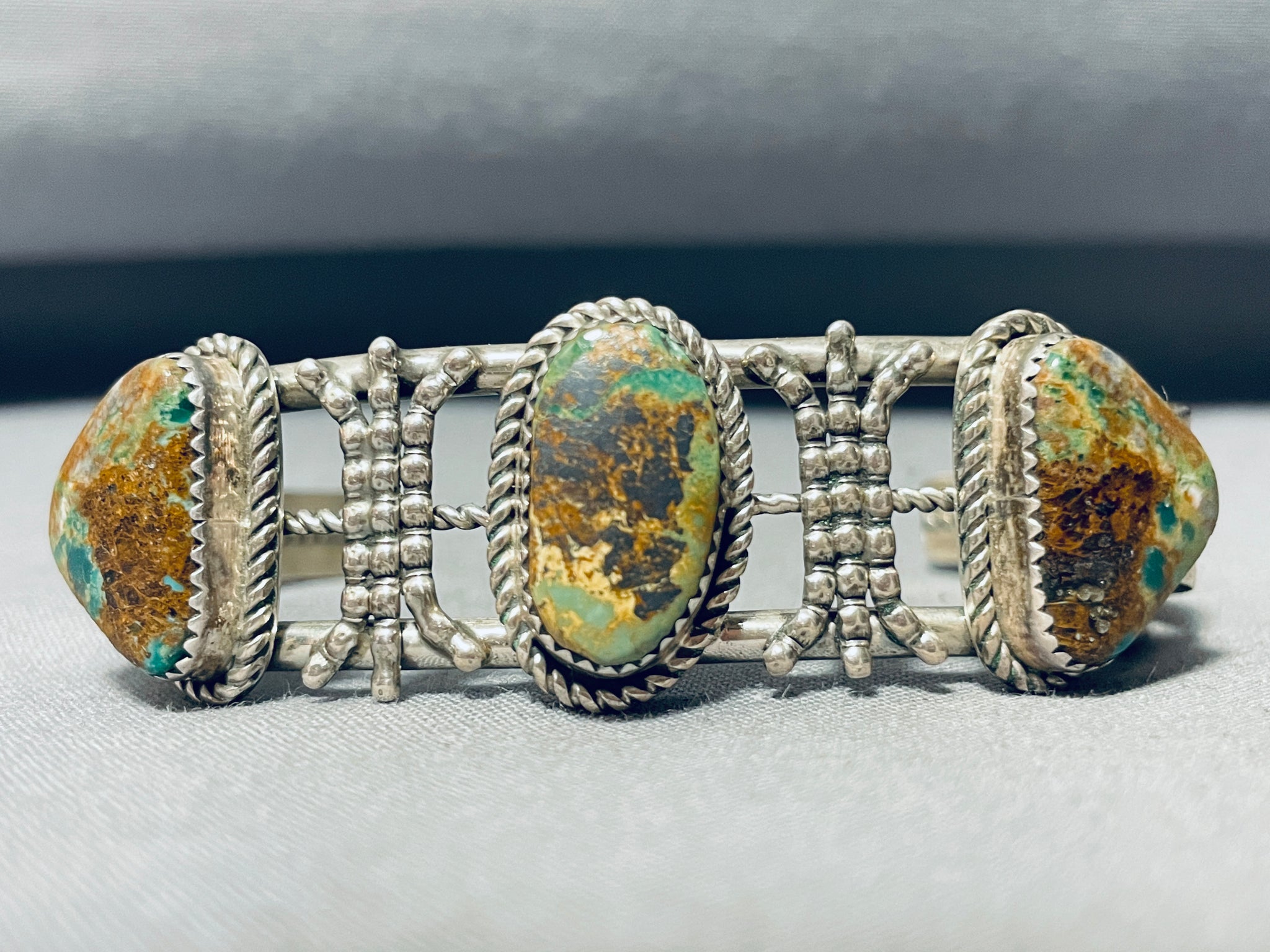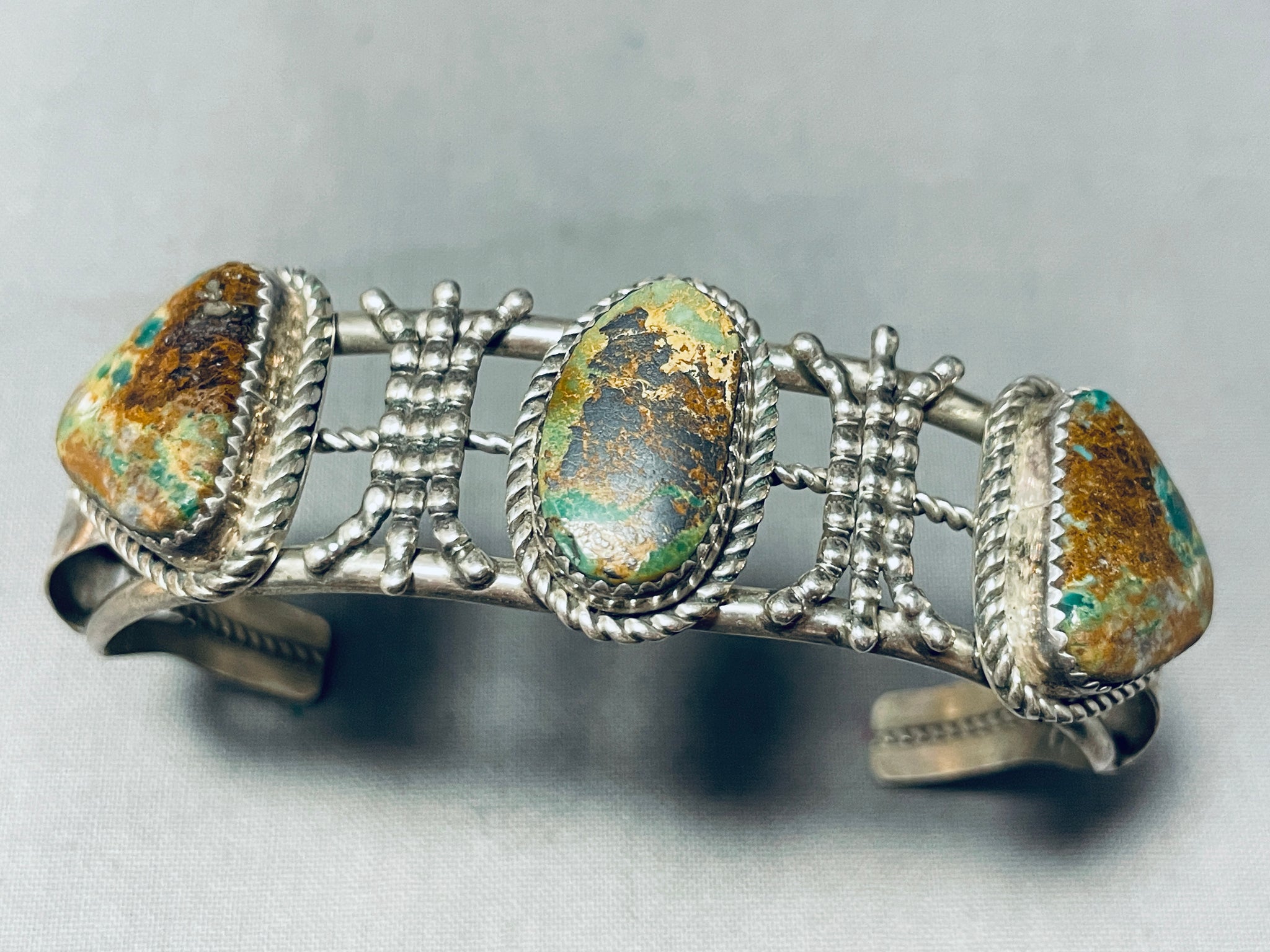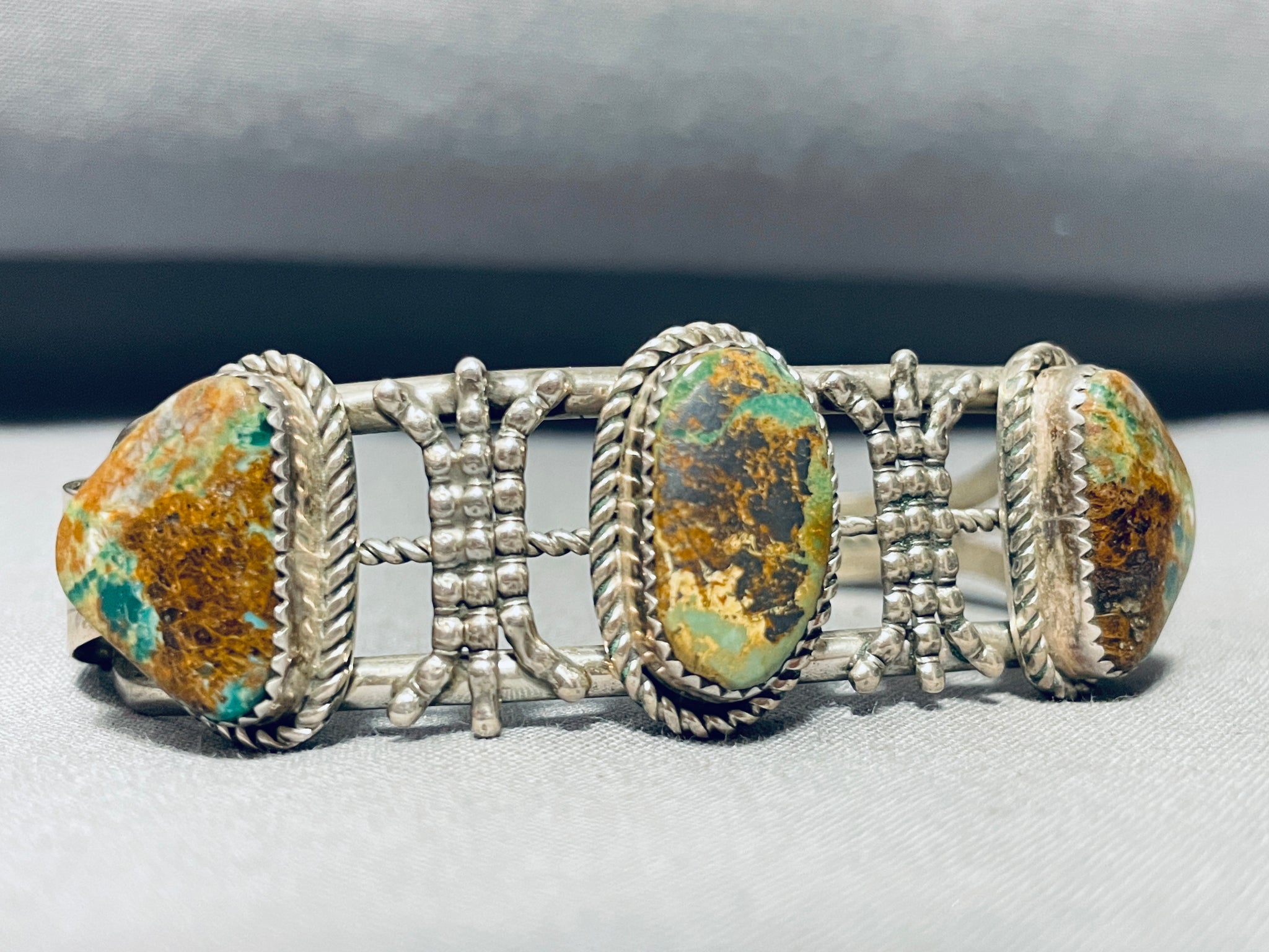 Unique Vintage Native American Navajo Royston Turquoise Sterling Silver Bracelet
