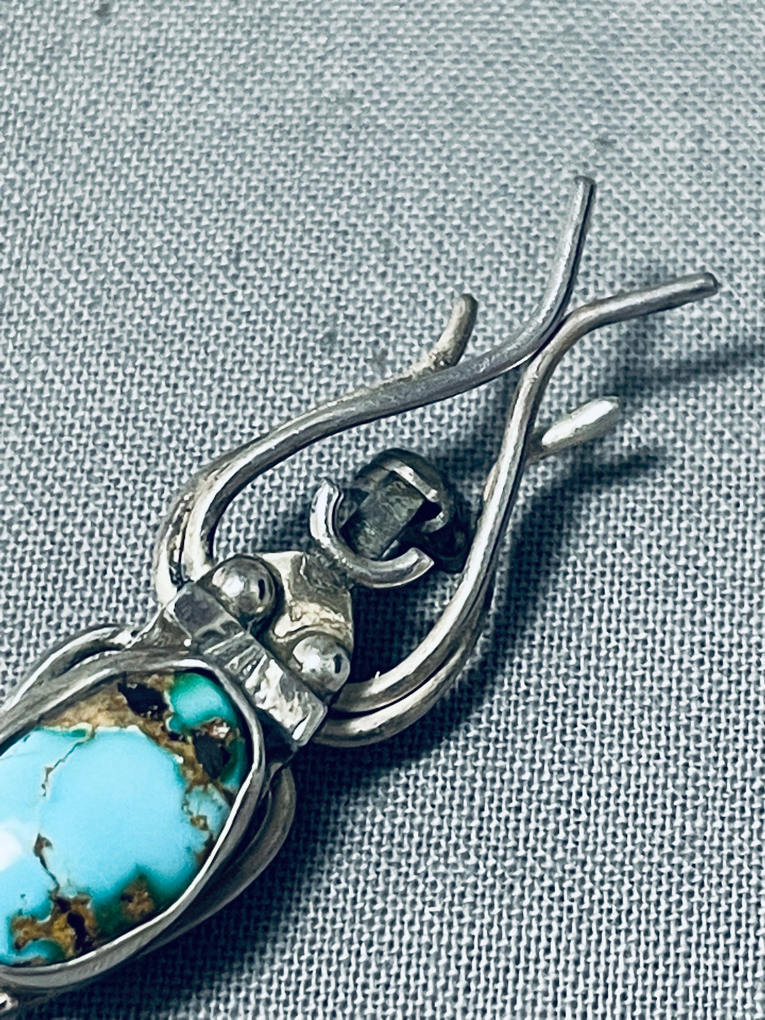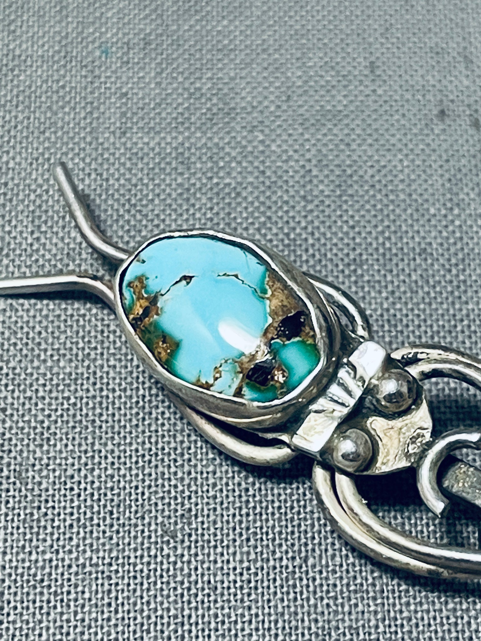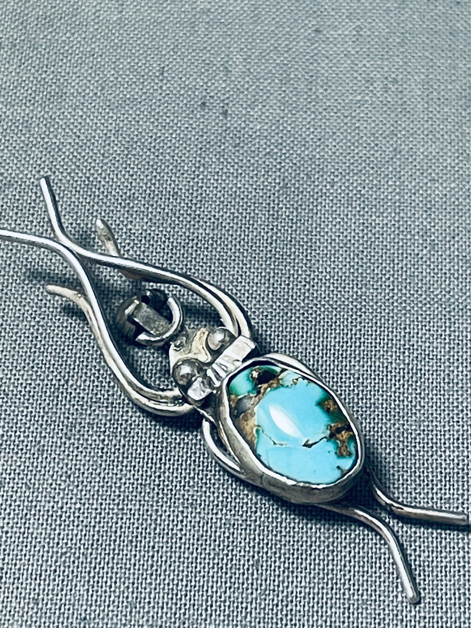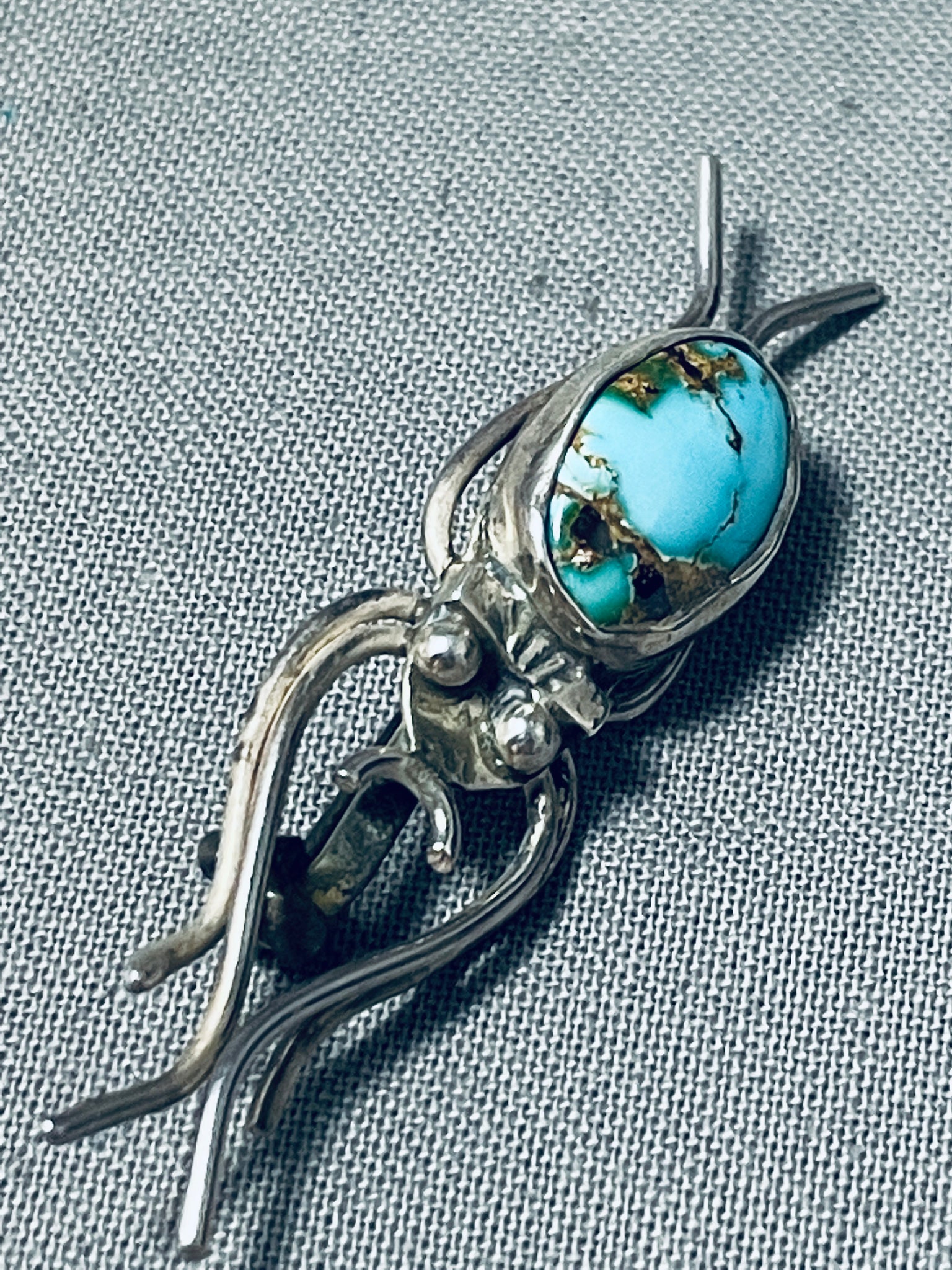 Unique Vintage Native American Navajo Royston Turquoise Sterling Silver Bug Pin