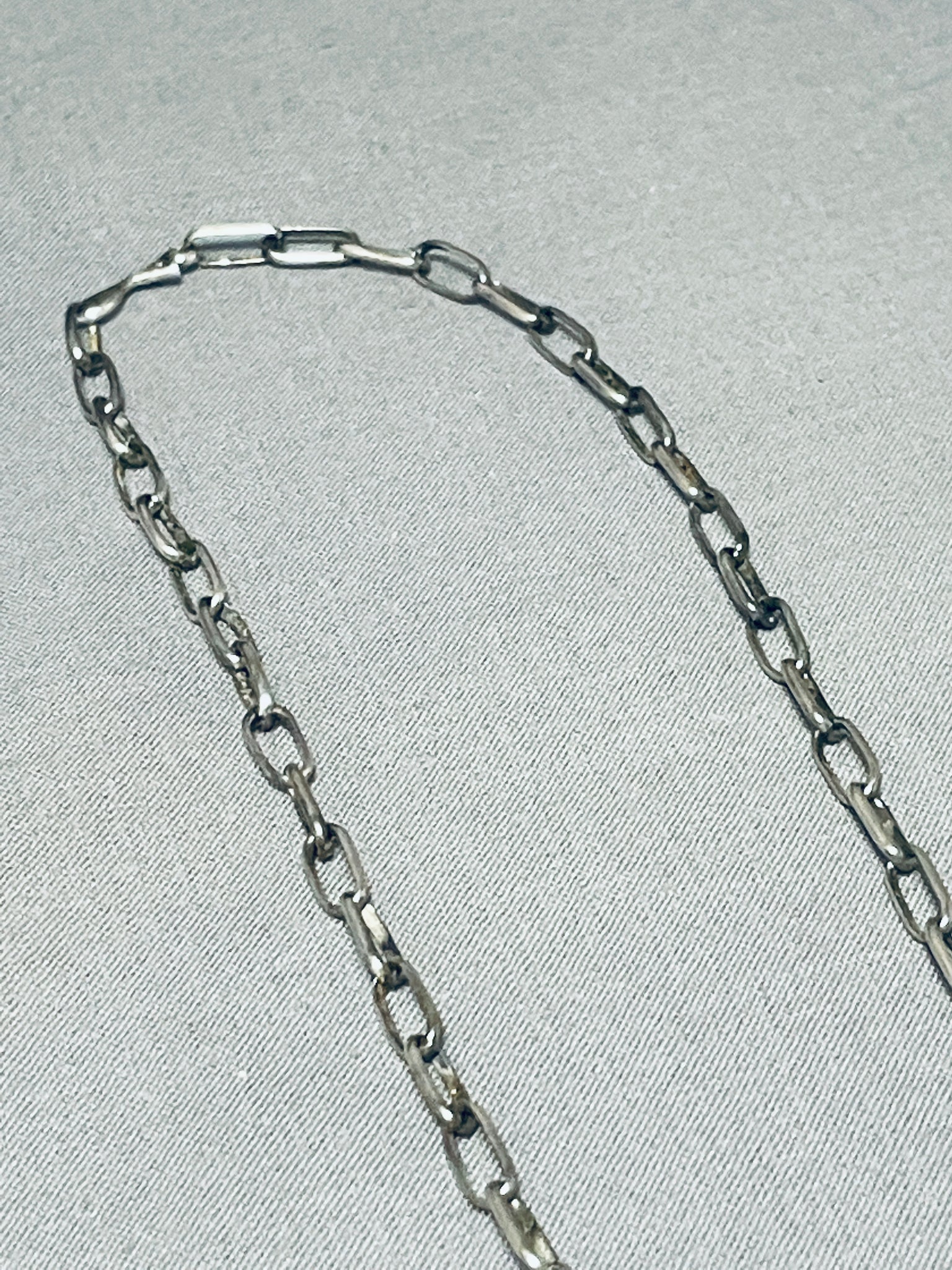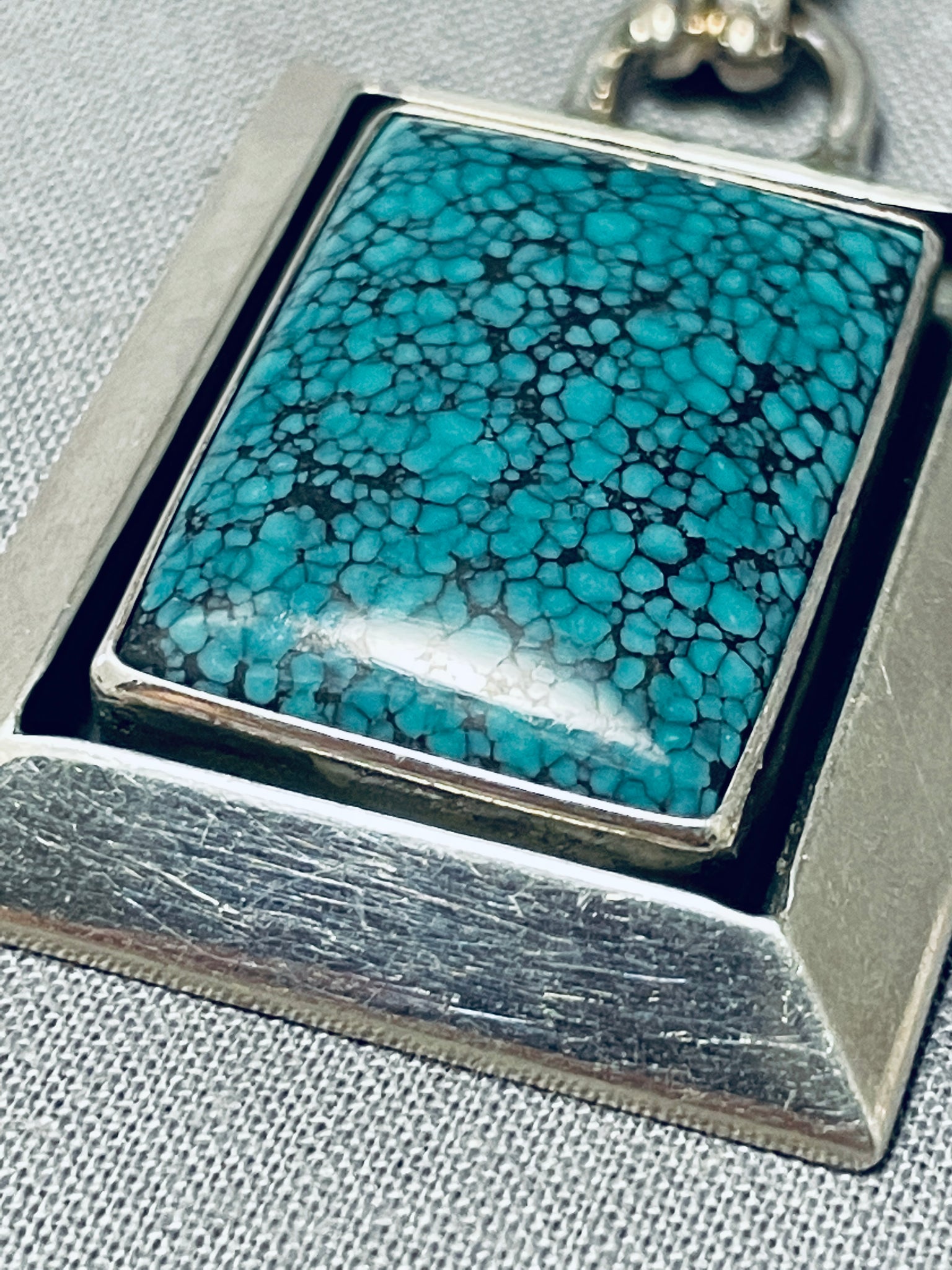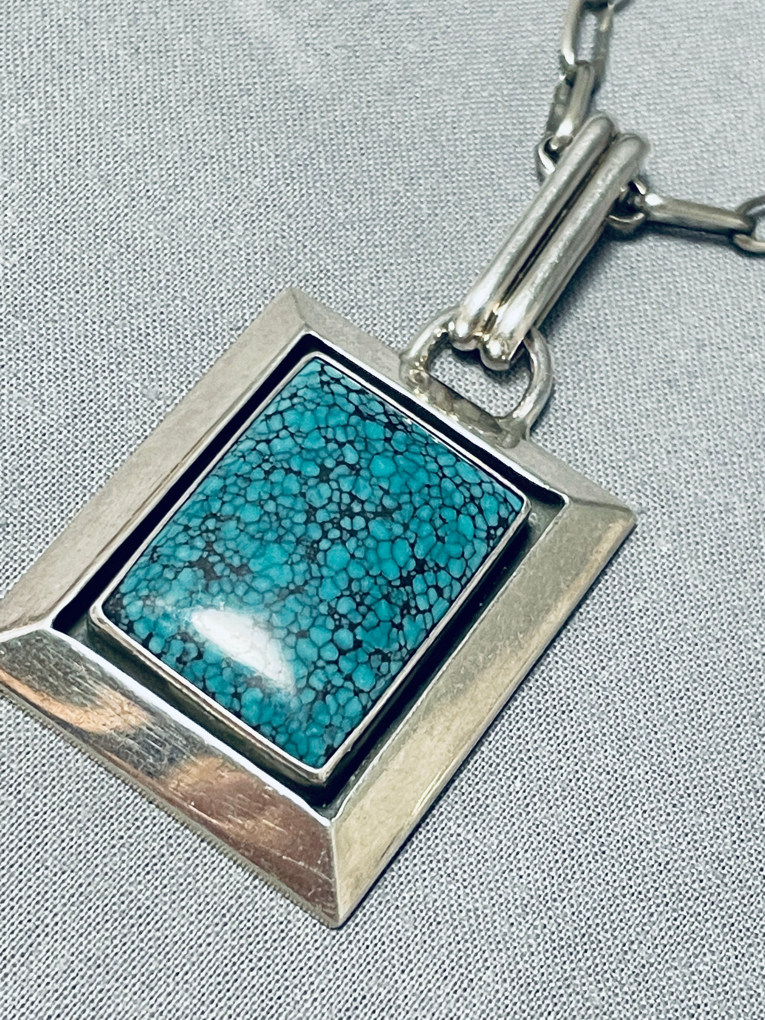 Unique Vintage Native American Navajo Squared Spider Turquoise Sterling Silver Necklace
