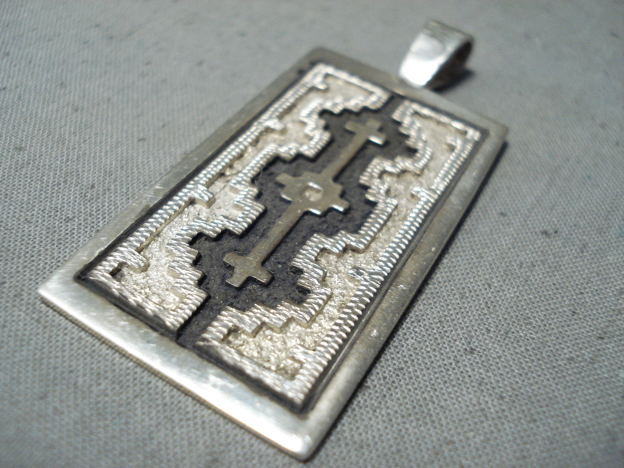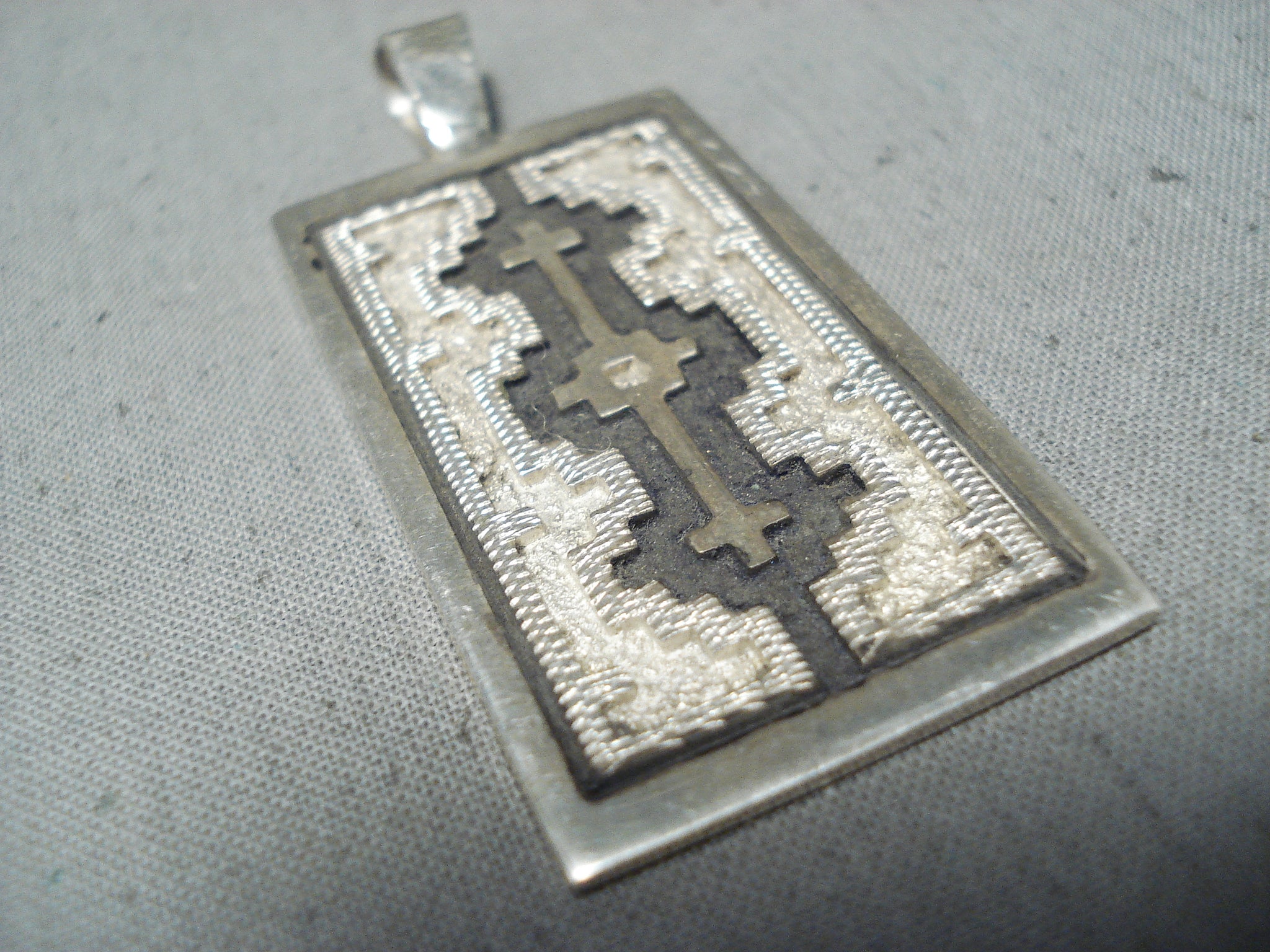 Unique Vintage Native American Navajo Sterling Silver Pendant Signed