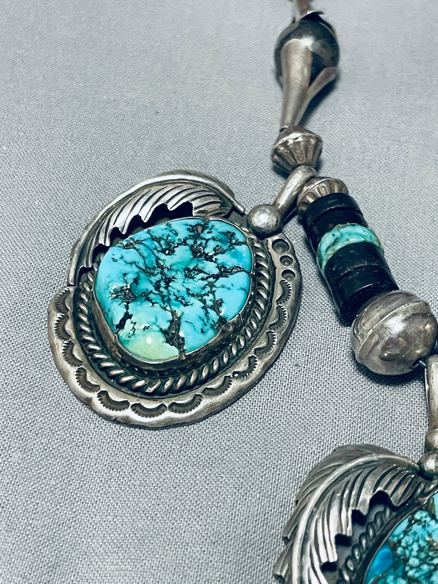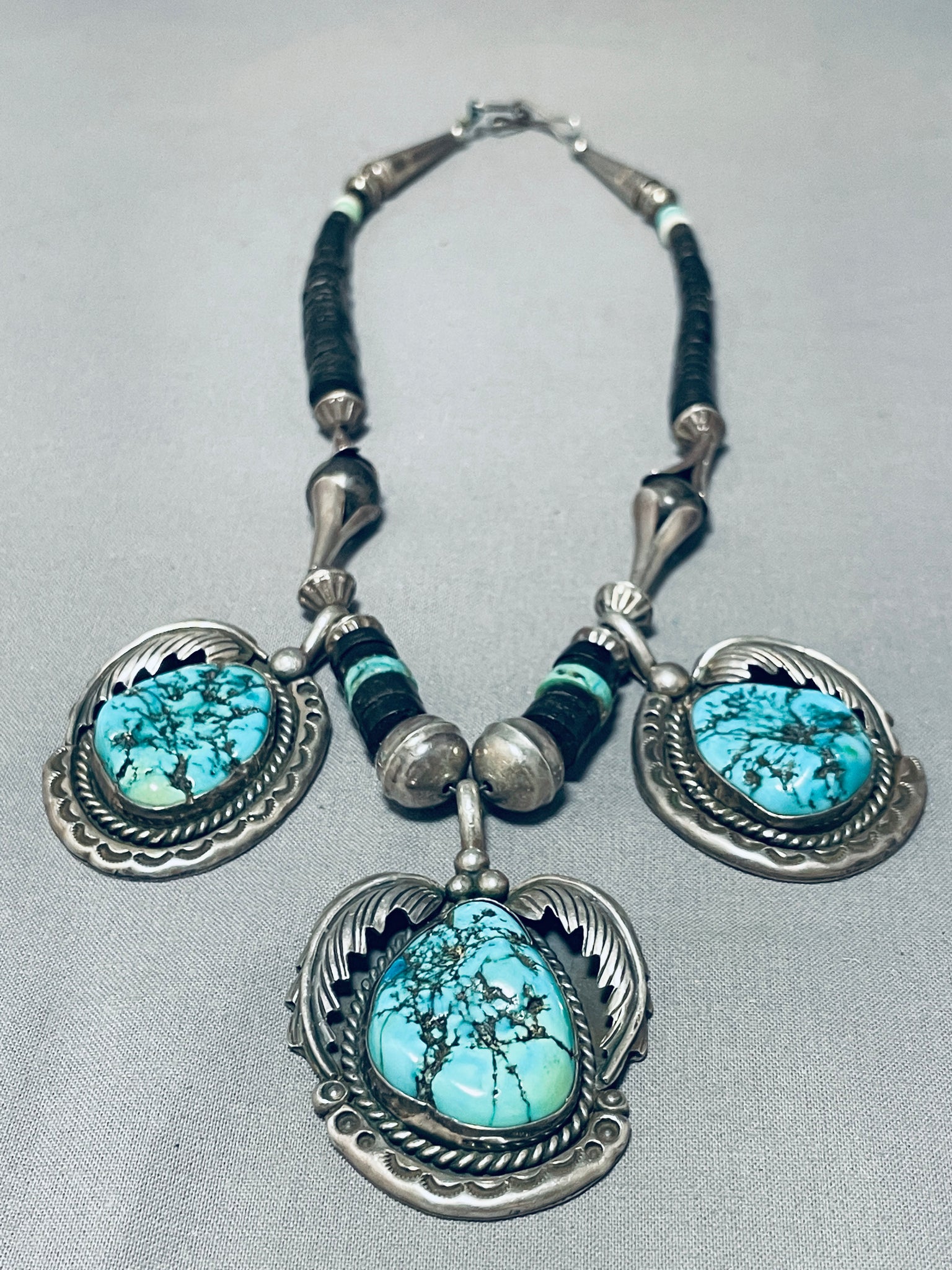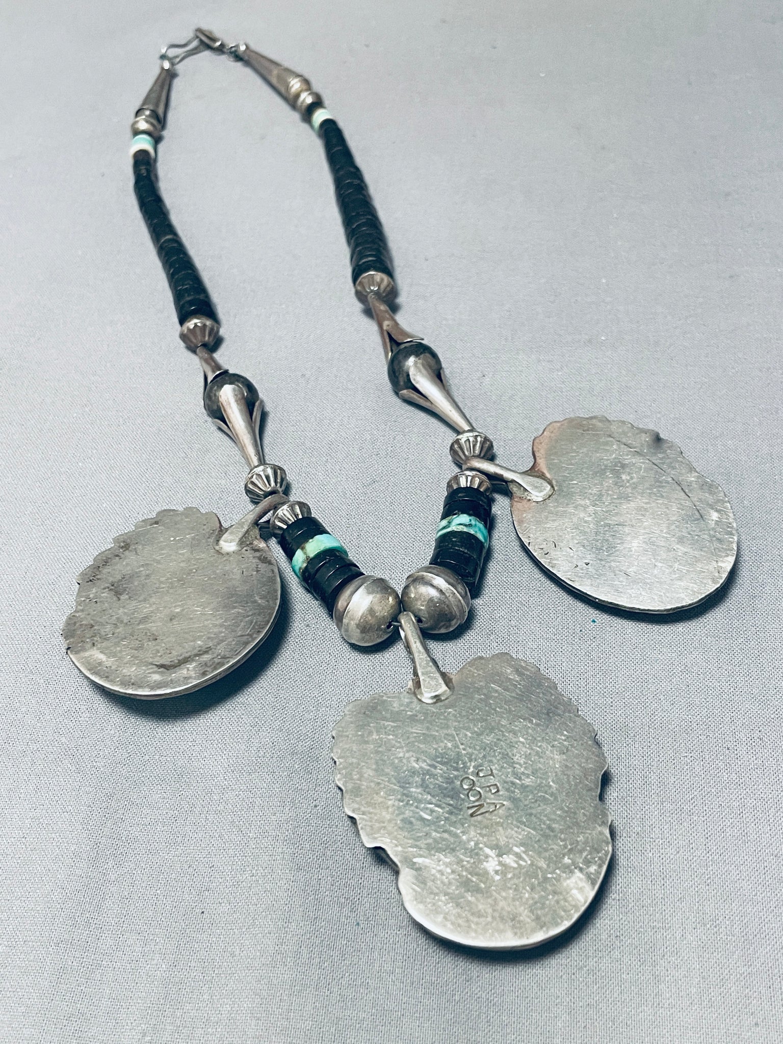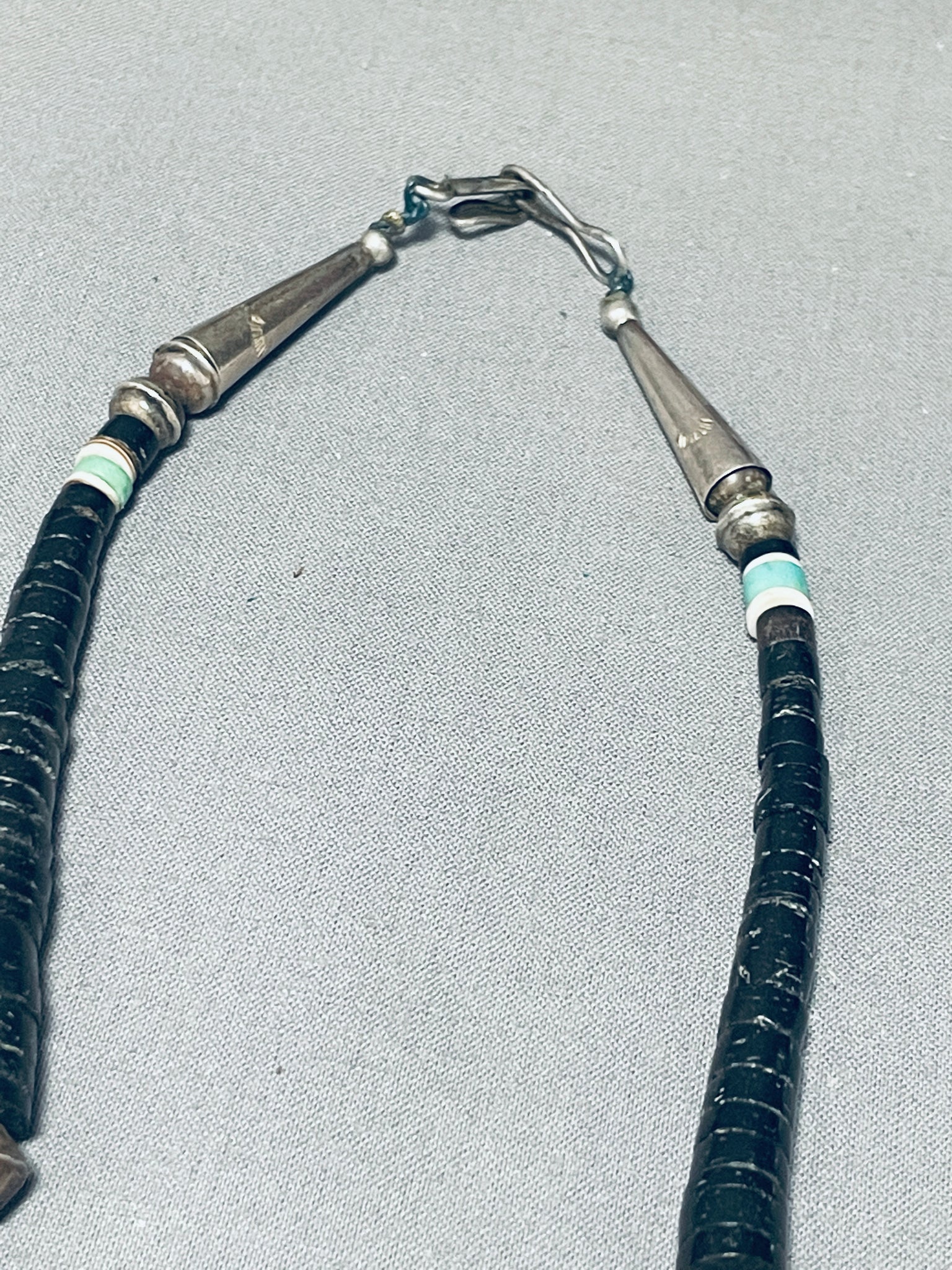 Unique Vintage Native American Navajo Turquoise Heishi Sterling Silver Necklace