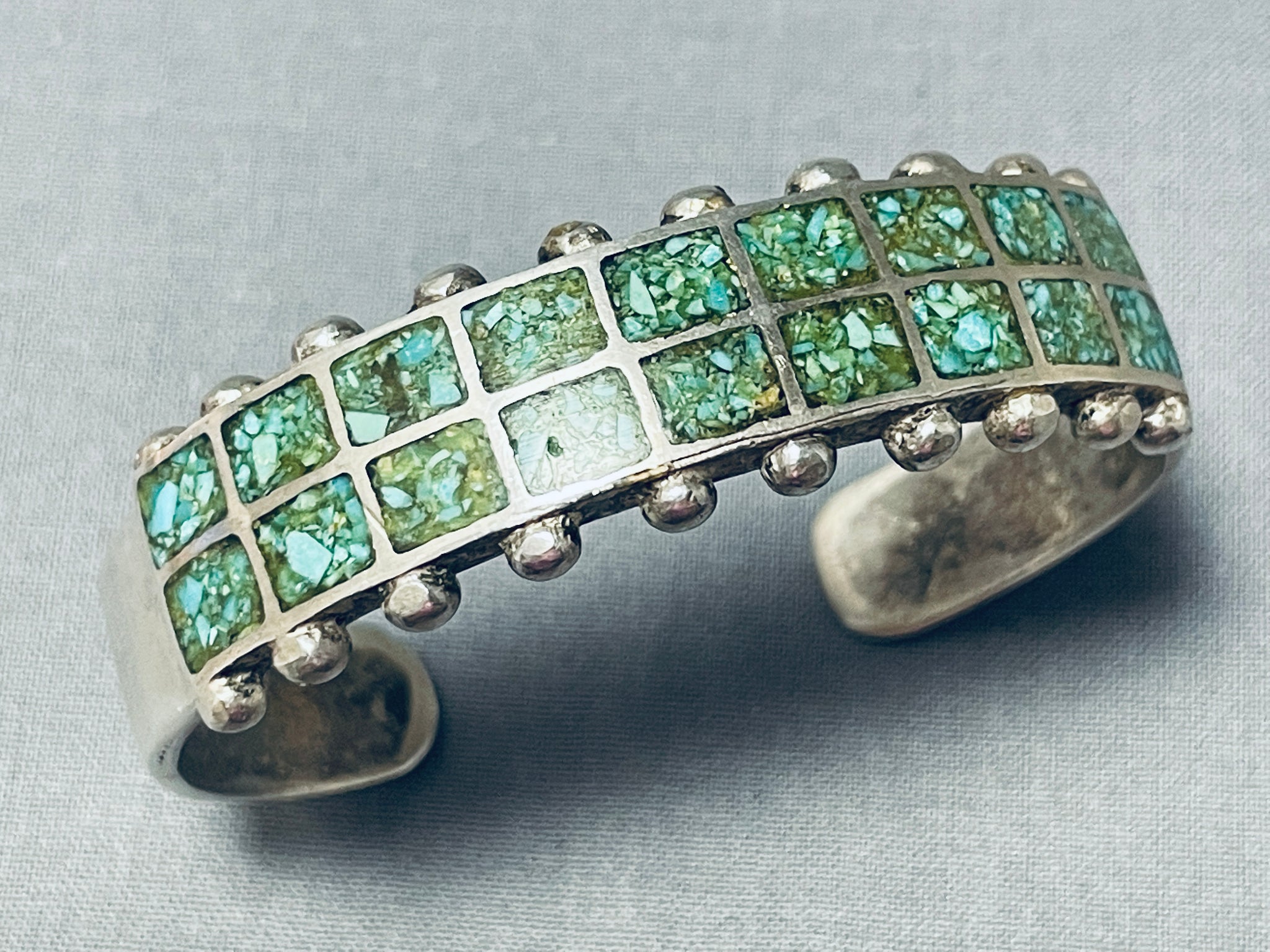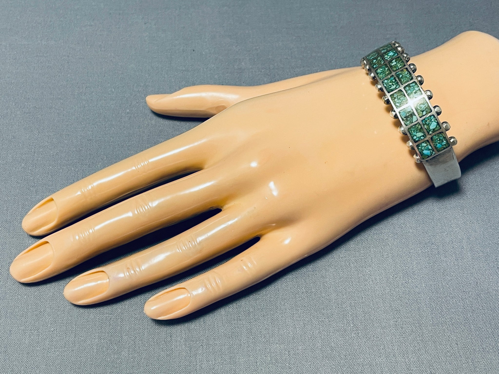 Unique Vintage Native American Navajo Turquoise Sterling Silver Bracelet