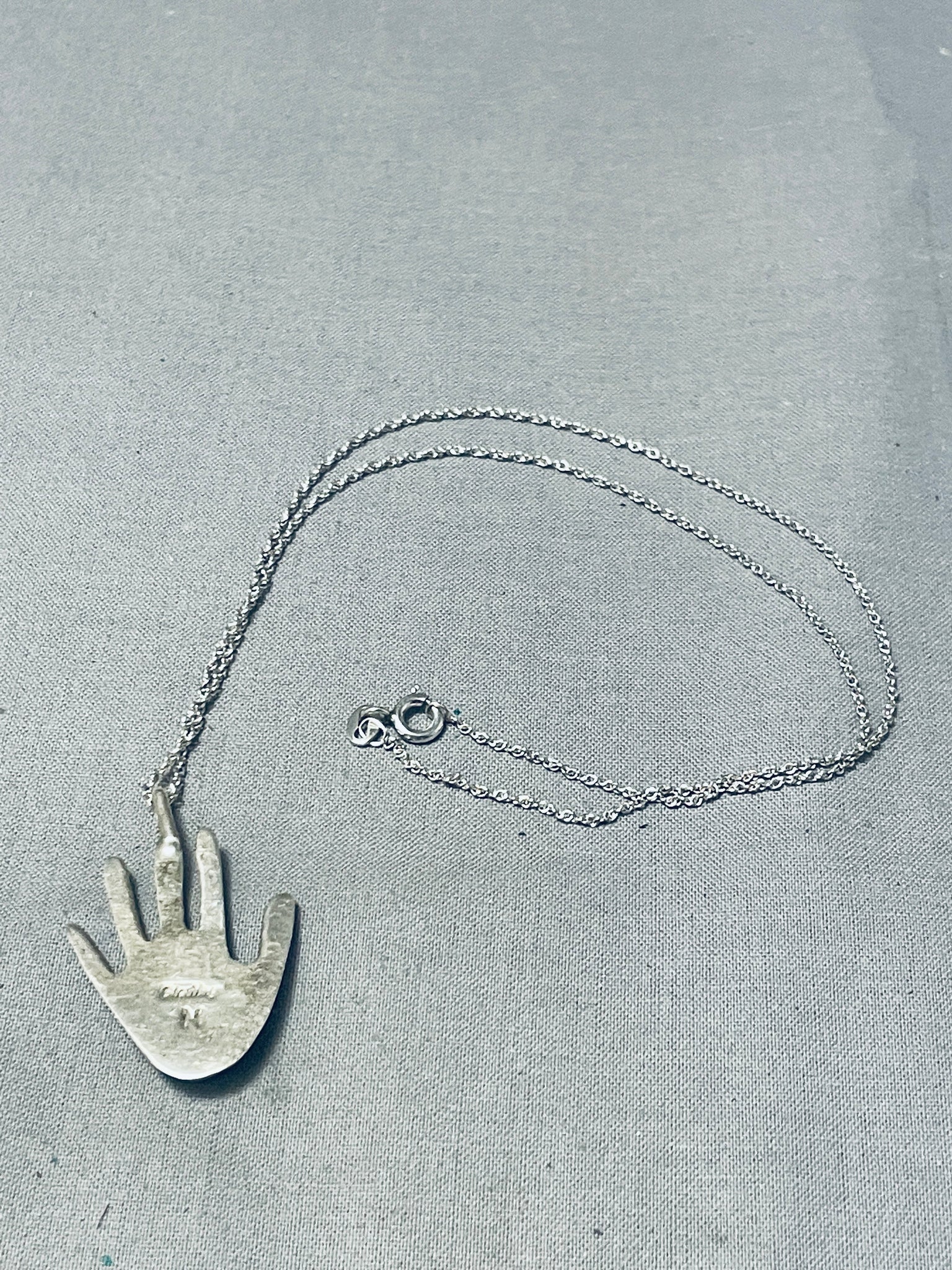 Unique Vintage Native American Navajo Turquoise Sterling Silver Hand Necklace