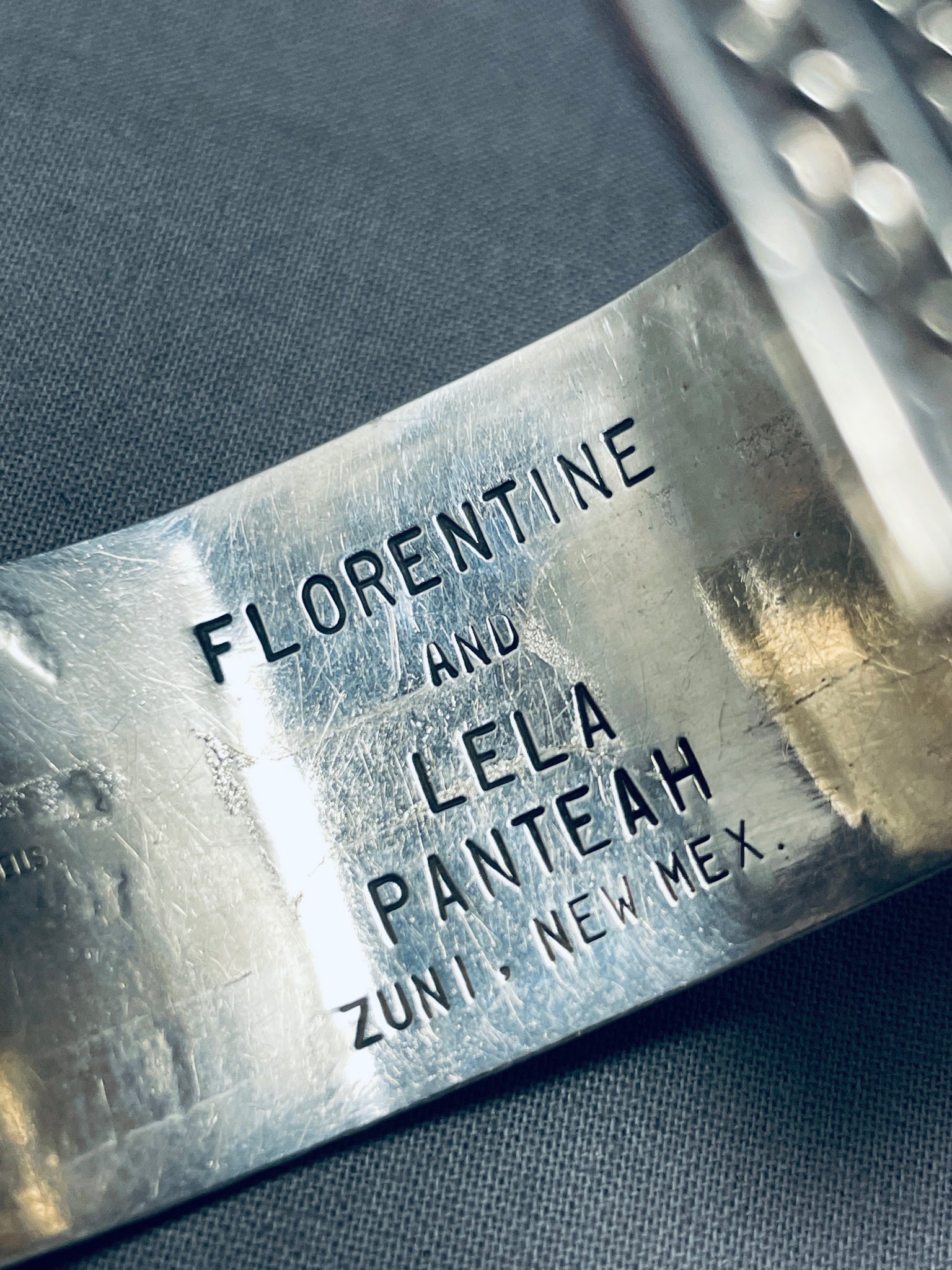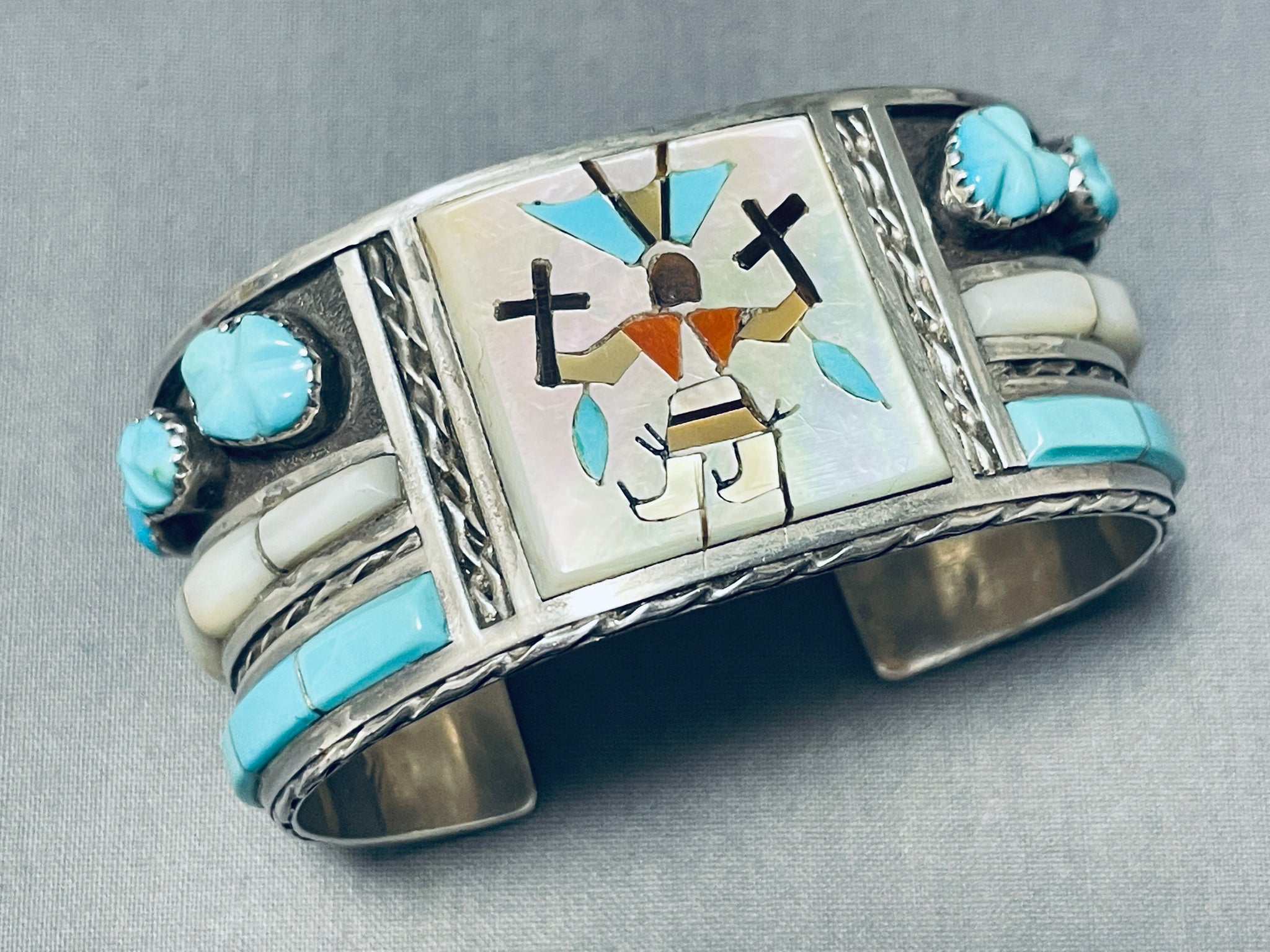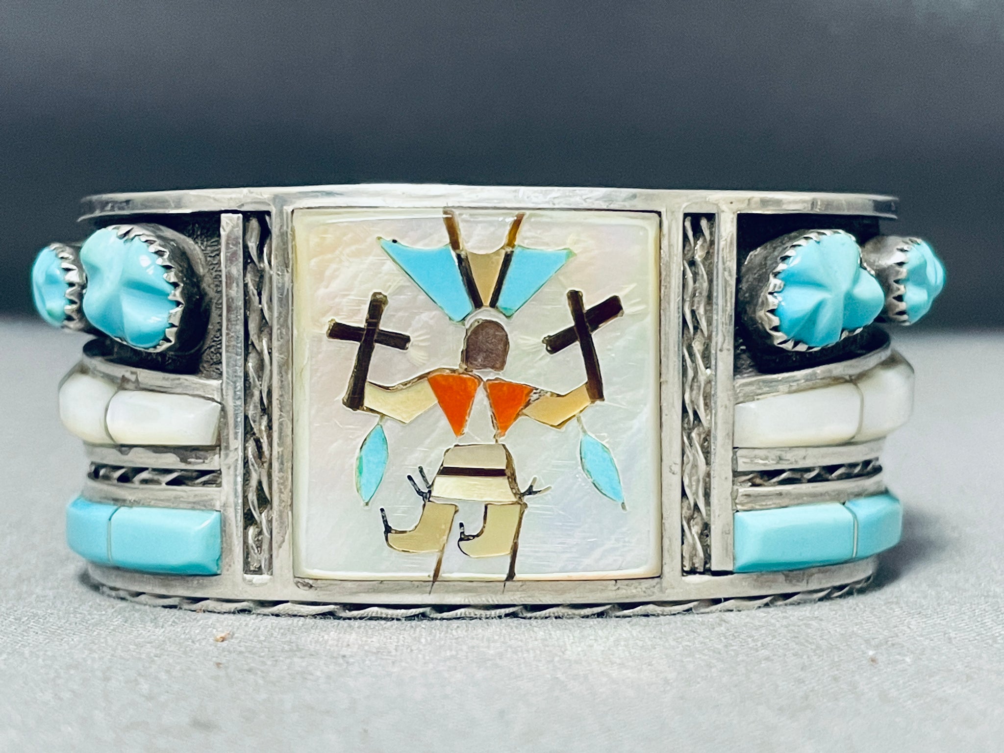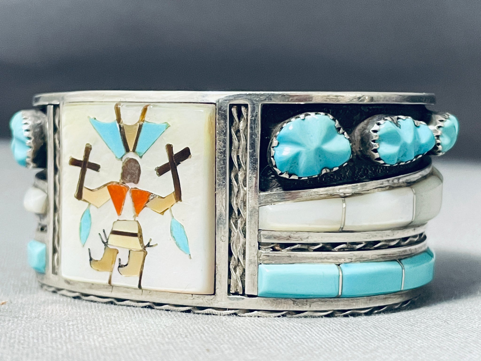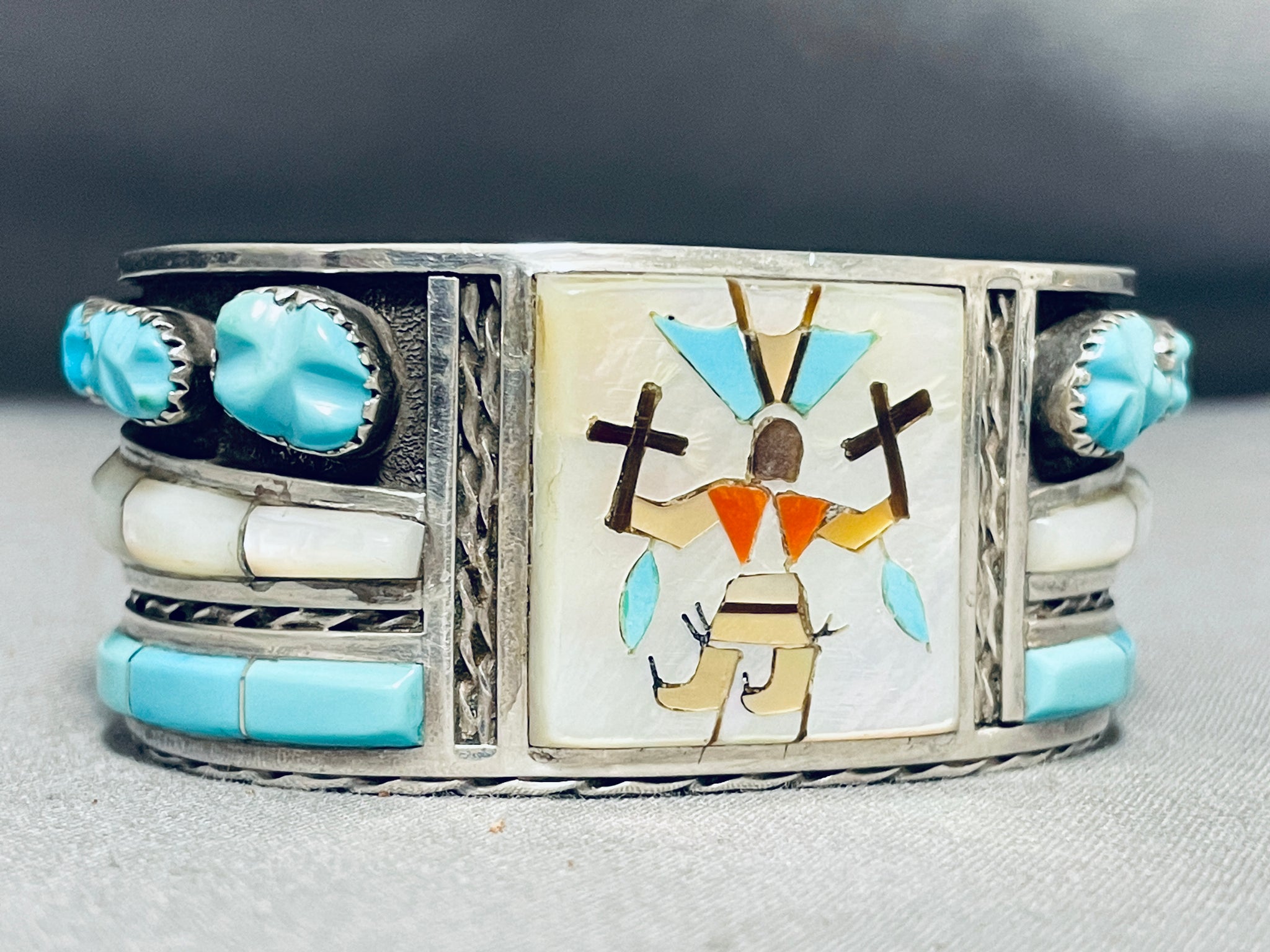 Unique Vintage Native American Zuni Blue Gem Turquoise Sterling Silver Bracelet Signed