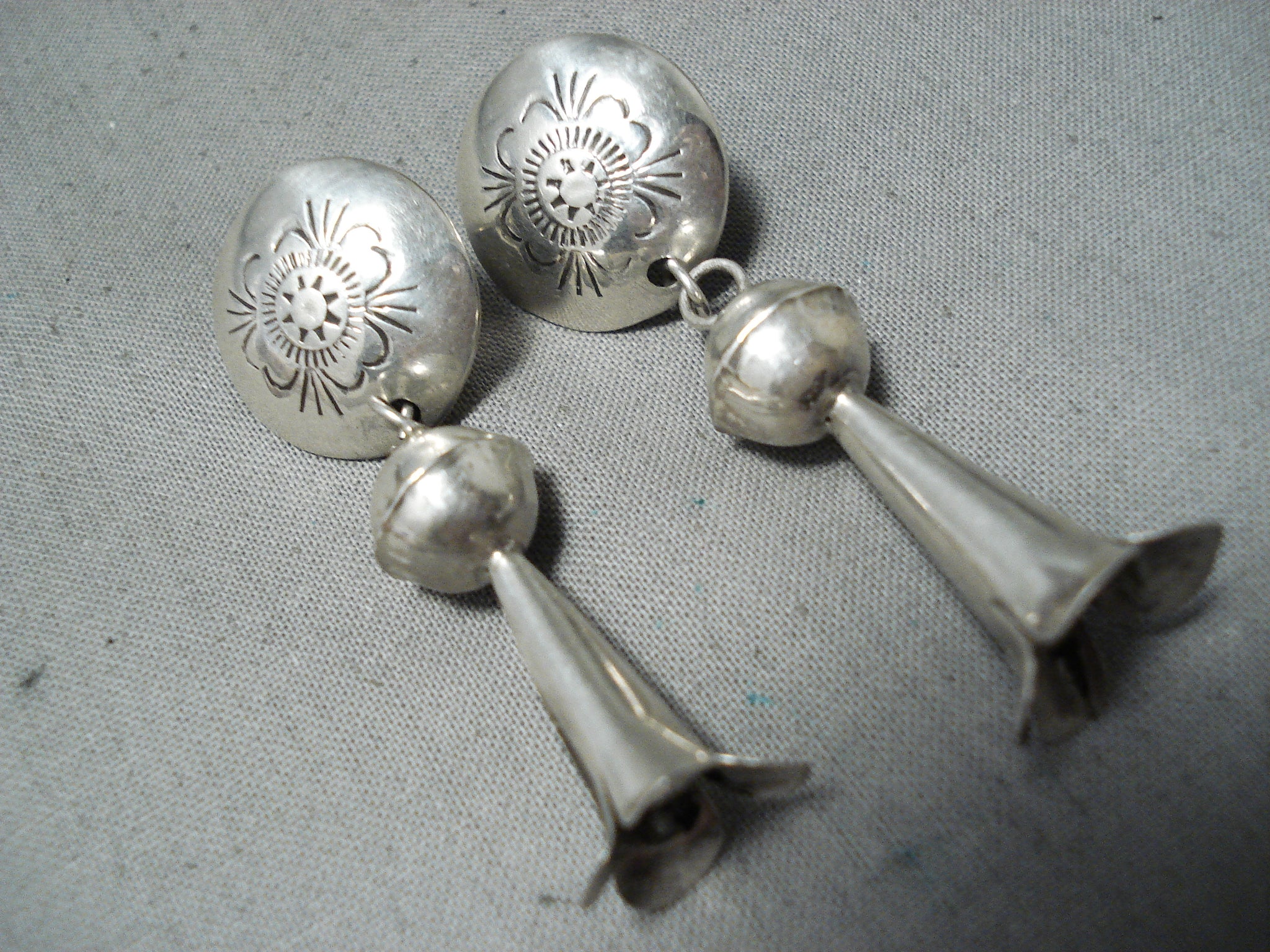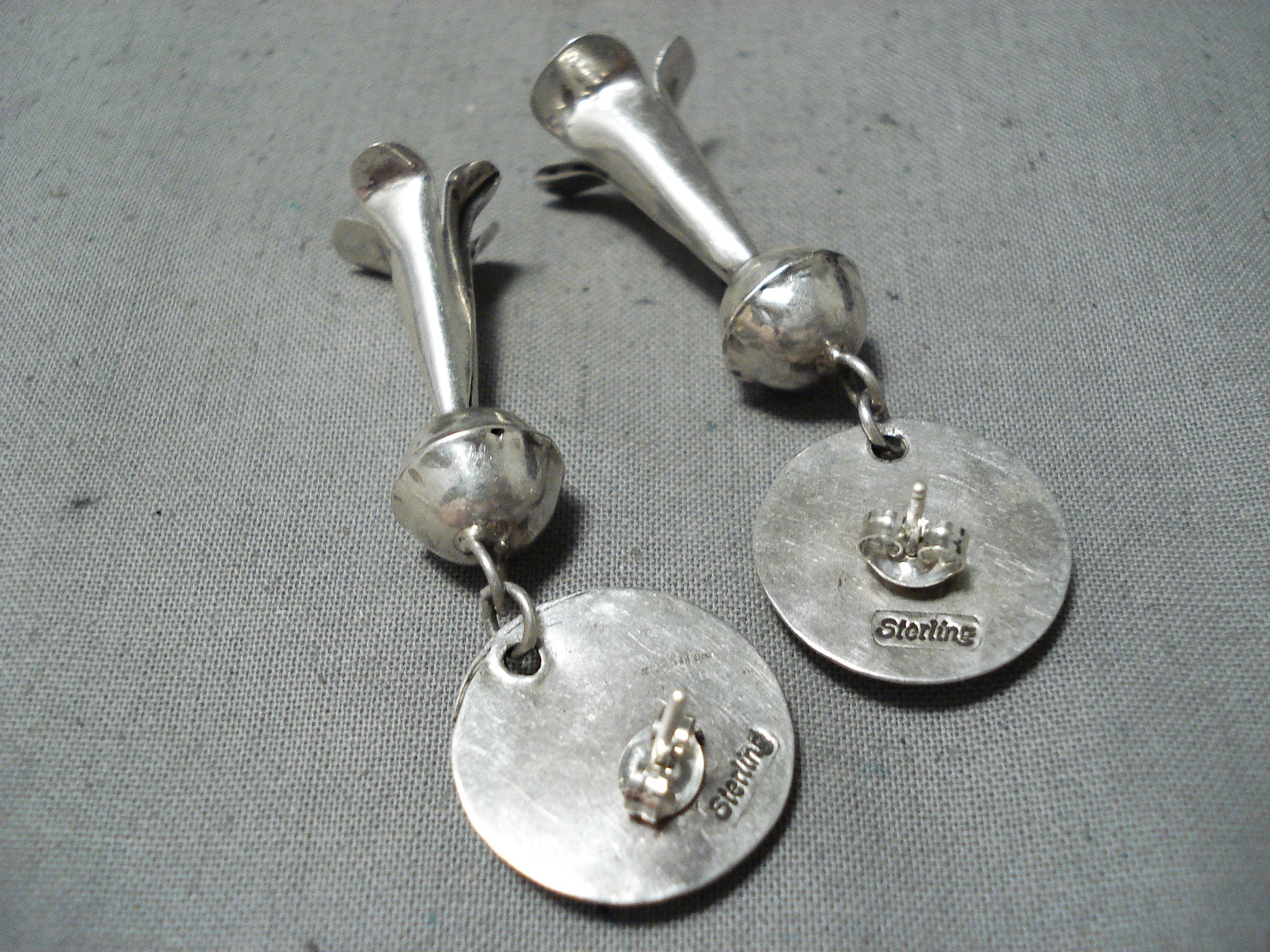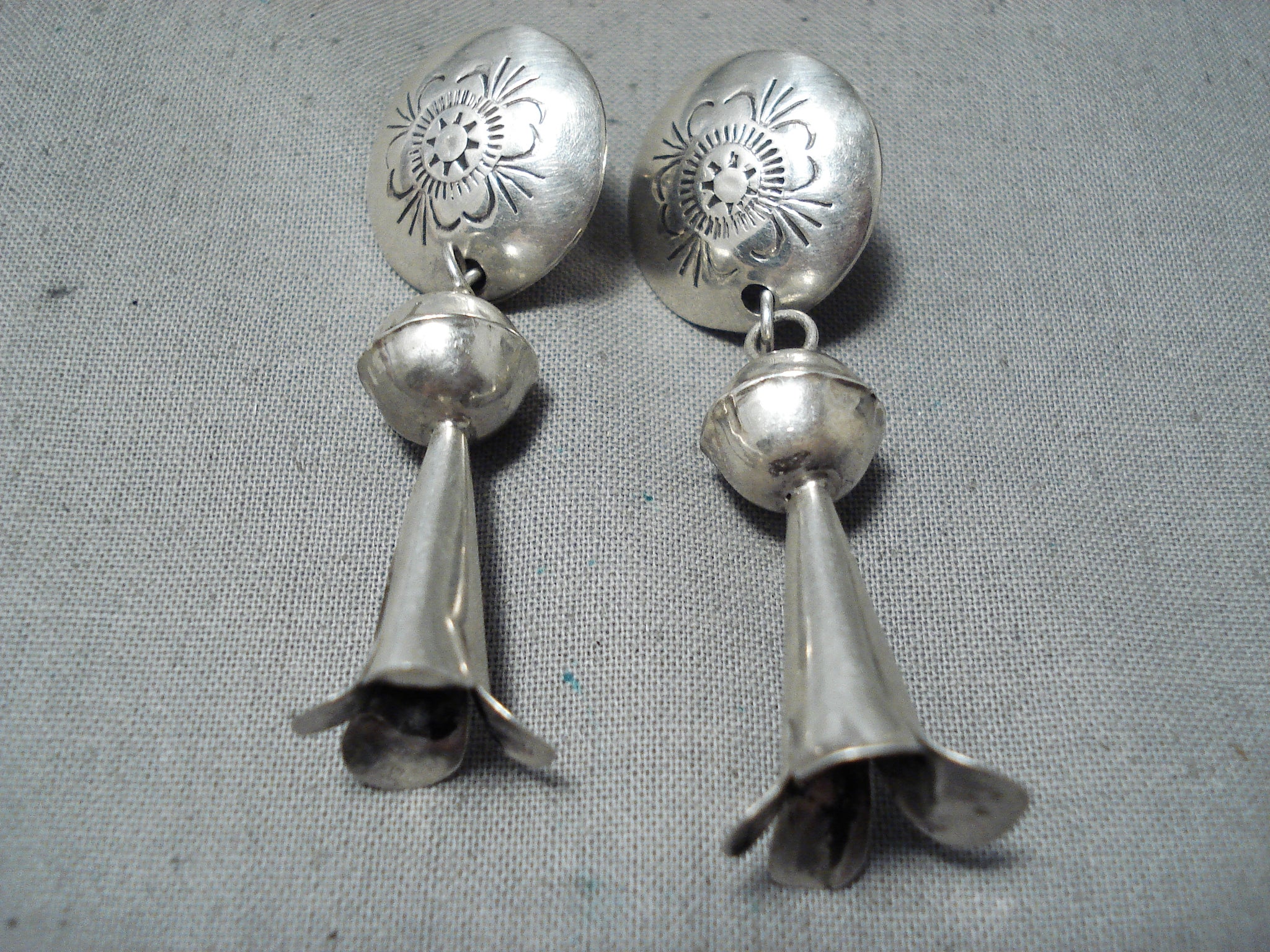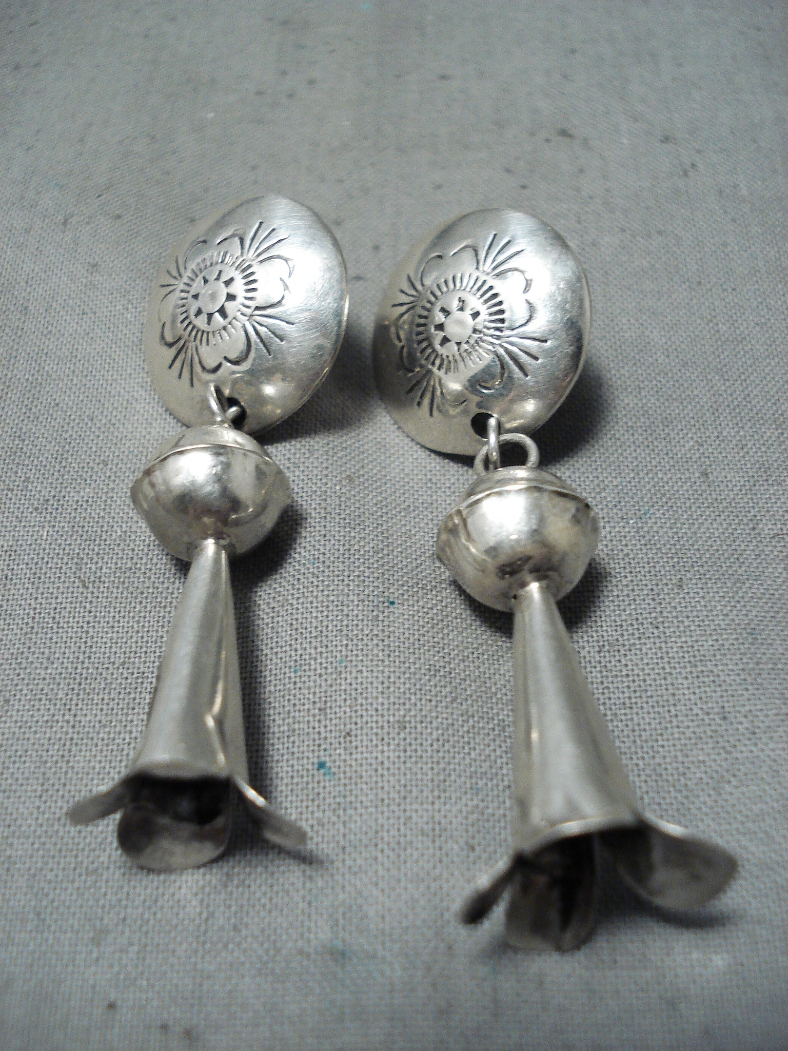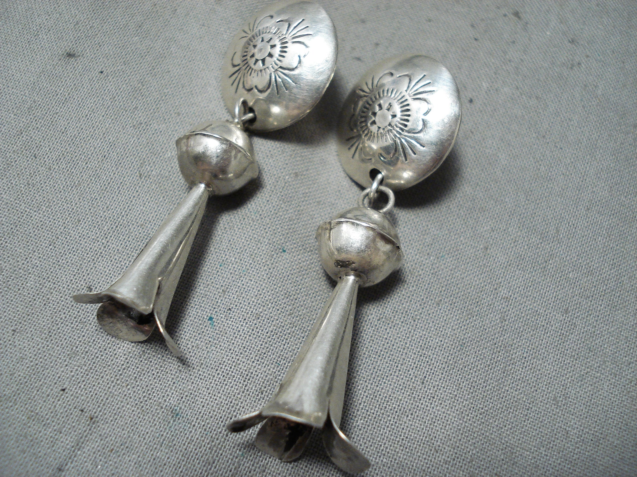 Unique Vintage Navajo Native American Sterling Silver Squash Blossom Earrings