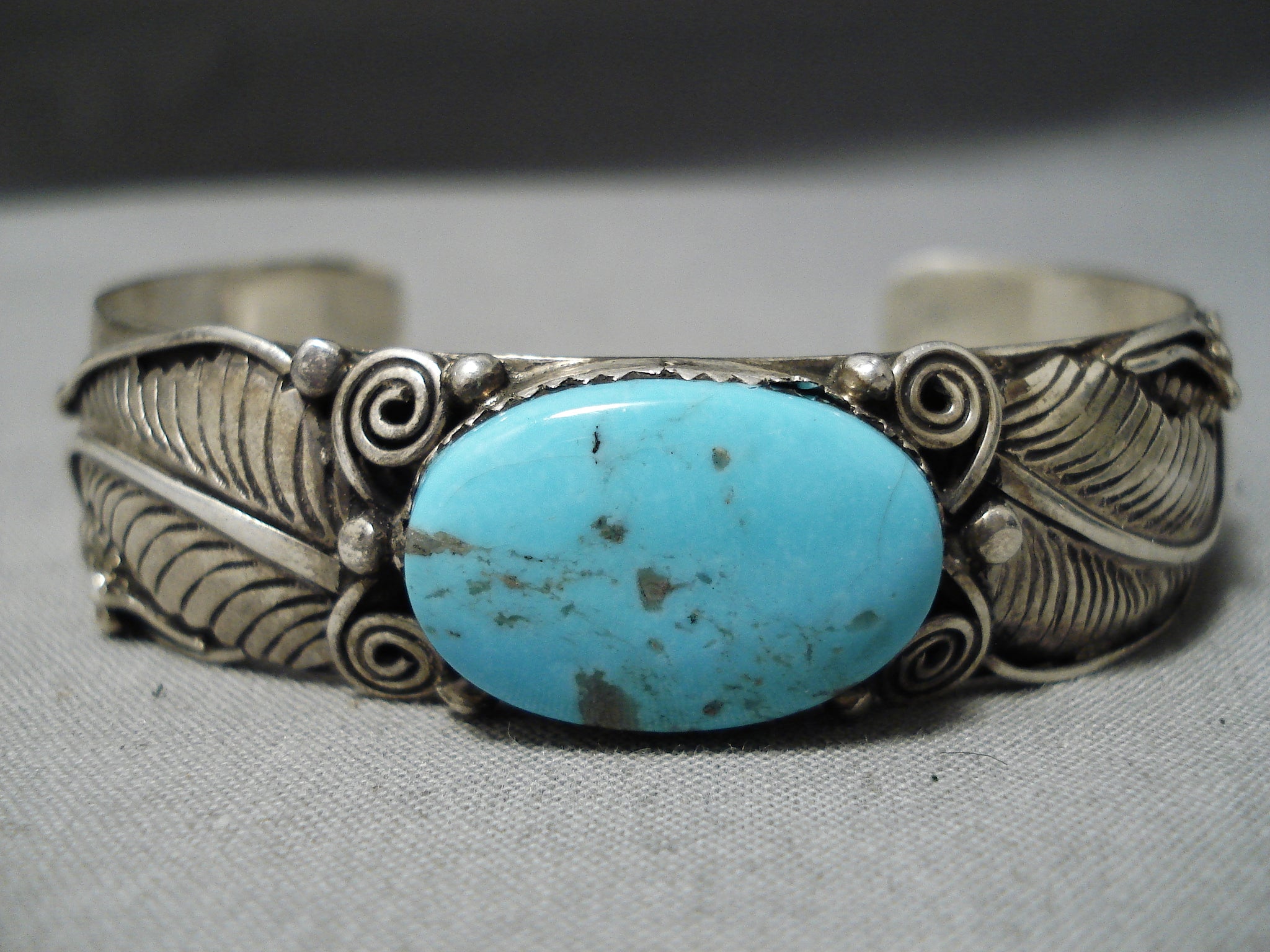 Unique! Vintage Navajo Old Kingman Turquoise Sterling Silver Bracelet