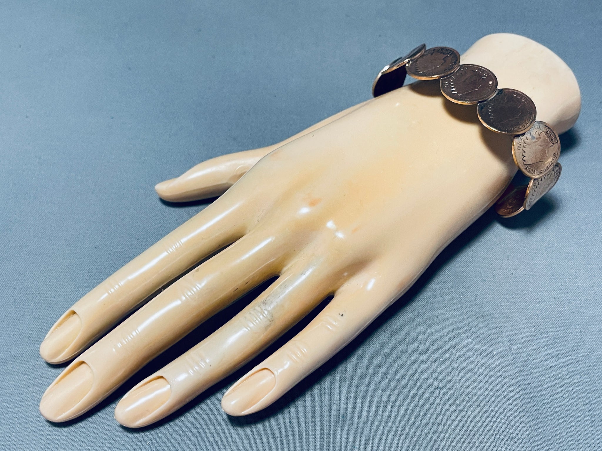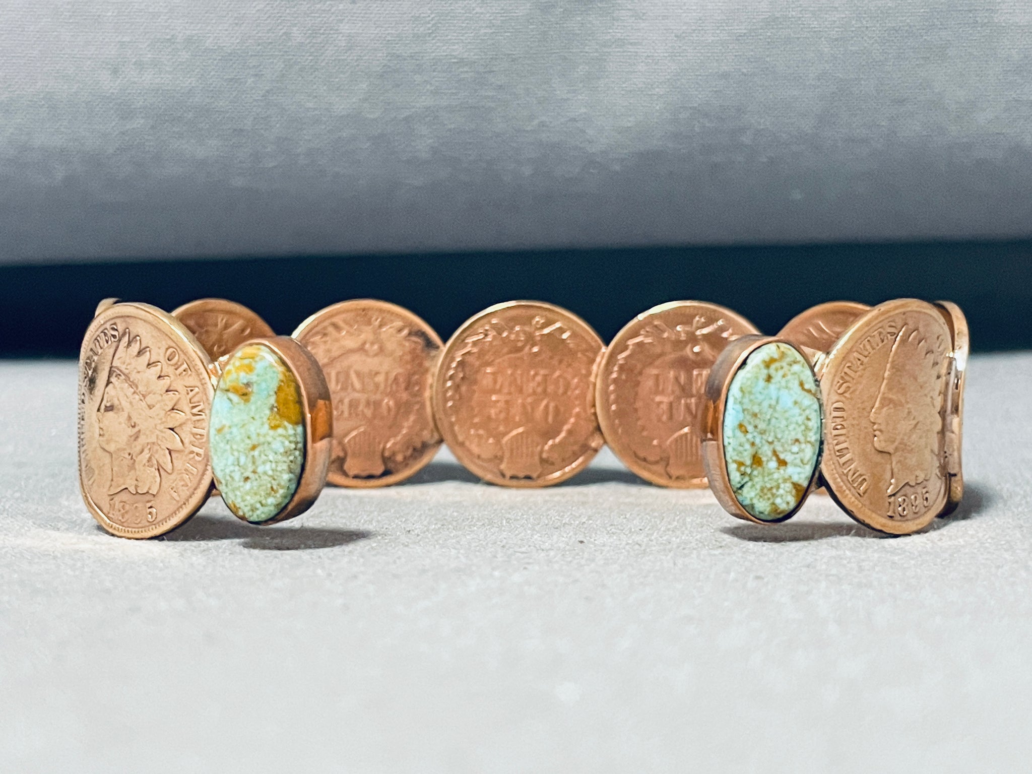 Unrivaled Native American Navajo Pilot Mountain Turquoise Indian Head Penny Bracelet