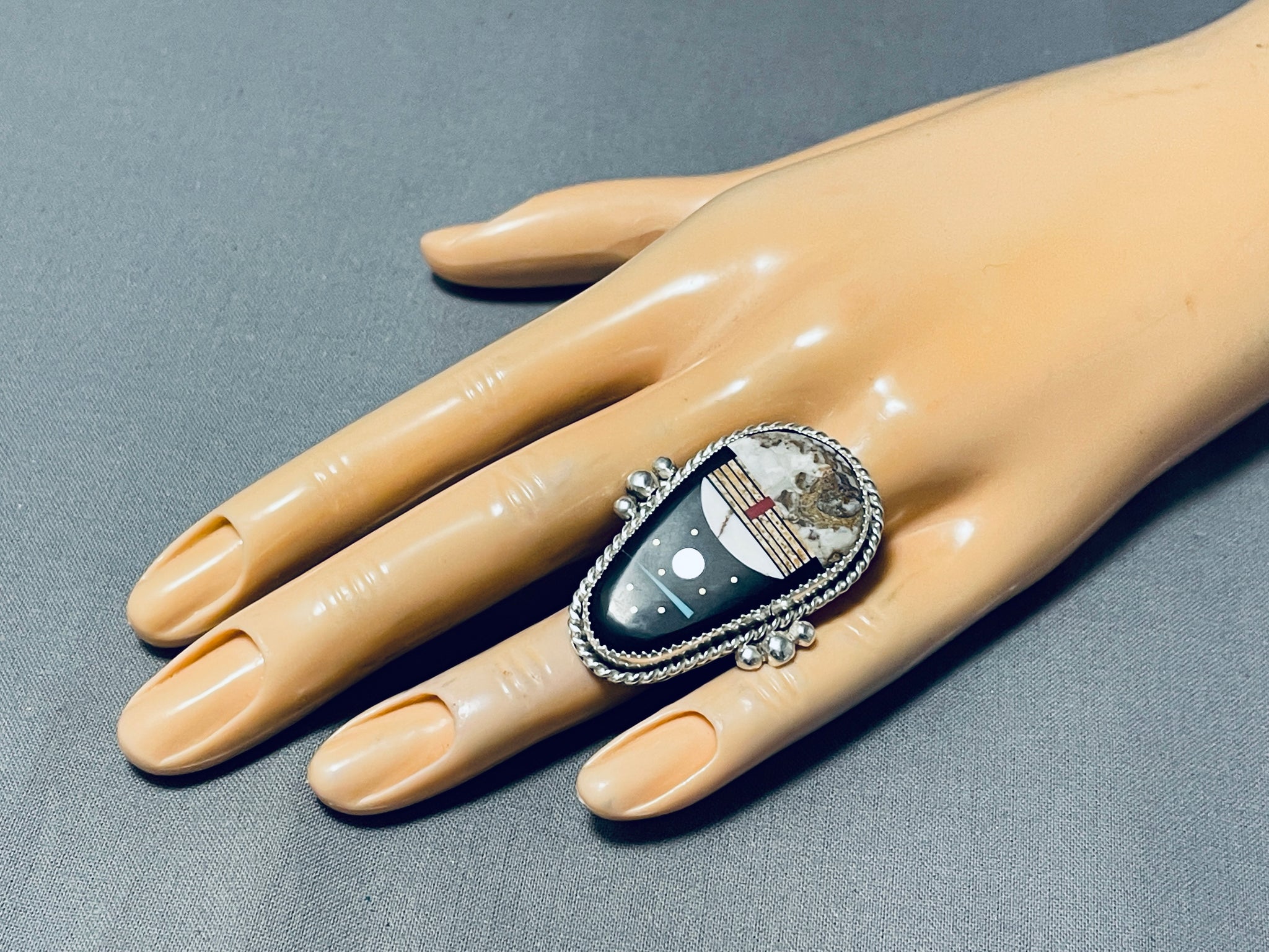 Very Important Native American Navajo Hogan Inlay Sterling Silver Ring