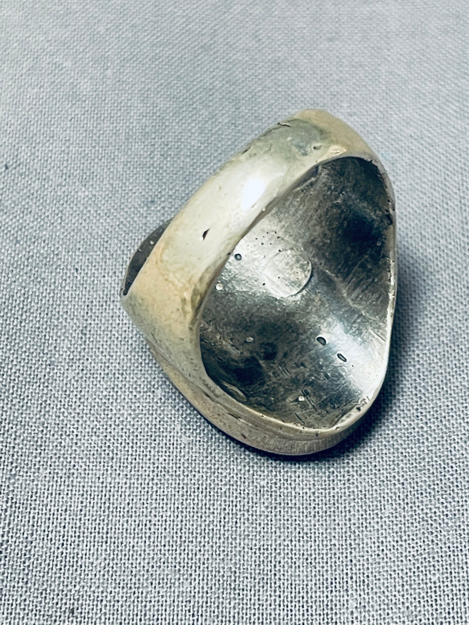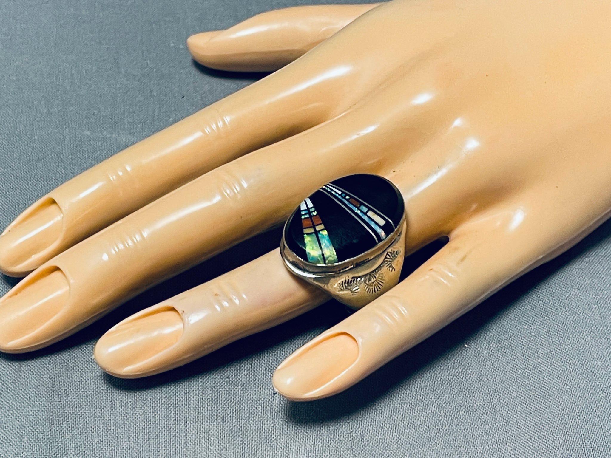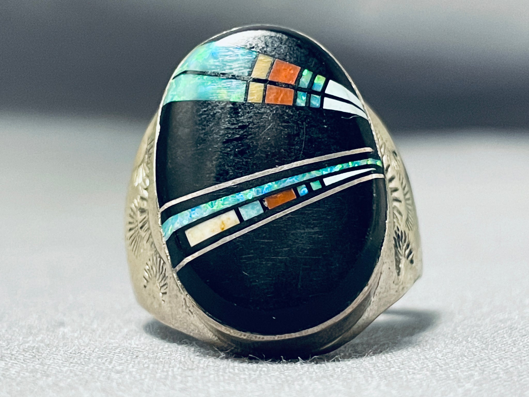 Very Intricate Detailed Native American Navajo Opal Coral Sterling Silver Ring