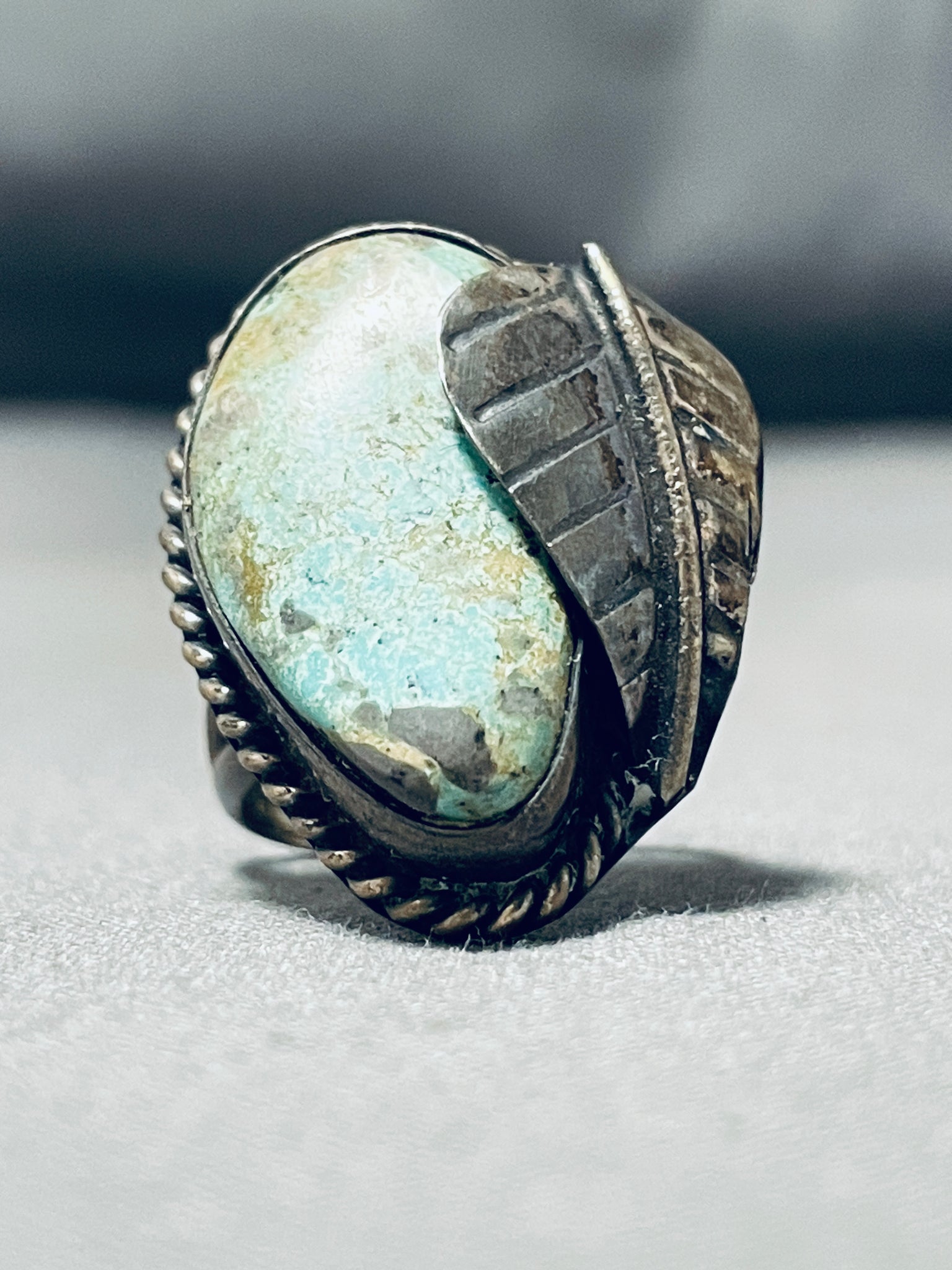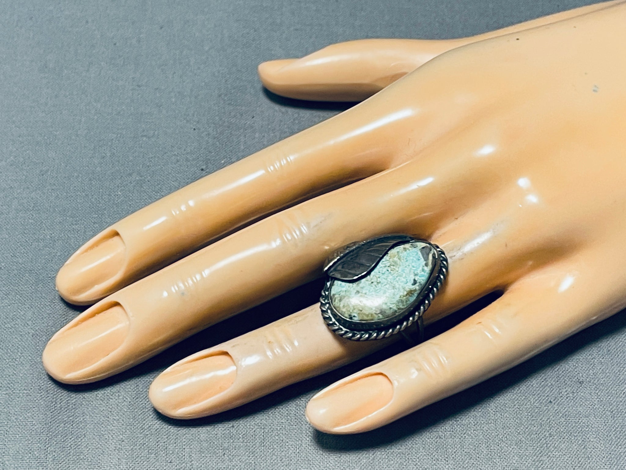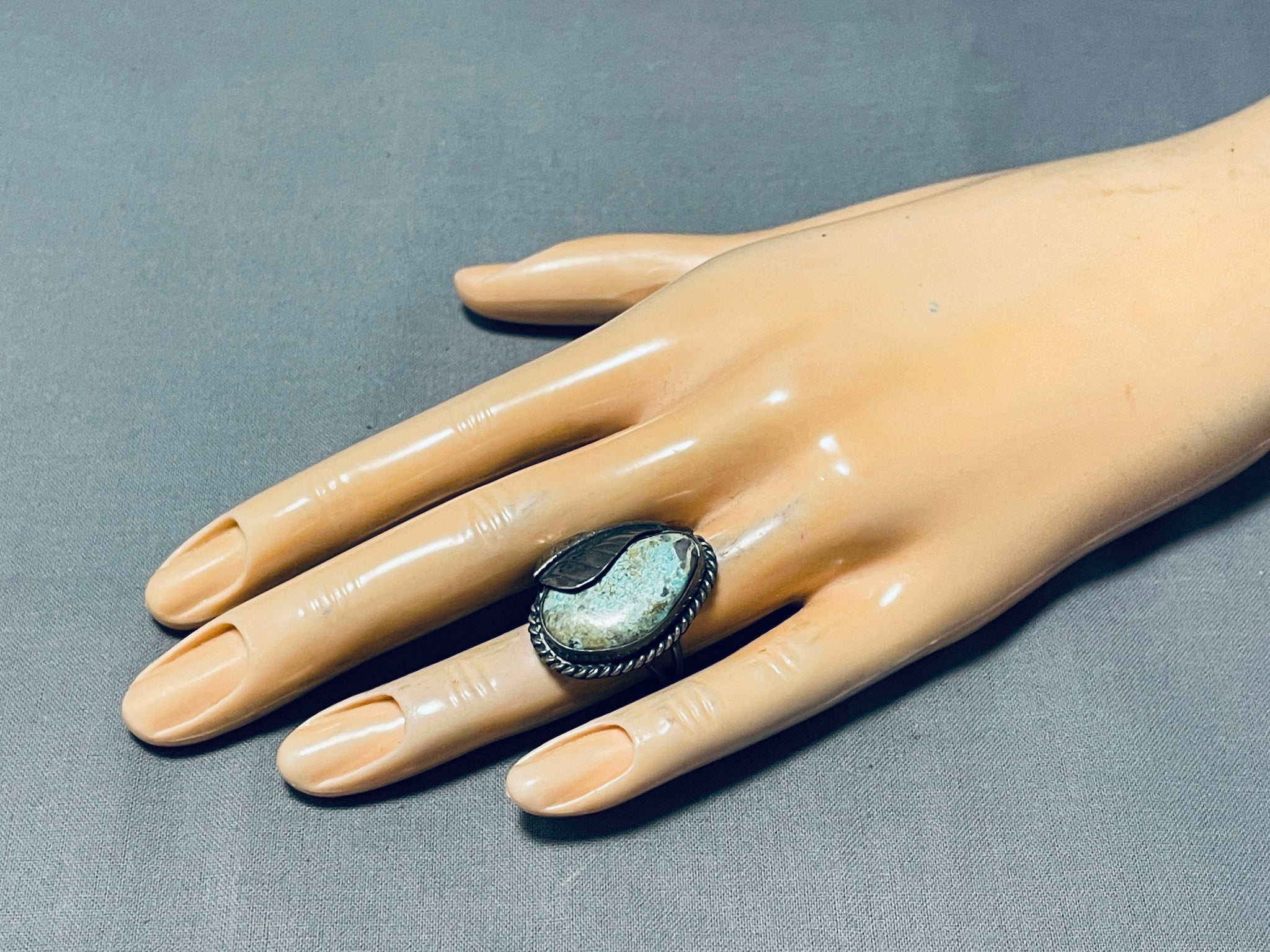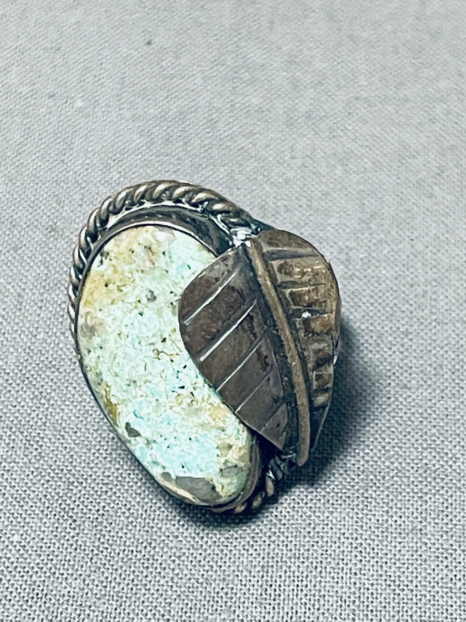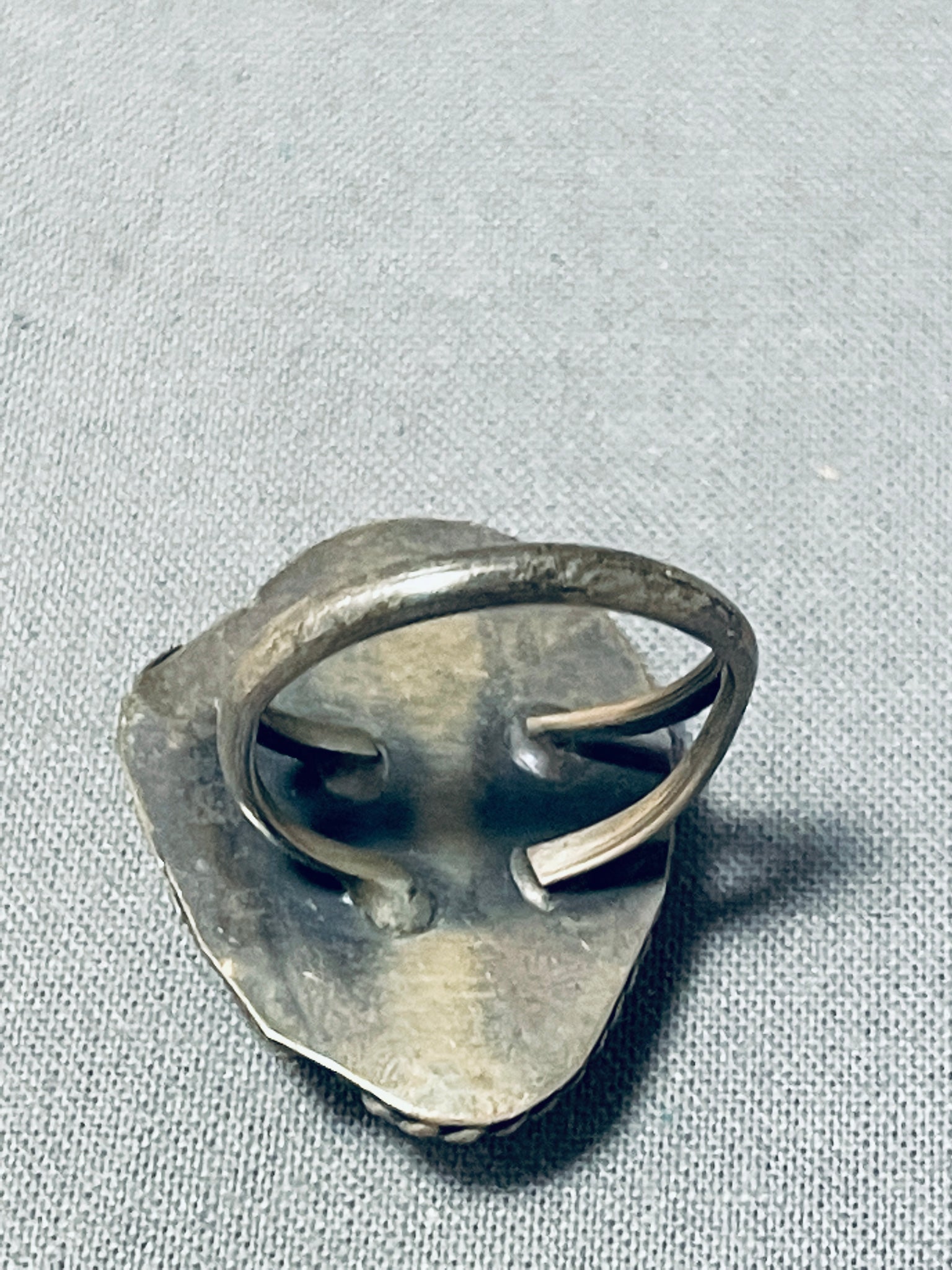 Very Intricate Matrix Vintage Native American Navajo Sterling Silver Leaf Ring Old