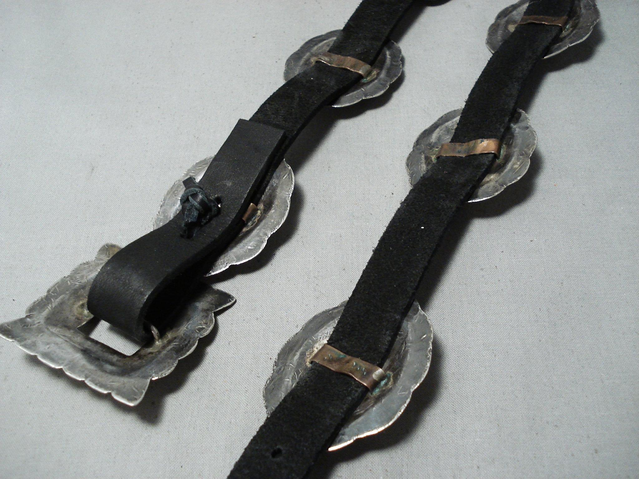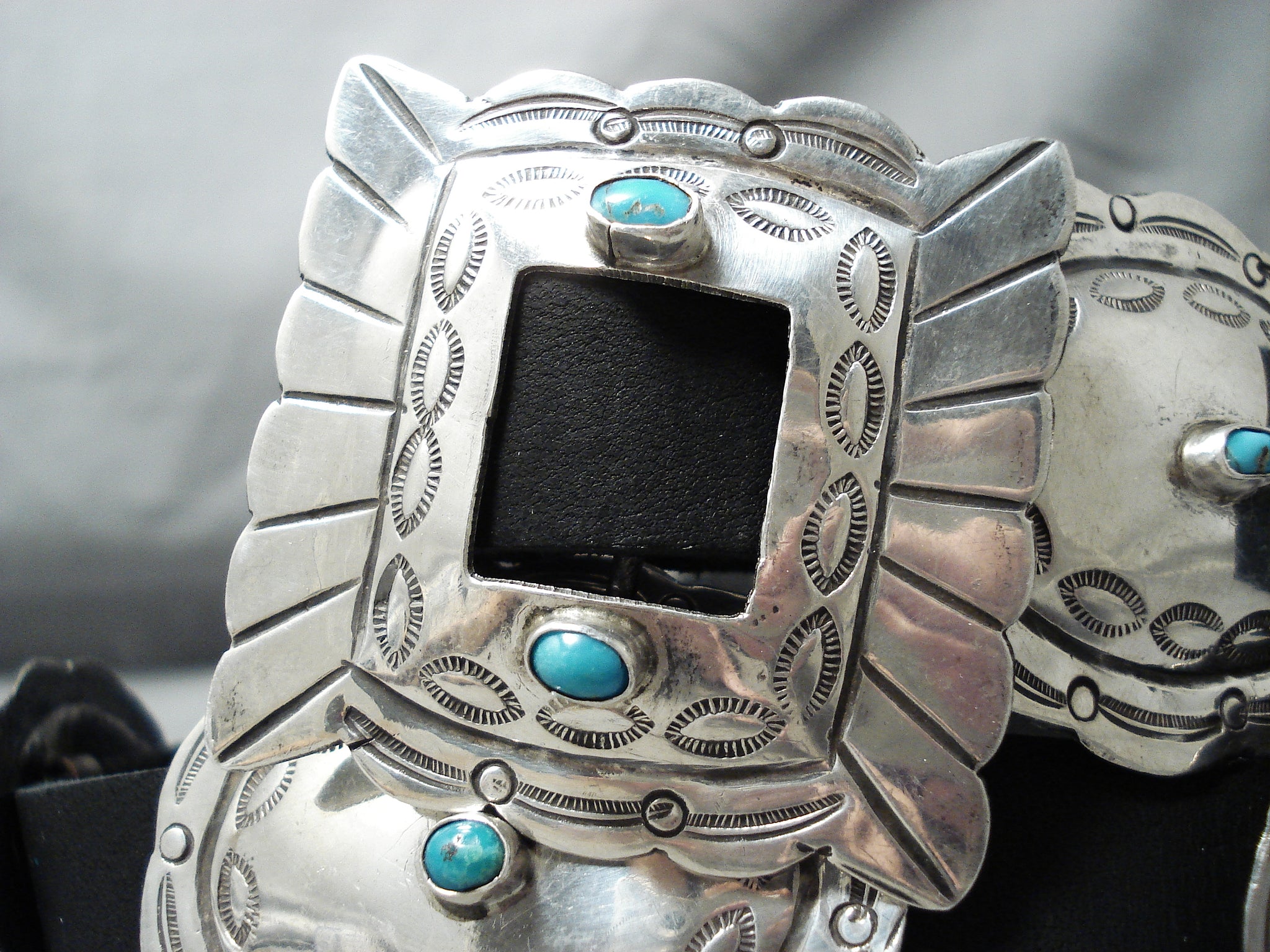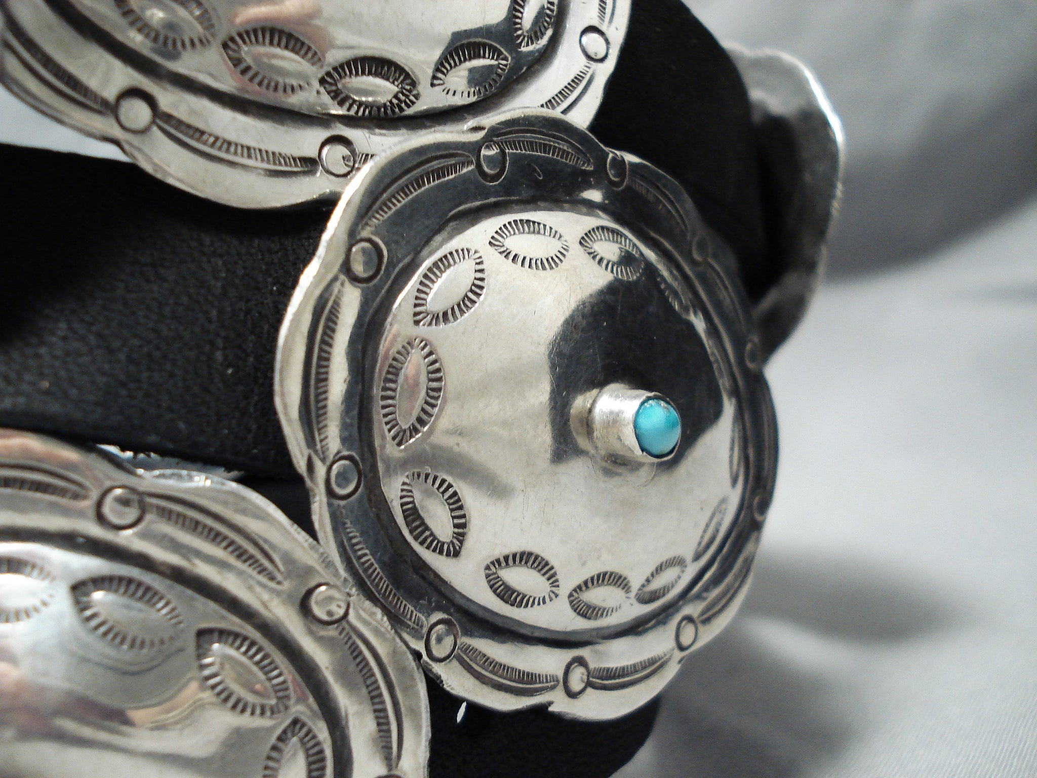 Very Old Vintage Native American Navajo Hand Tooled Sterling Silver Turquoise Concho Belt