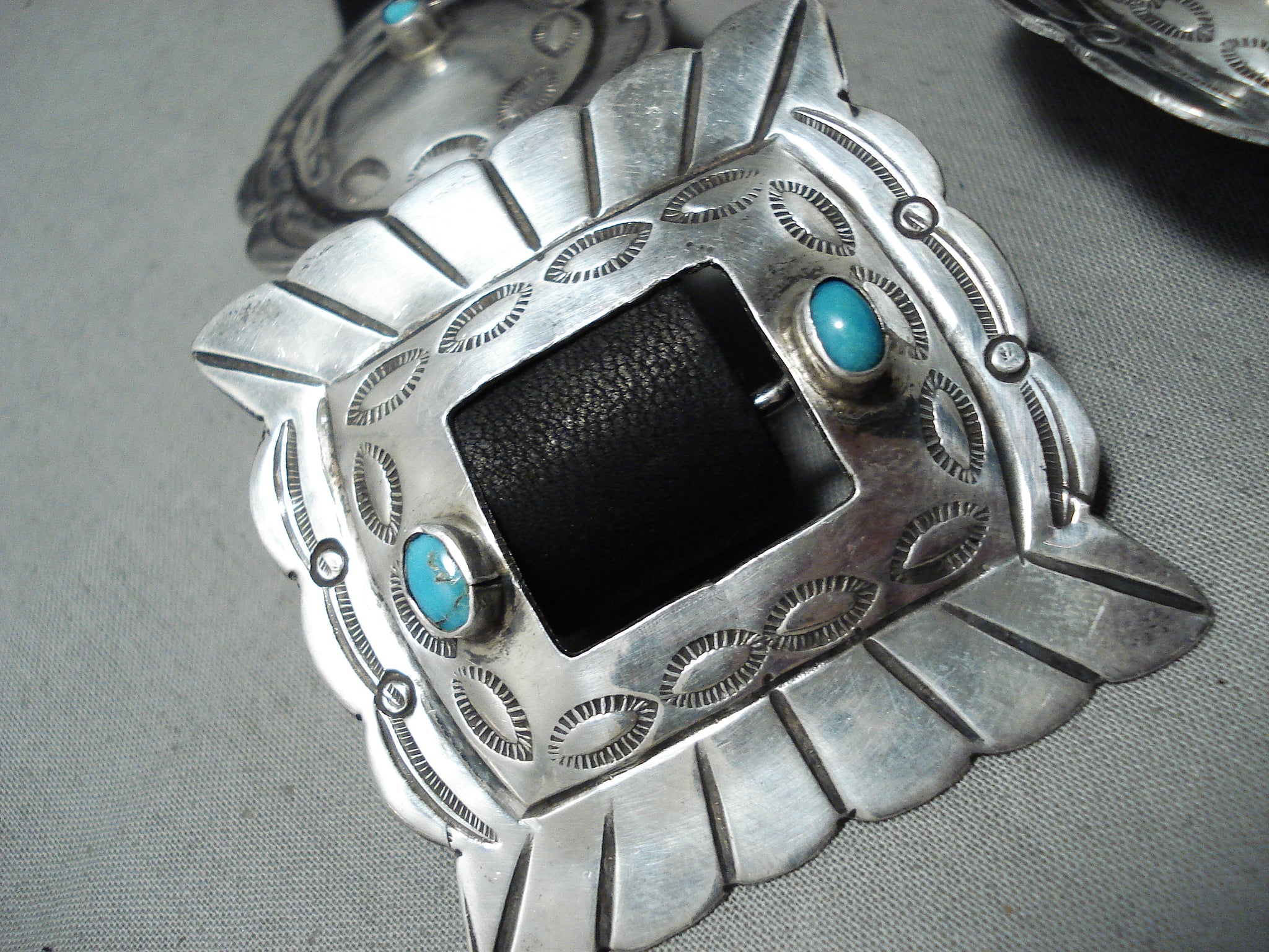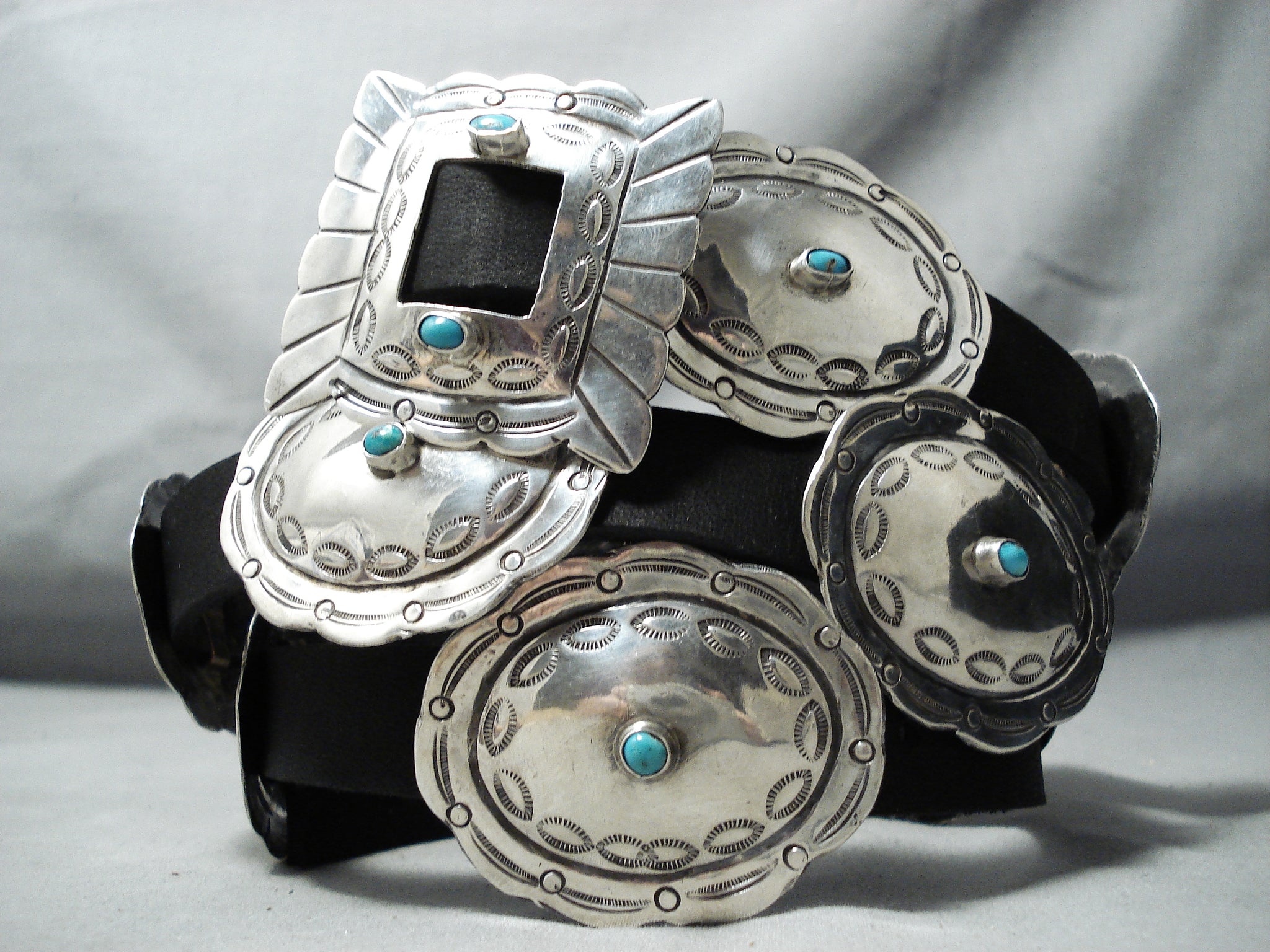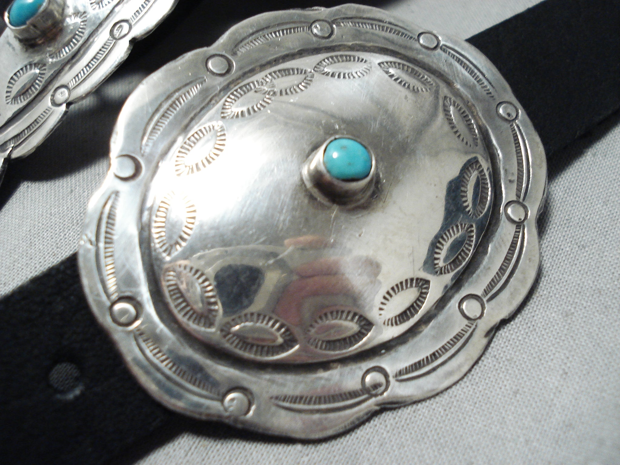 Very Old Vintage Native American Navajo Hand Tooled Sterling Silver Turquoise Concho Belt