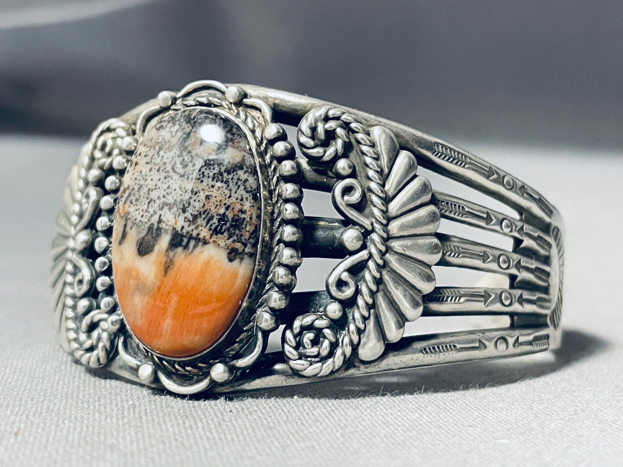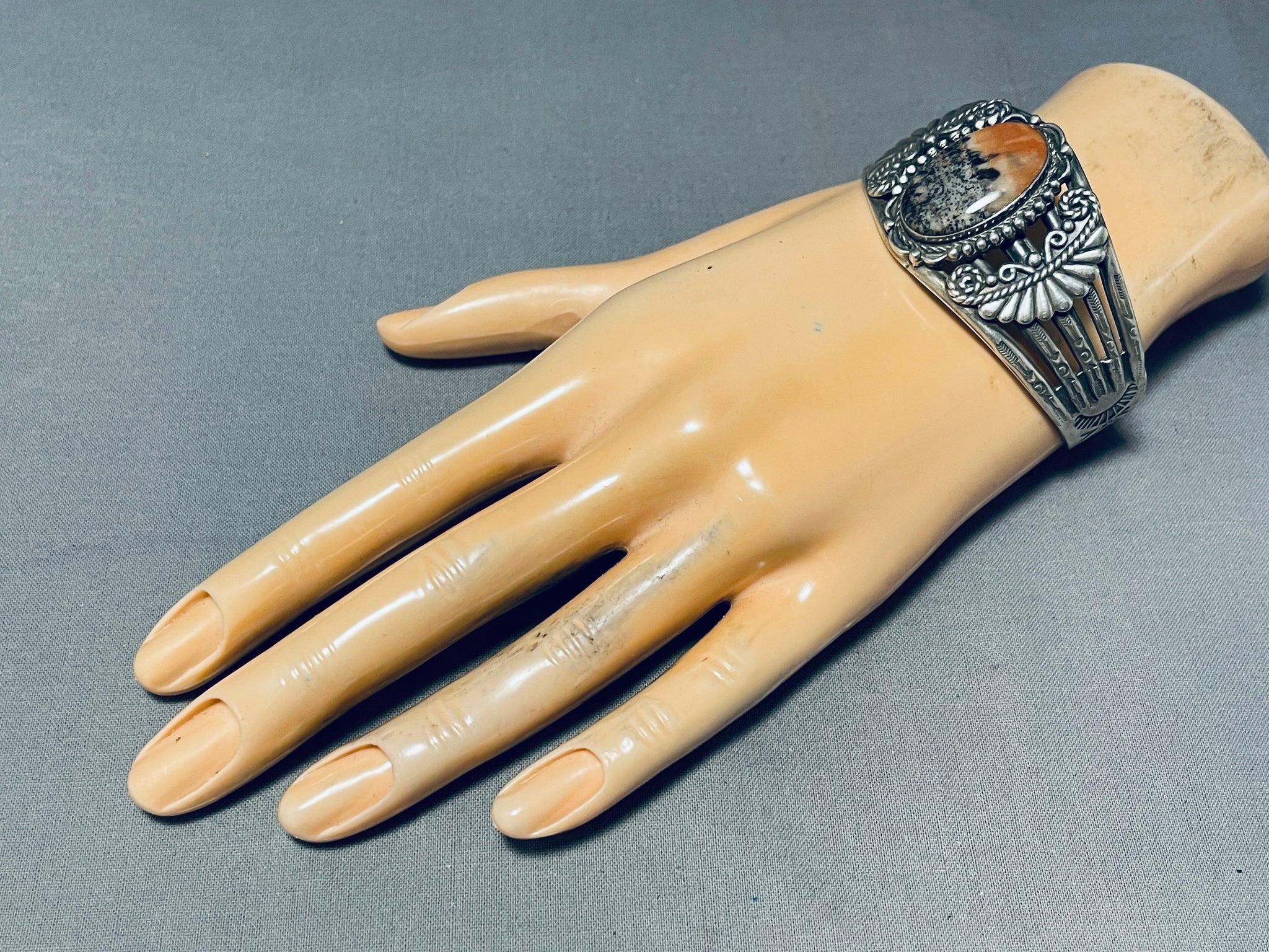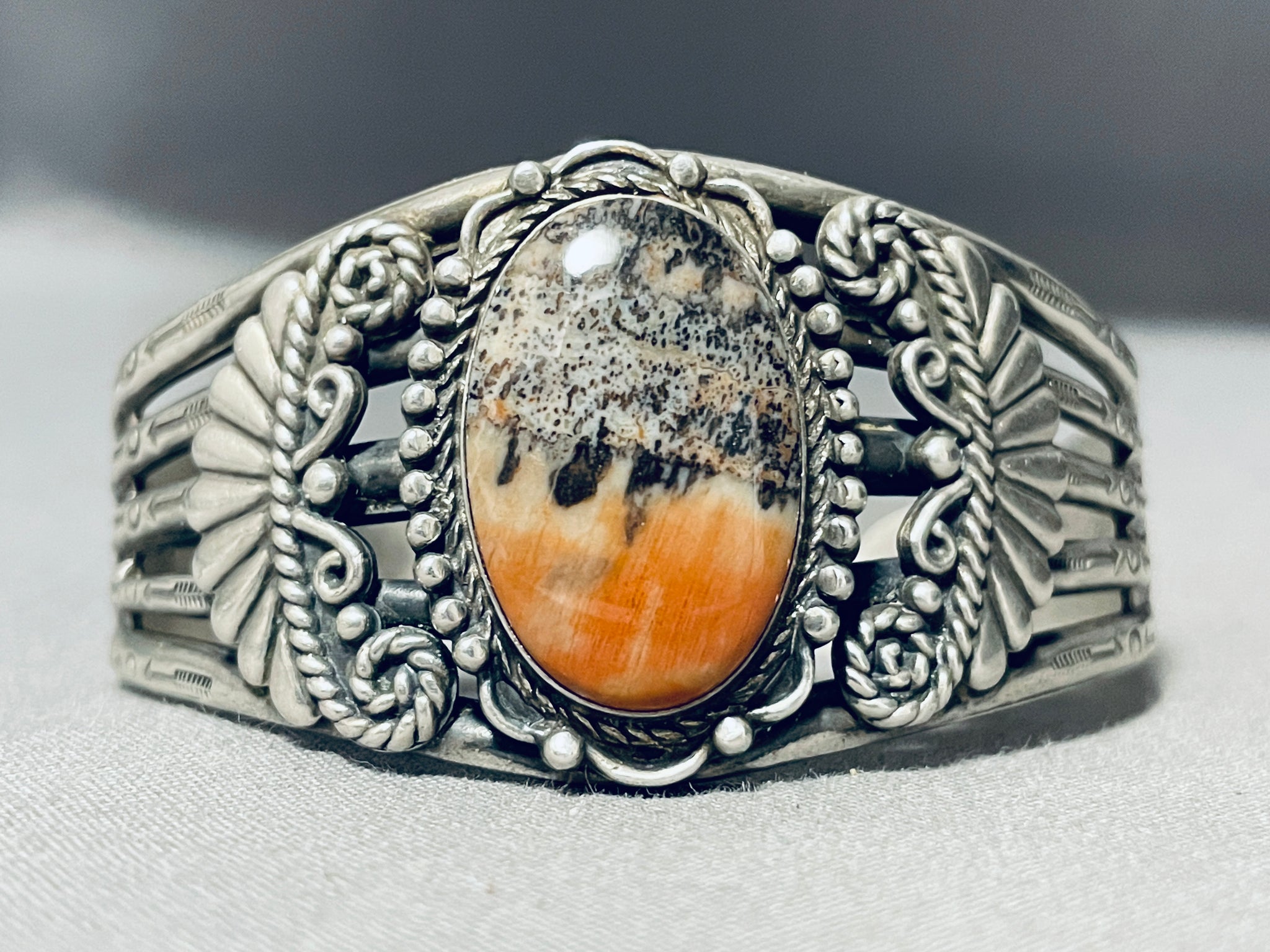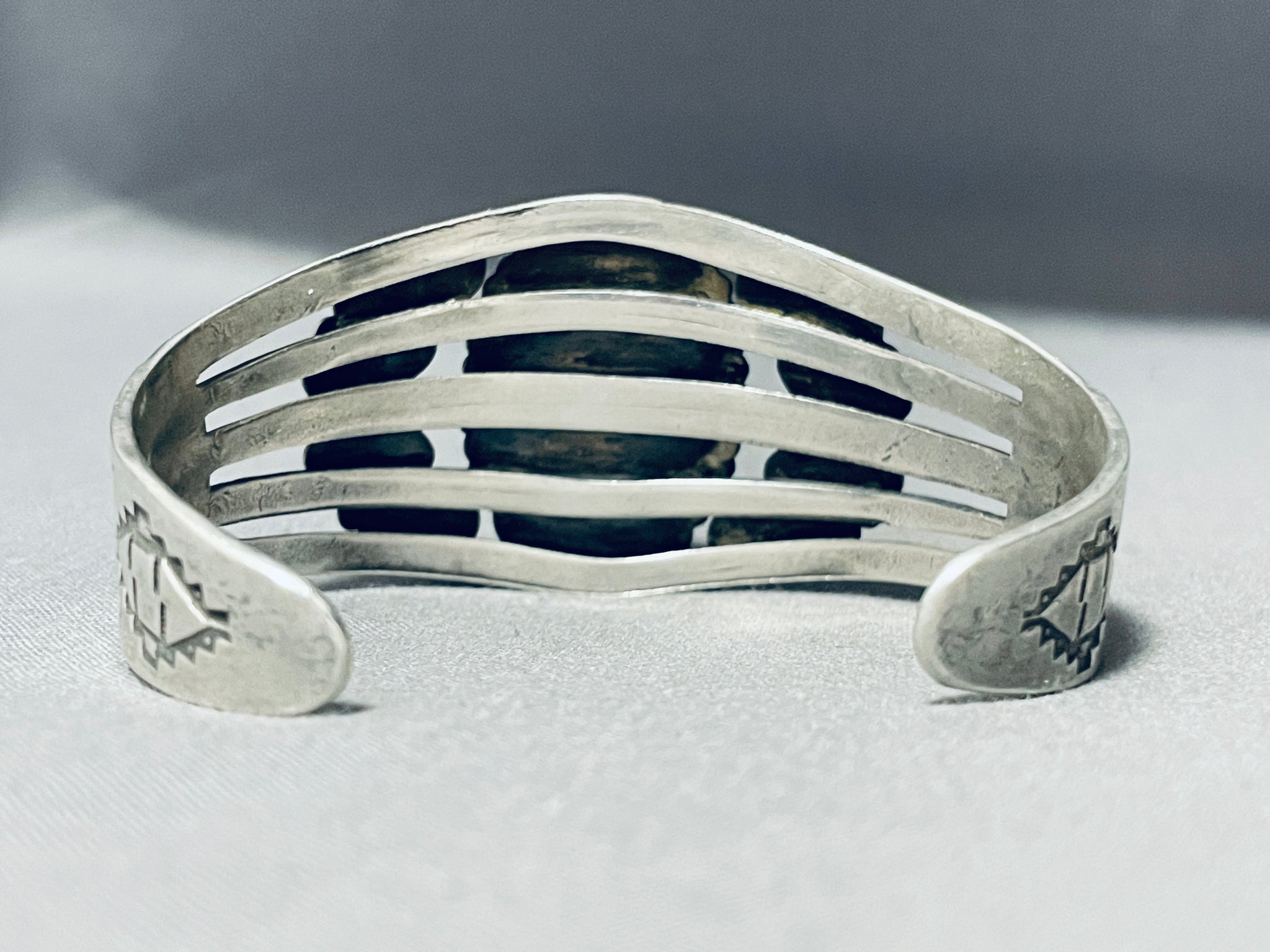 Very Old Vintage Native American Navajo Petrified Wood Sterling Silver Bracelet