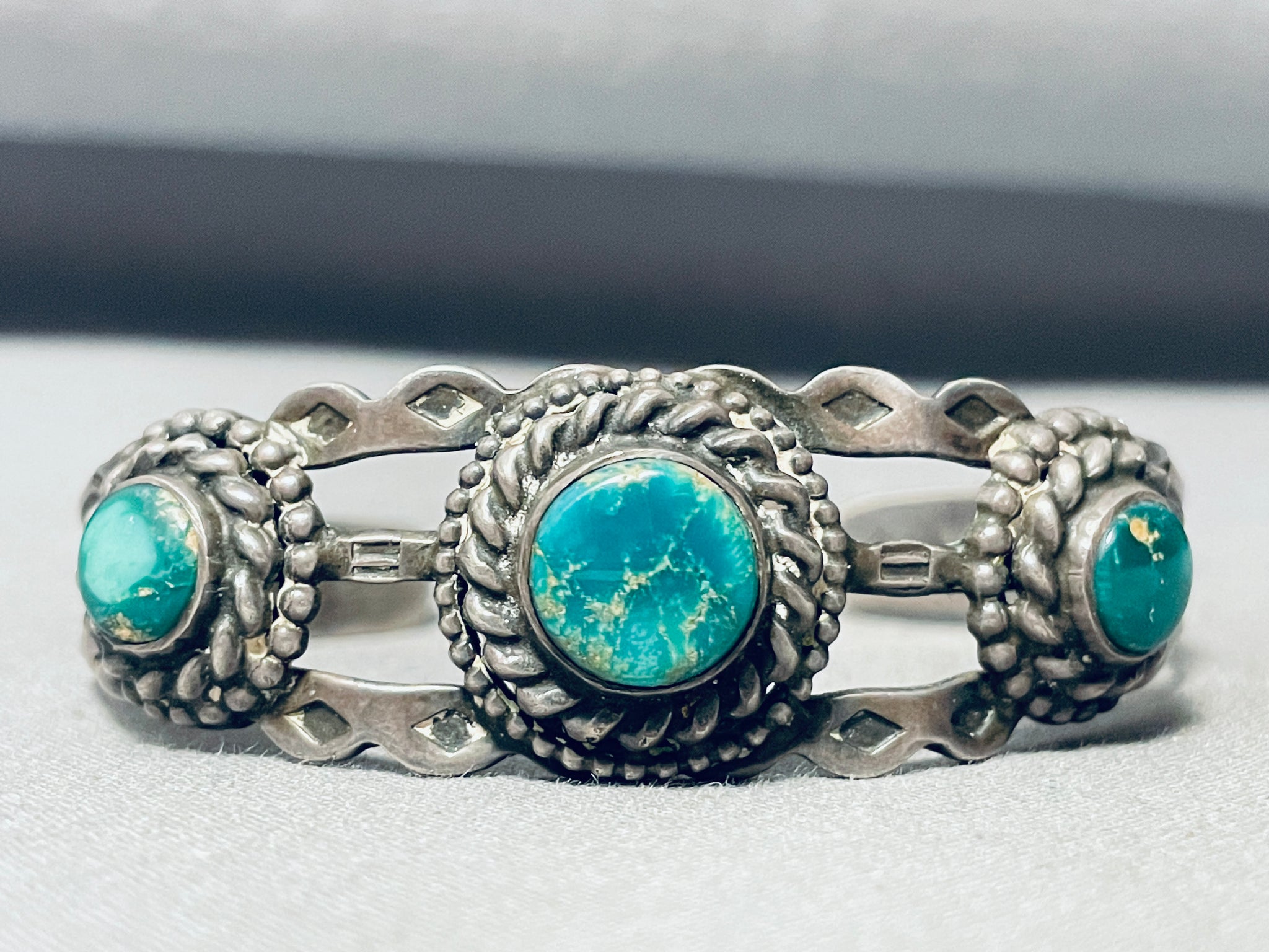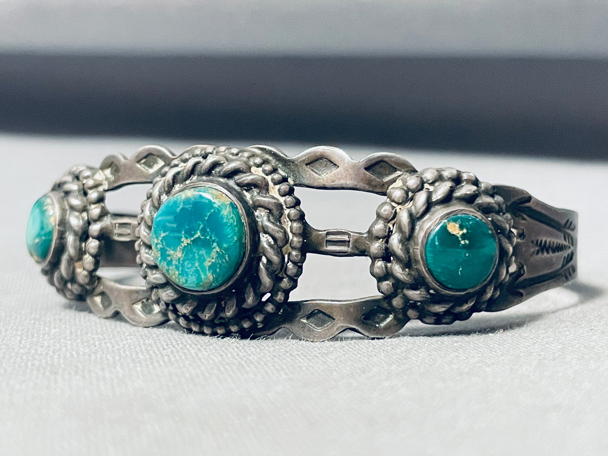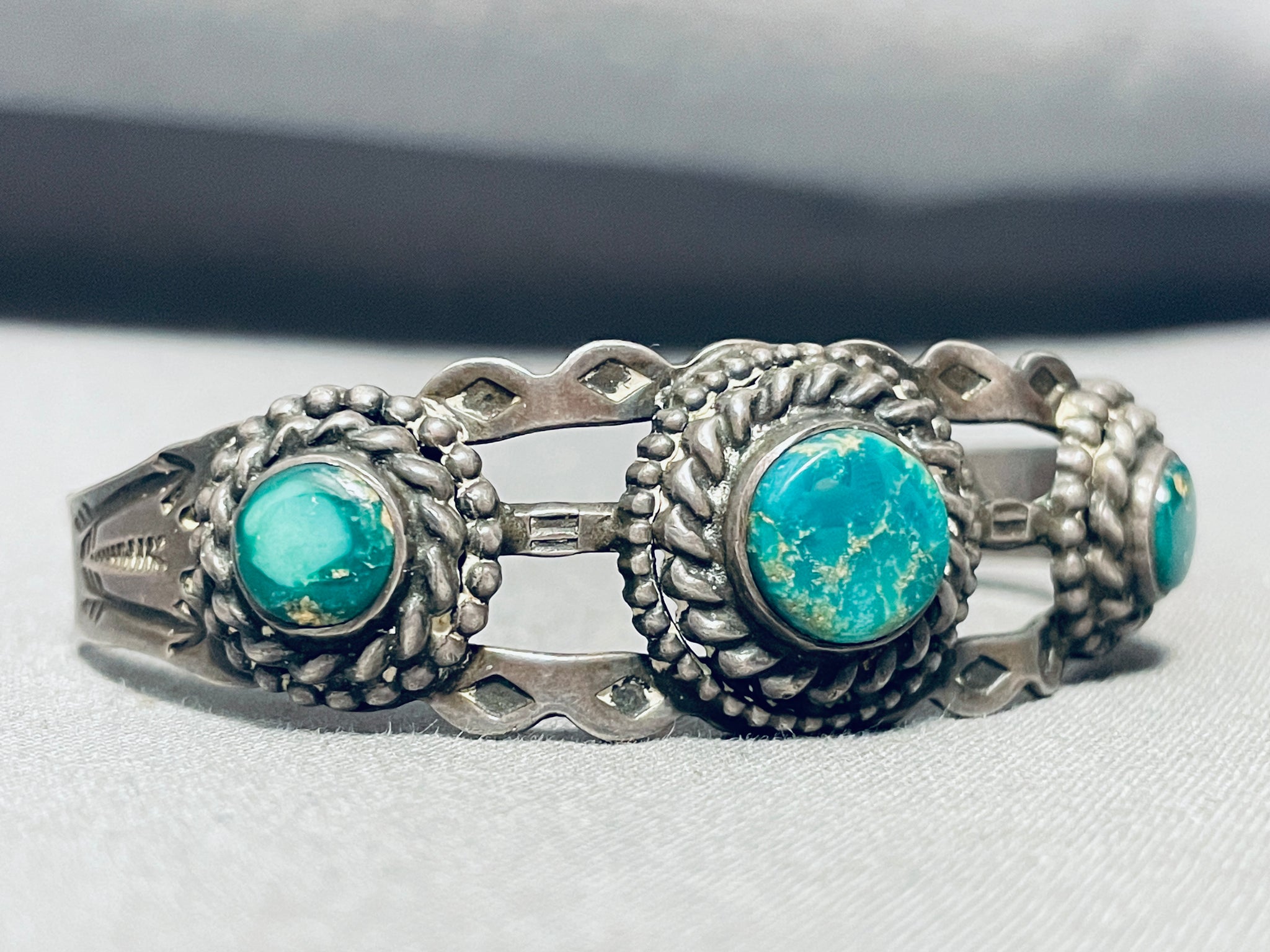 Very Old Vintage Native American Navajo Turquoise Sterling Silver Cerrillos Bracelet