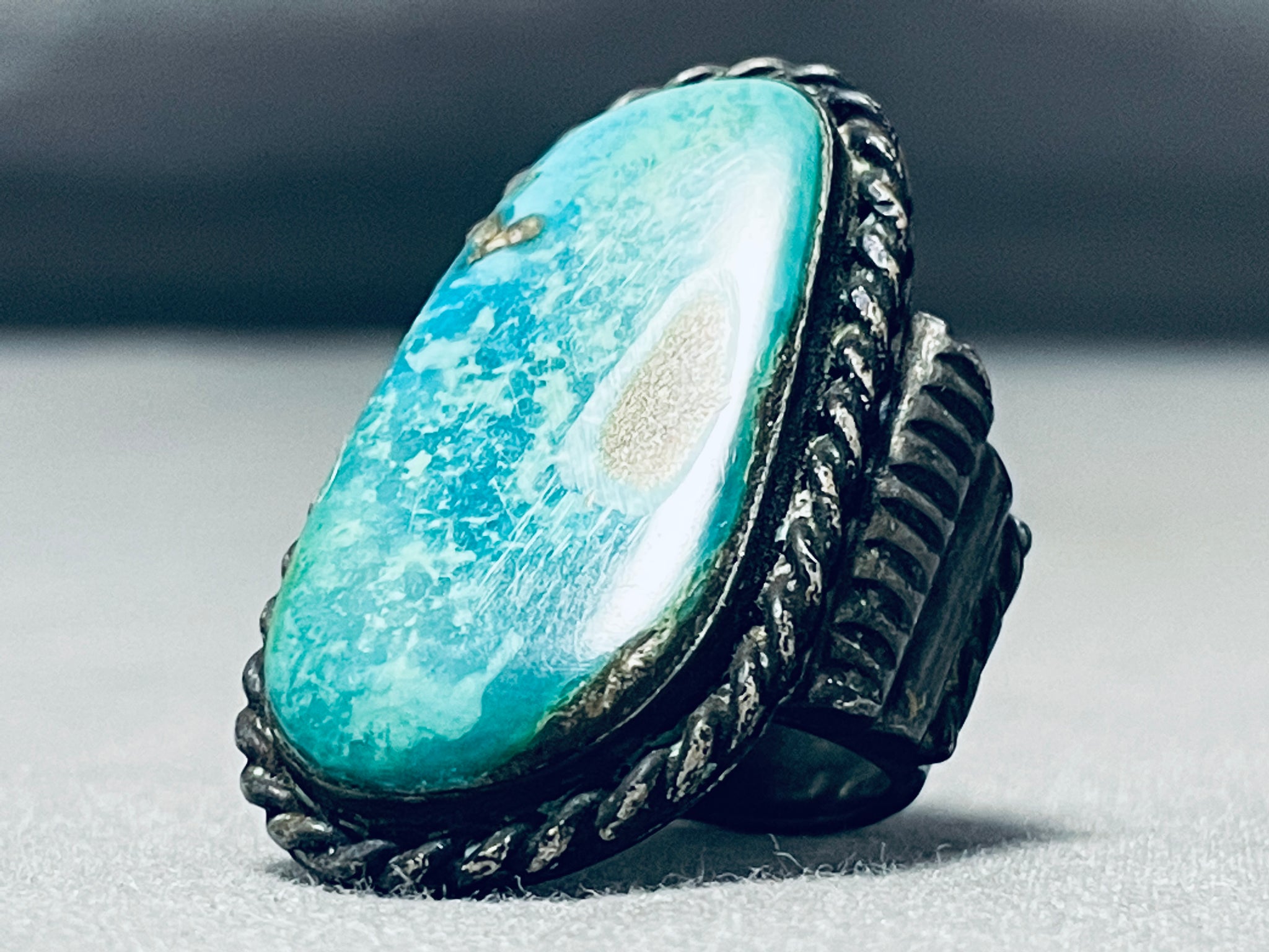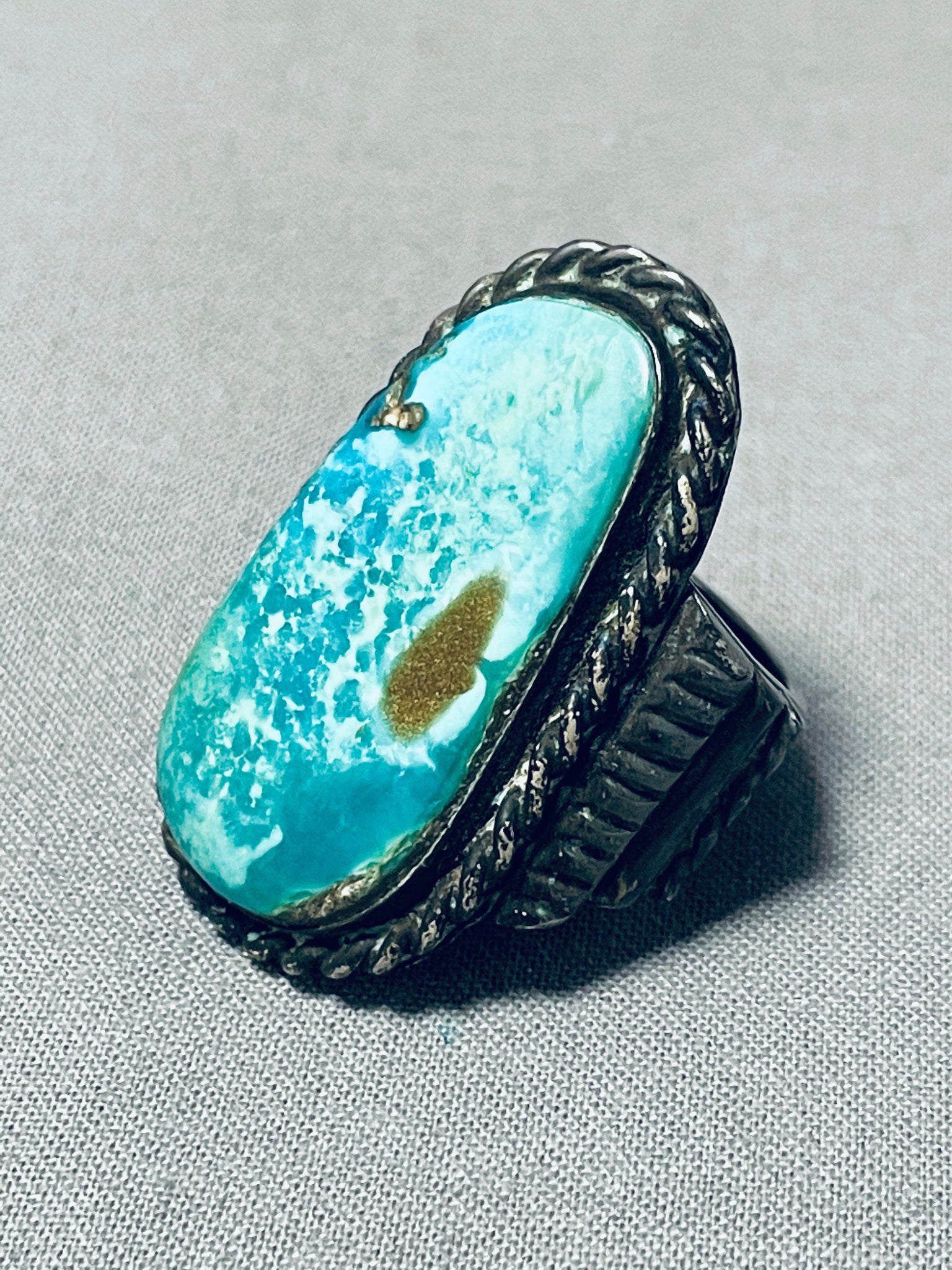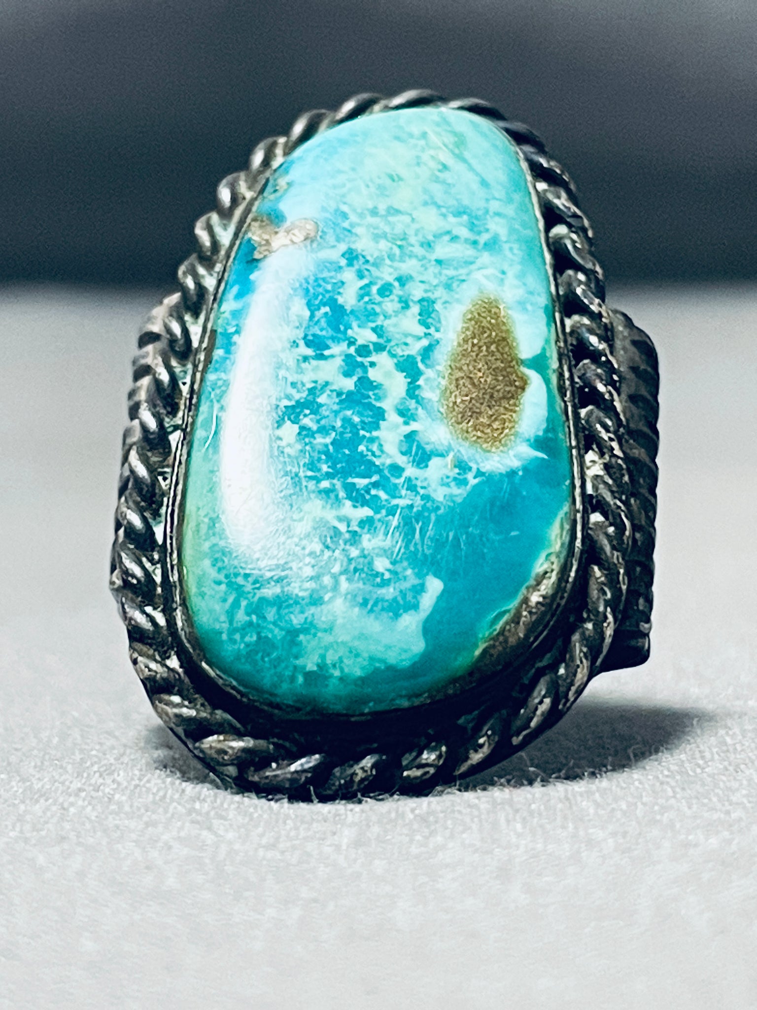 Very Rare Carico Lake Turquoise Vintage Native American Navajo Sterling Silver Ring Old