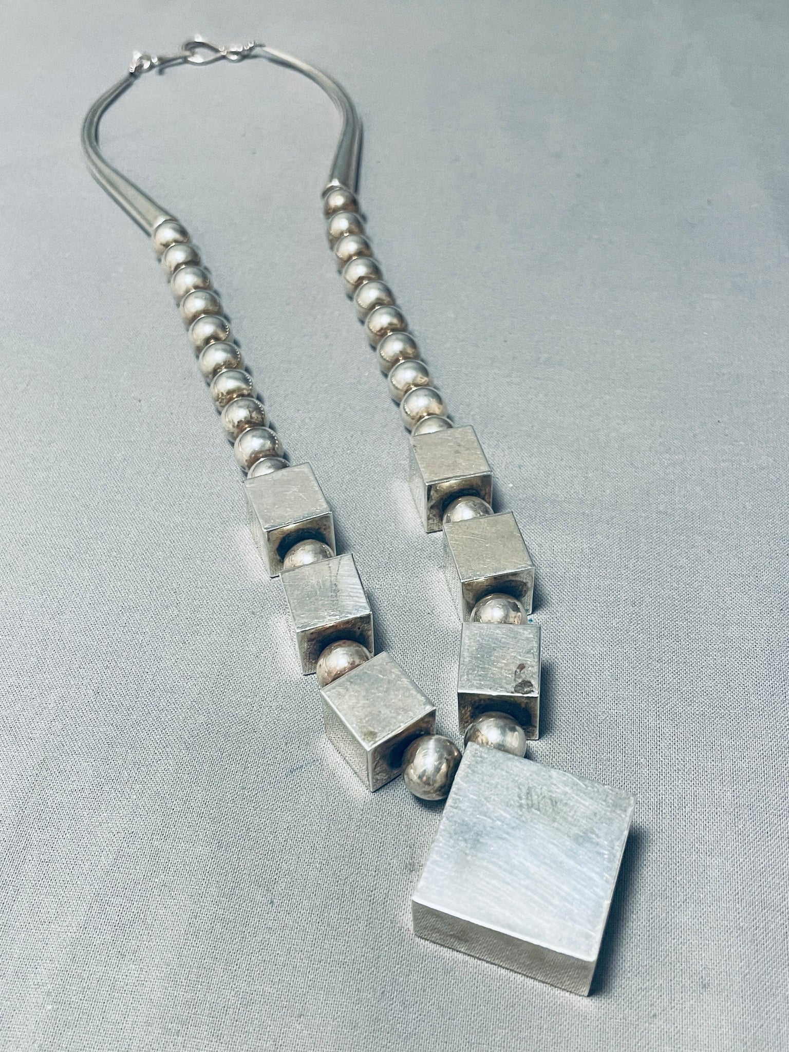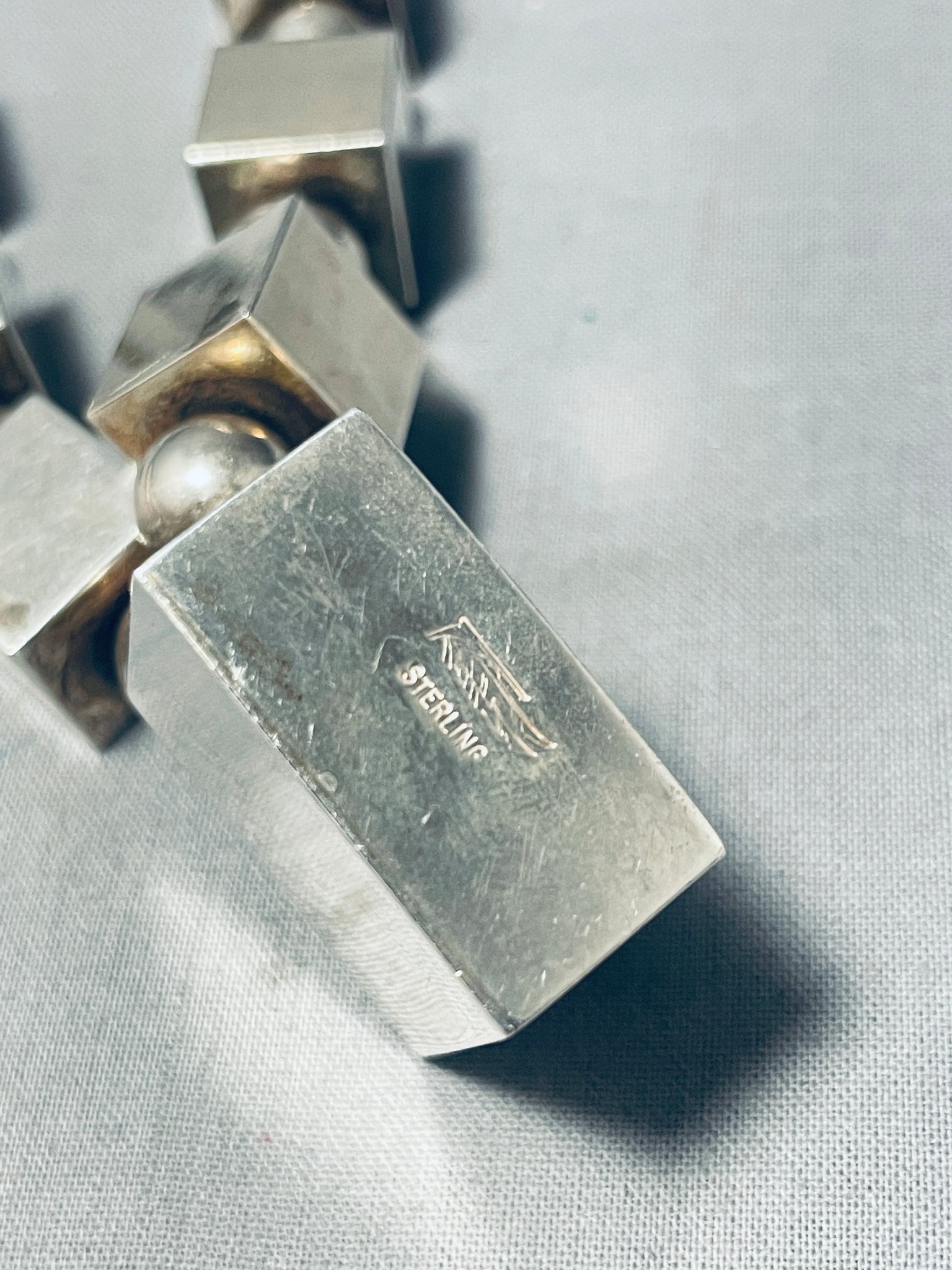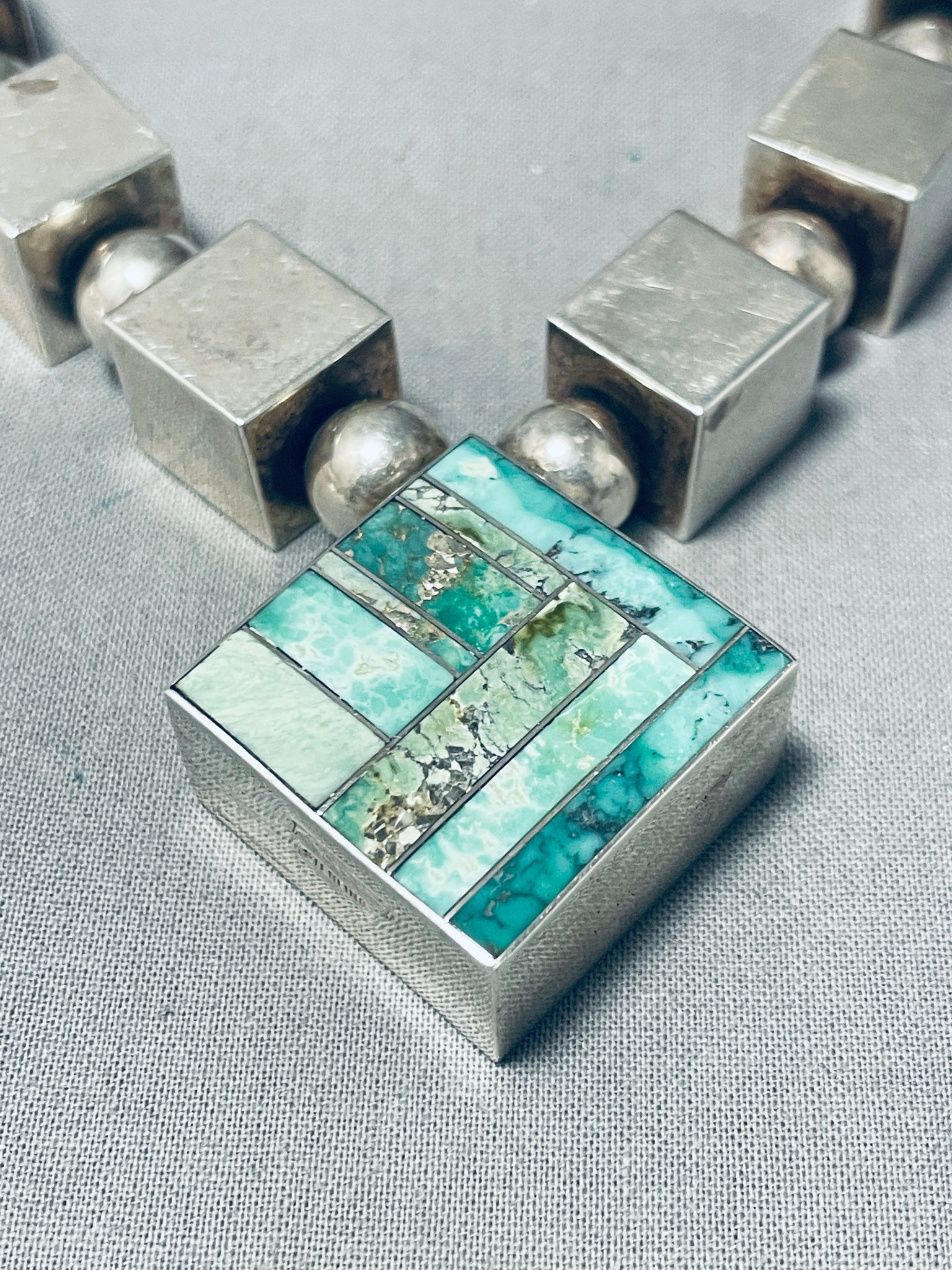 Very Rare Cubed Sterling Silver Vintage Native American Navajo Turquoise Necklace