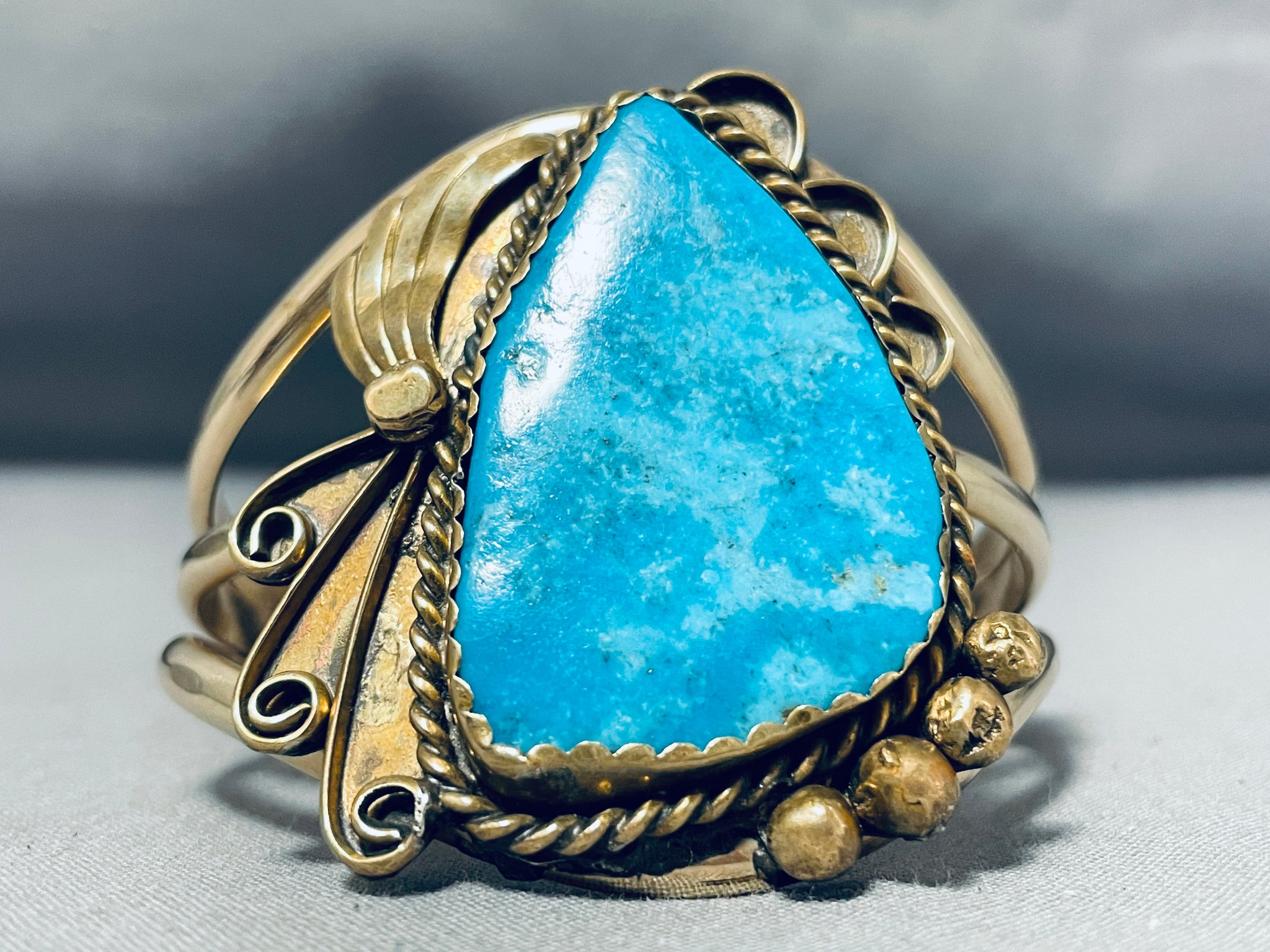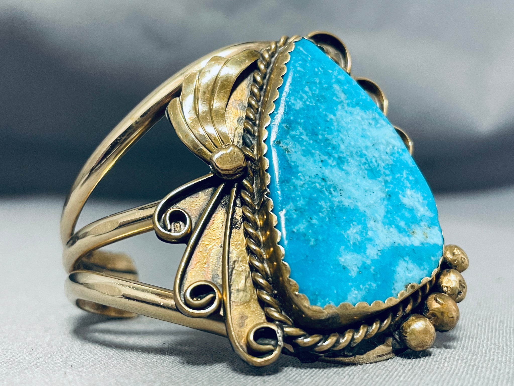 Very Rare Gilbert Turquoise Vintage Native American Navajo Sterling Silver Gold Bracelet