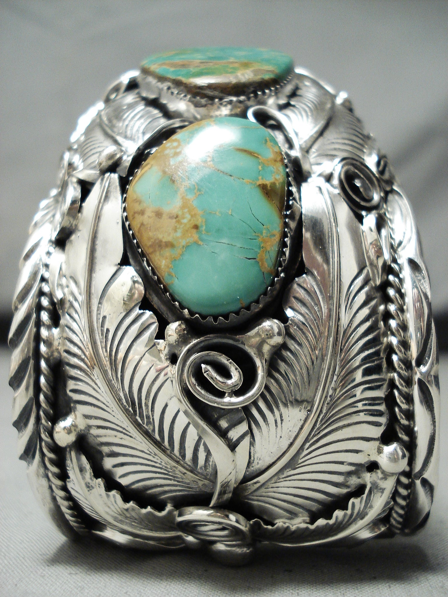 Very Rare Huge Bear Native American Navajo Royston Turquoise Sterling Silver Bracelet