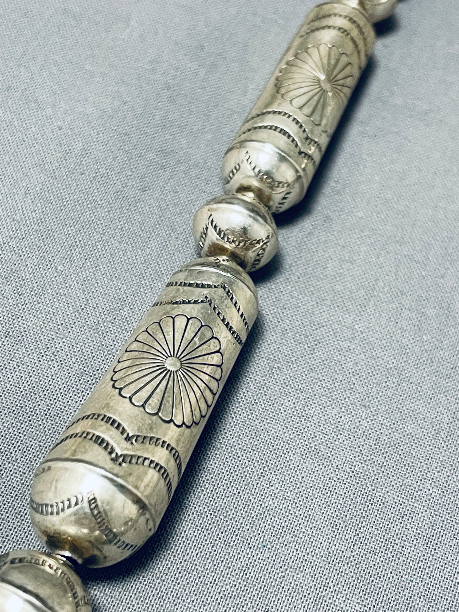 Very Rare Long Tubule Hand Tooled Vintage Native American Navajo Sterling Silver Necklace