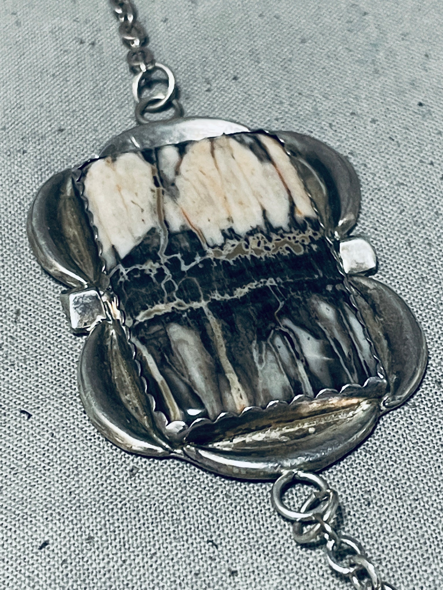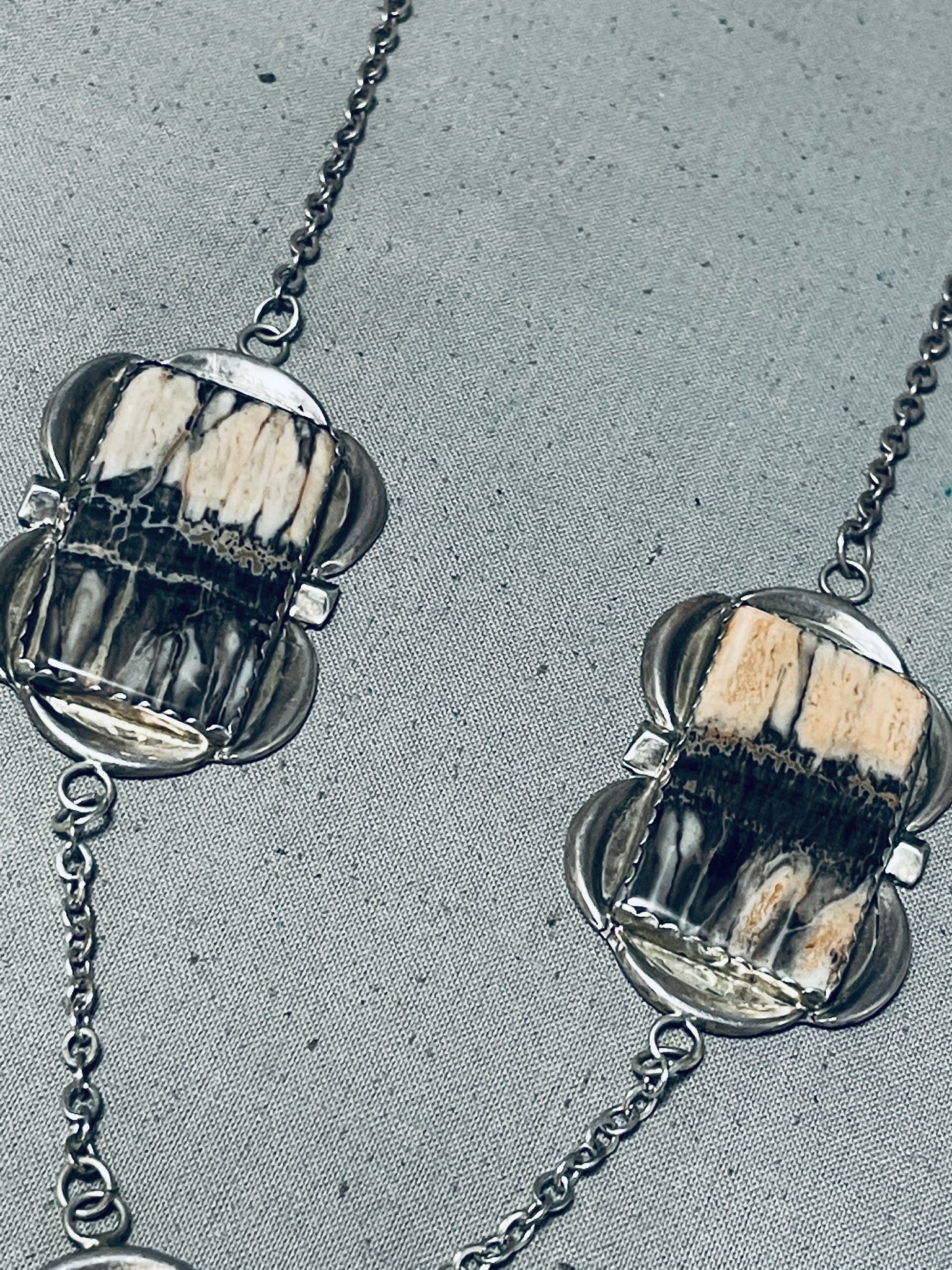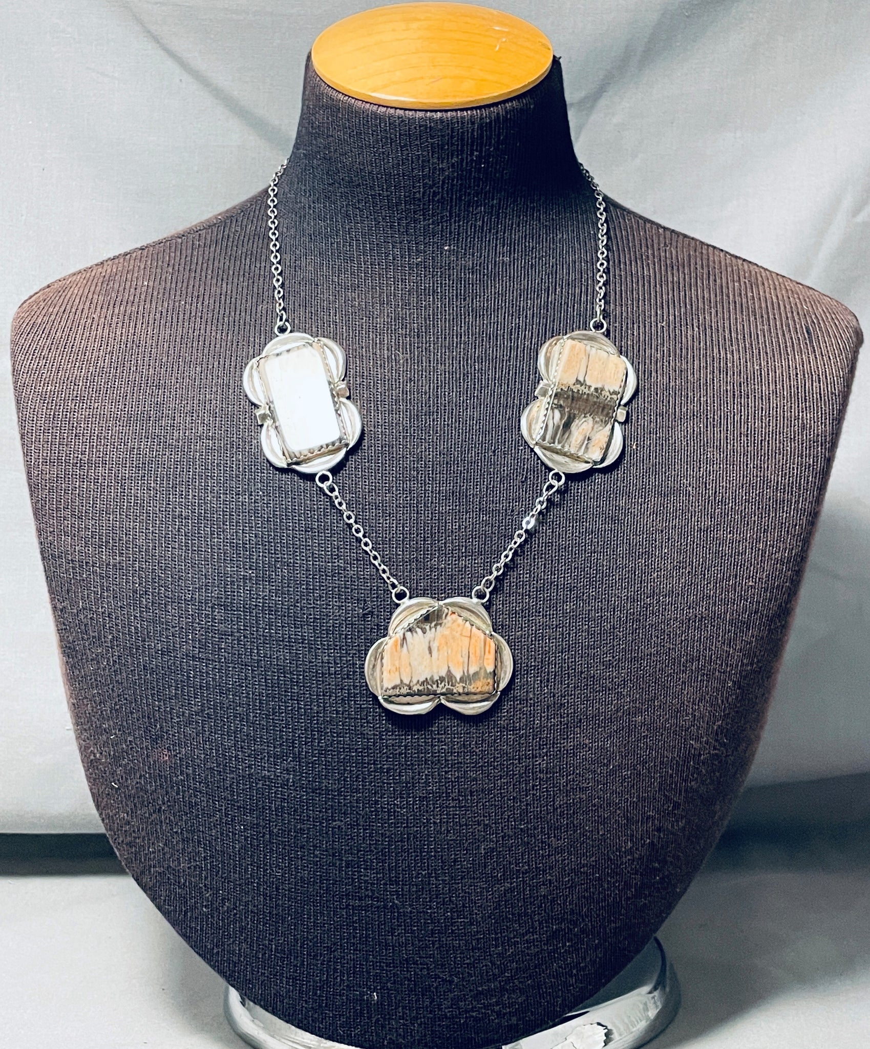 Very Rare Petrified Wood Vintage Native American Navajo Sterling Silver Necklace