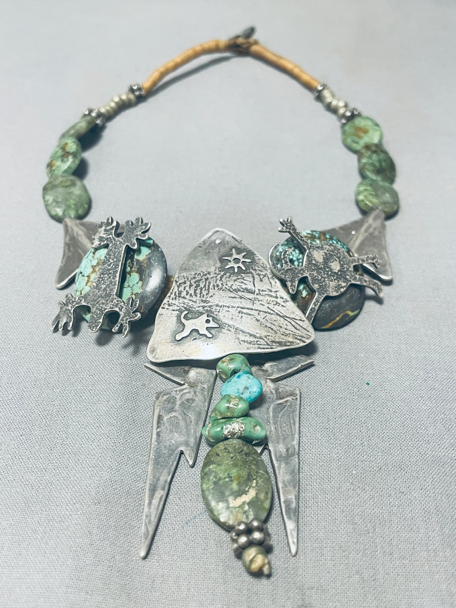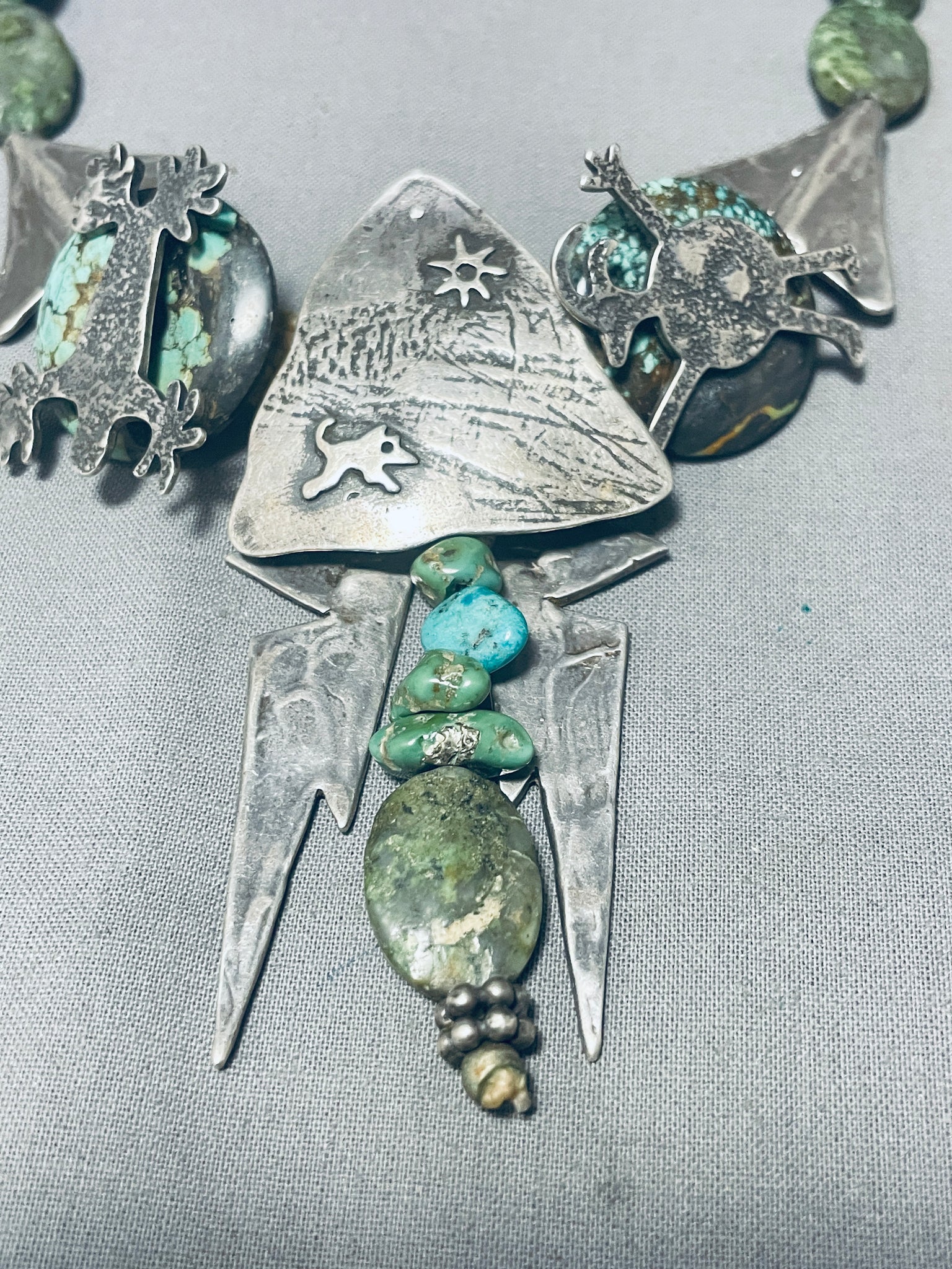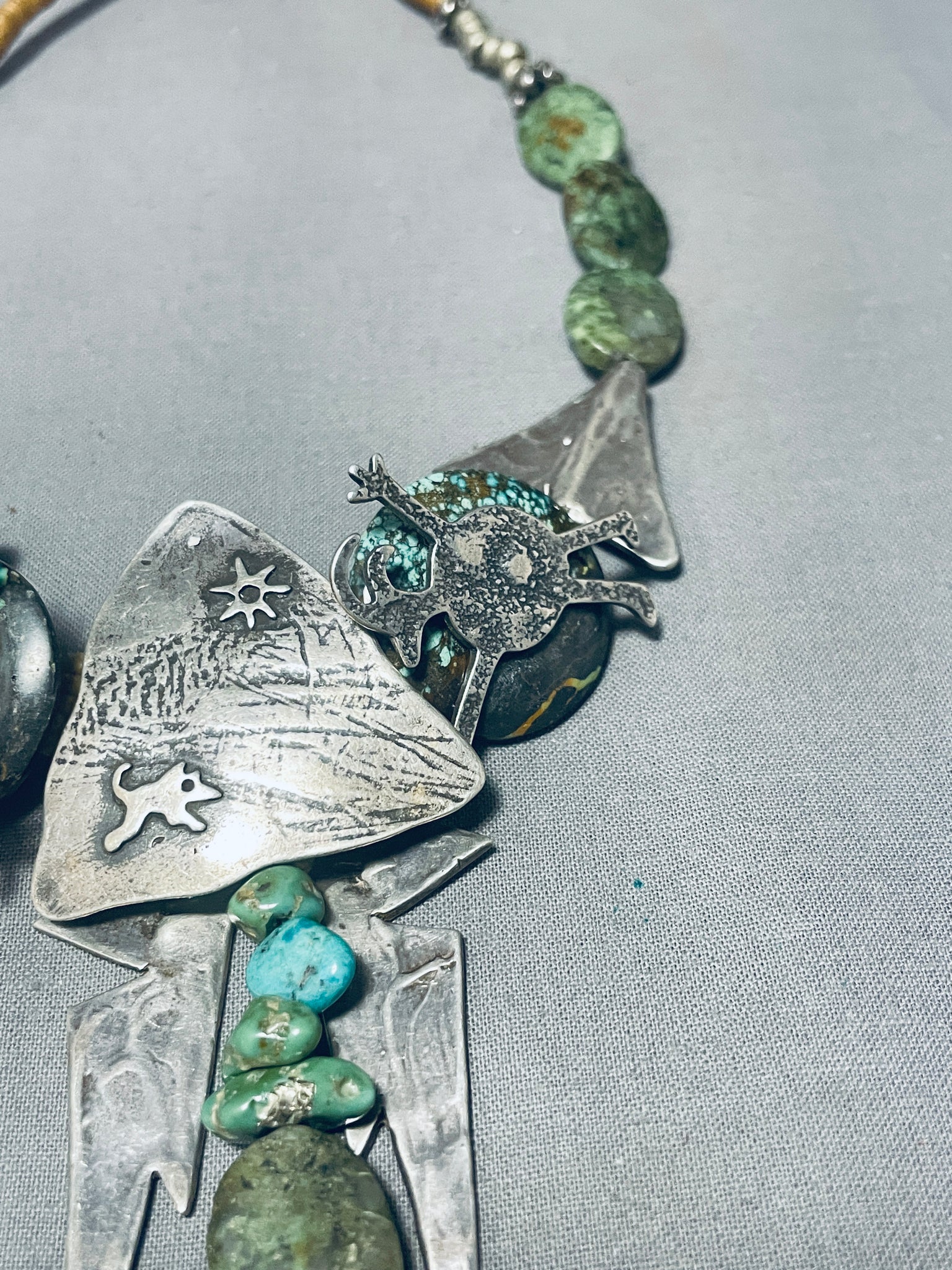 Very Rare Petroglyph Vintage Southwest Turquoise Sterling Silver Necklace