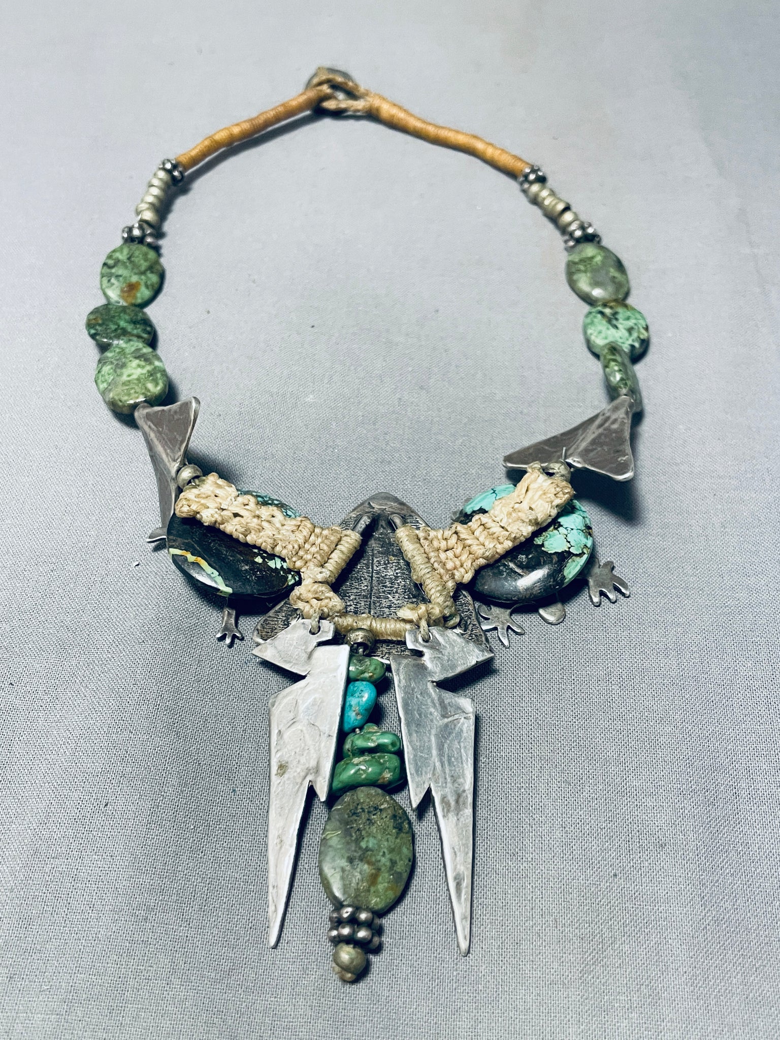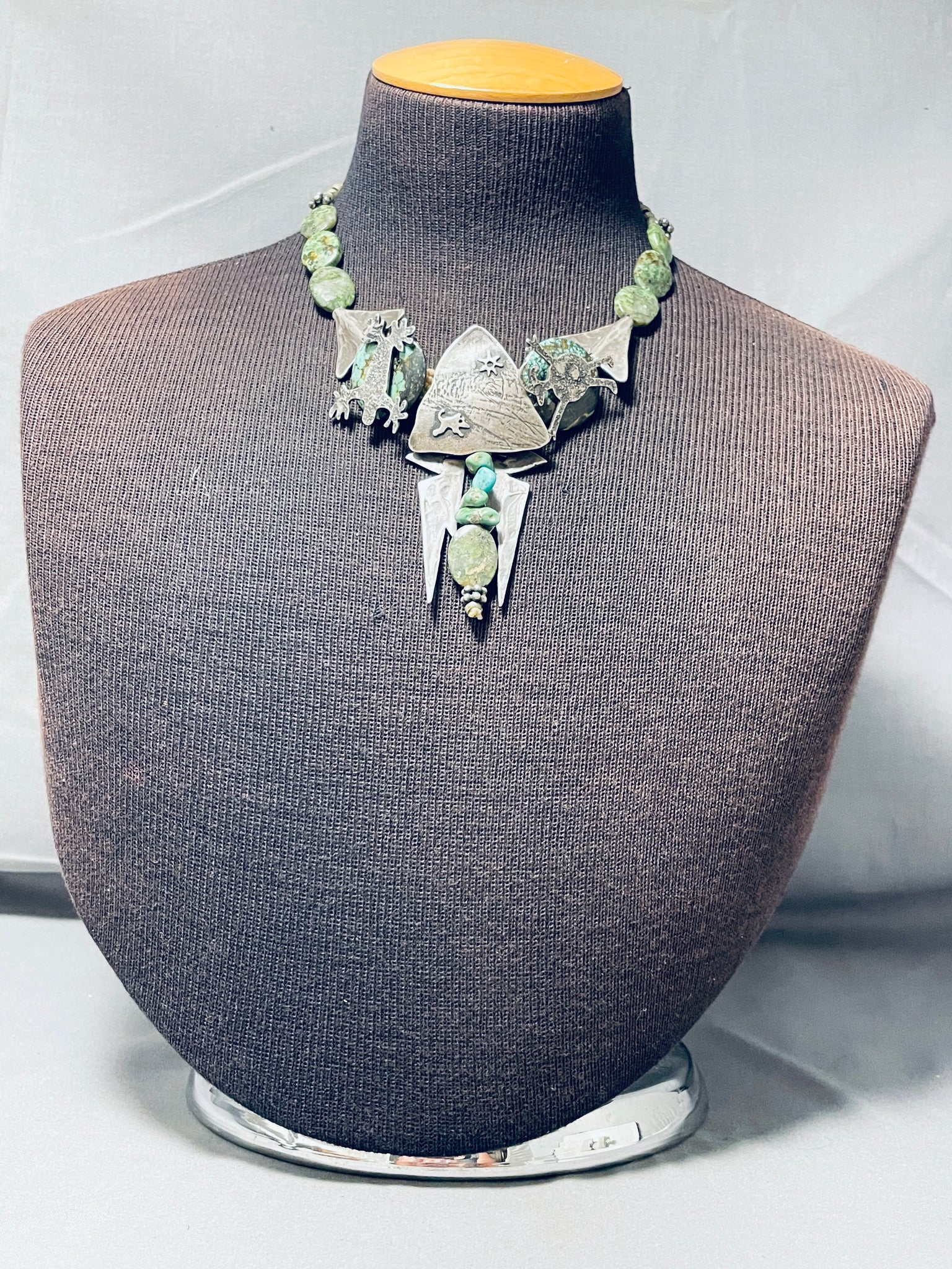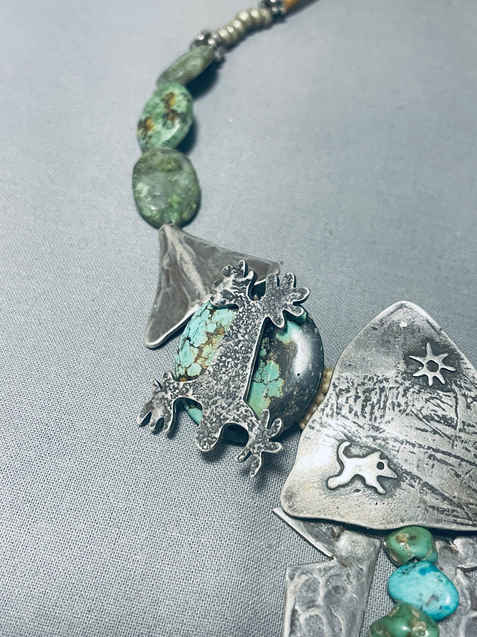 Very Rare Petroglyph Vintage Southwest Turquoise Sterling Silver Necklace
