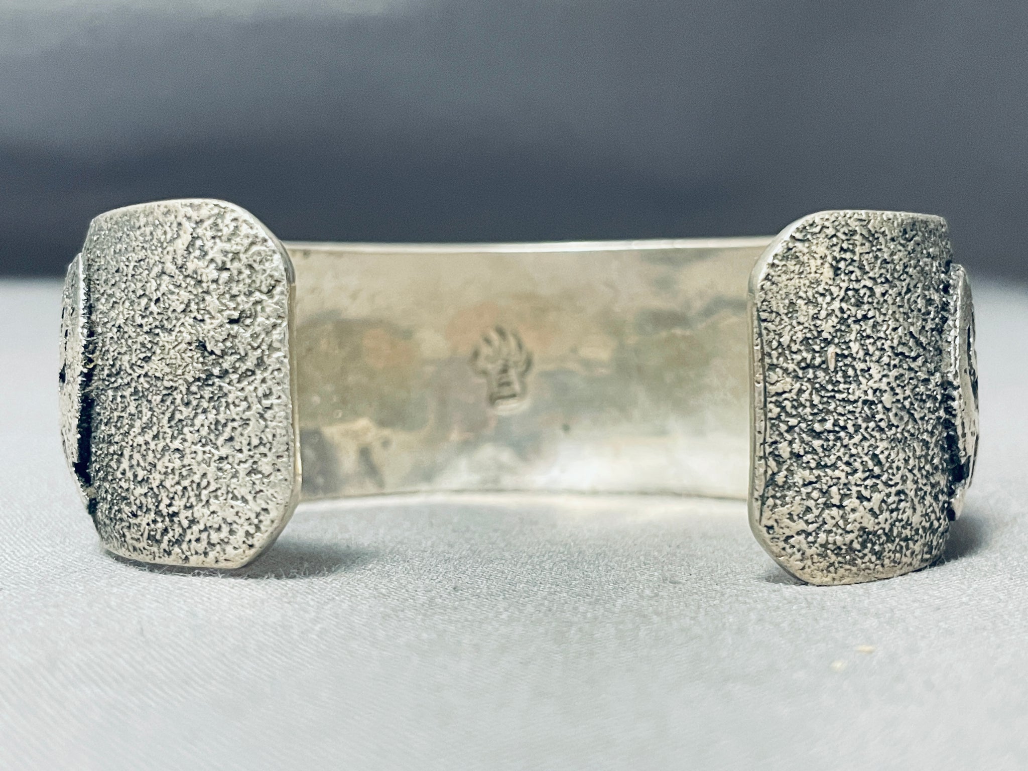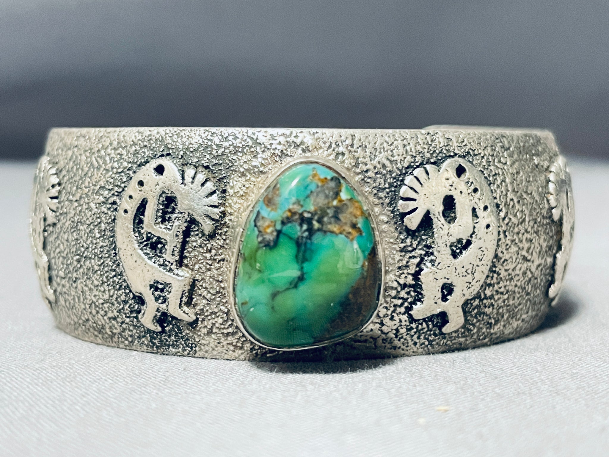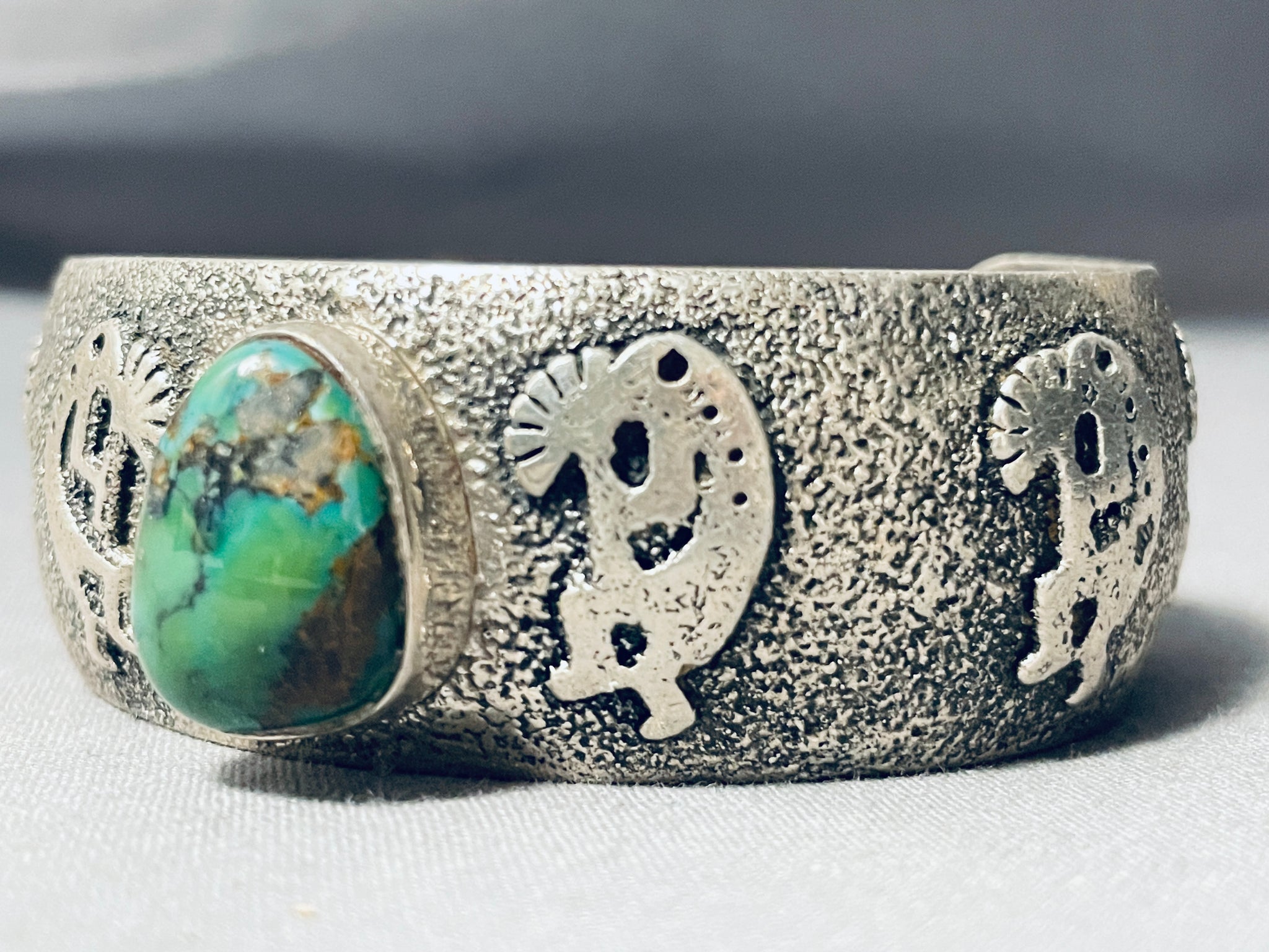 Very Rare Turquoise Vintage Native American Navajo Damale Sterling Silver Kokopelli Bracelet