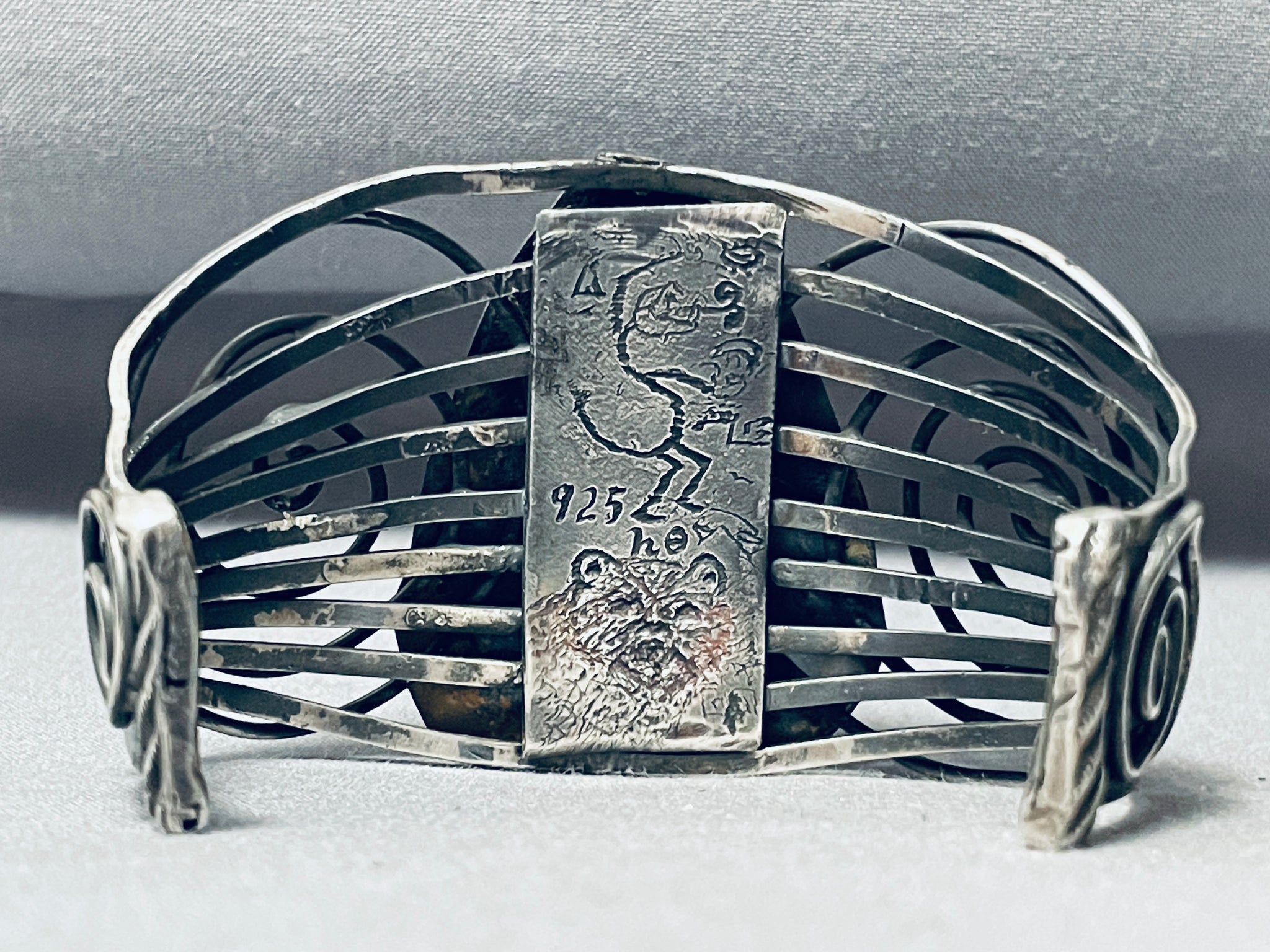 Very Unique Hand Carved Owl Lolite Sterling Silver Signed Bracelet
