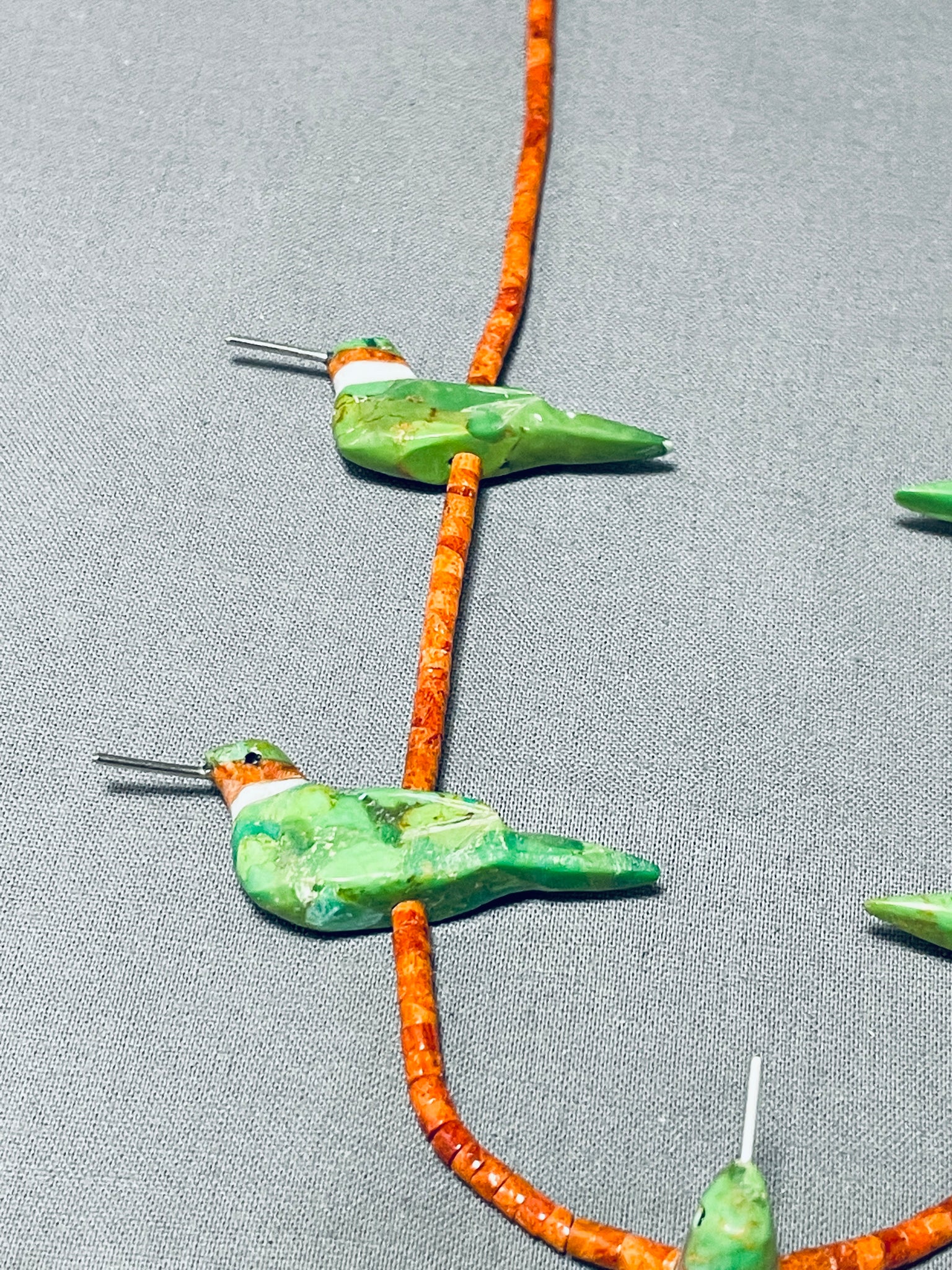 Very Unique Southwestern Gaspeite Corasl Sterling Silver Bird Necklace