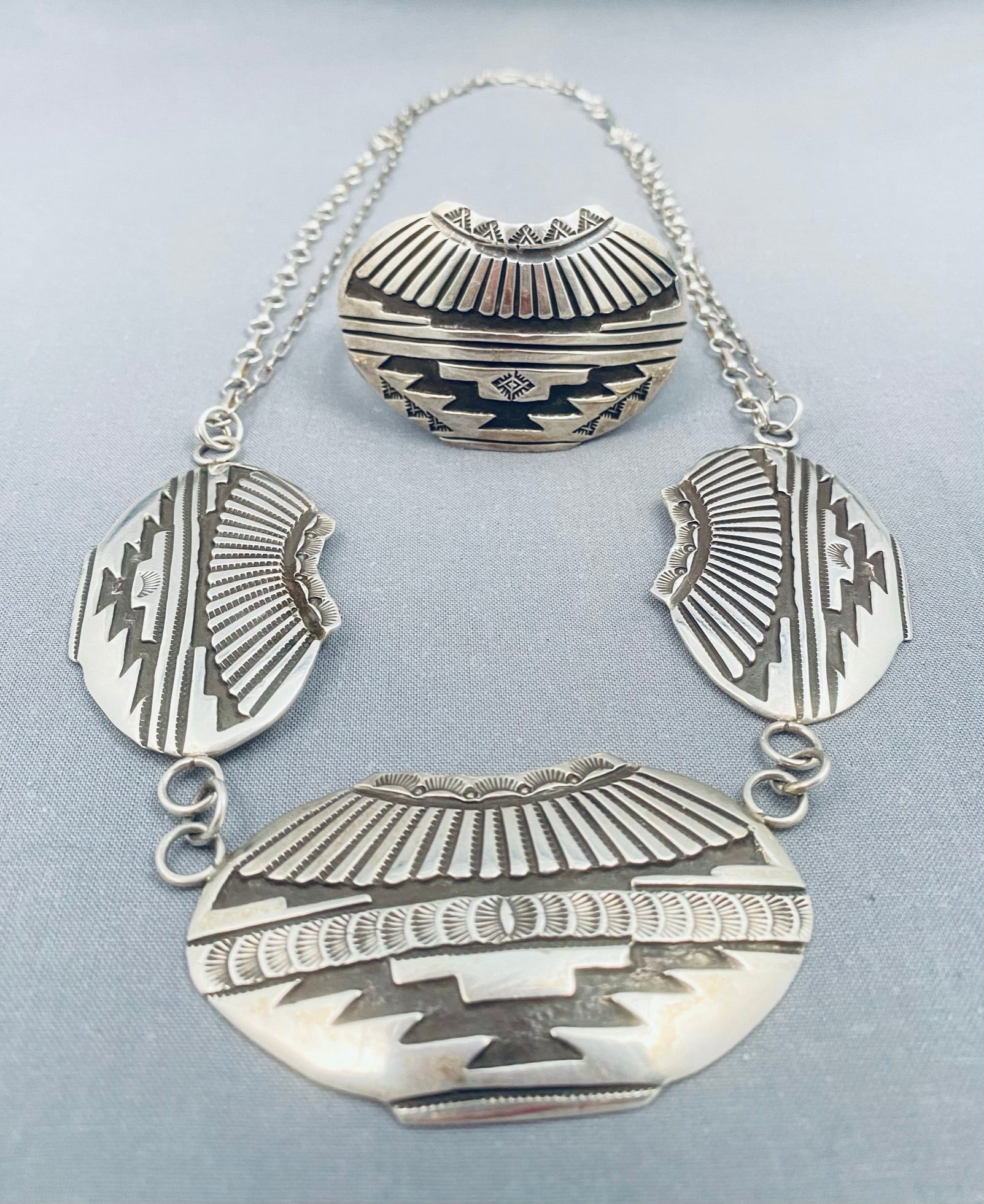 Very Unique Vintage Native American Navajo Basket Sterling Silver Necklace Bracelet Set