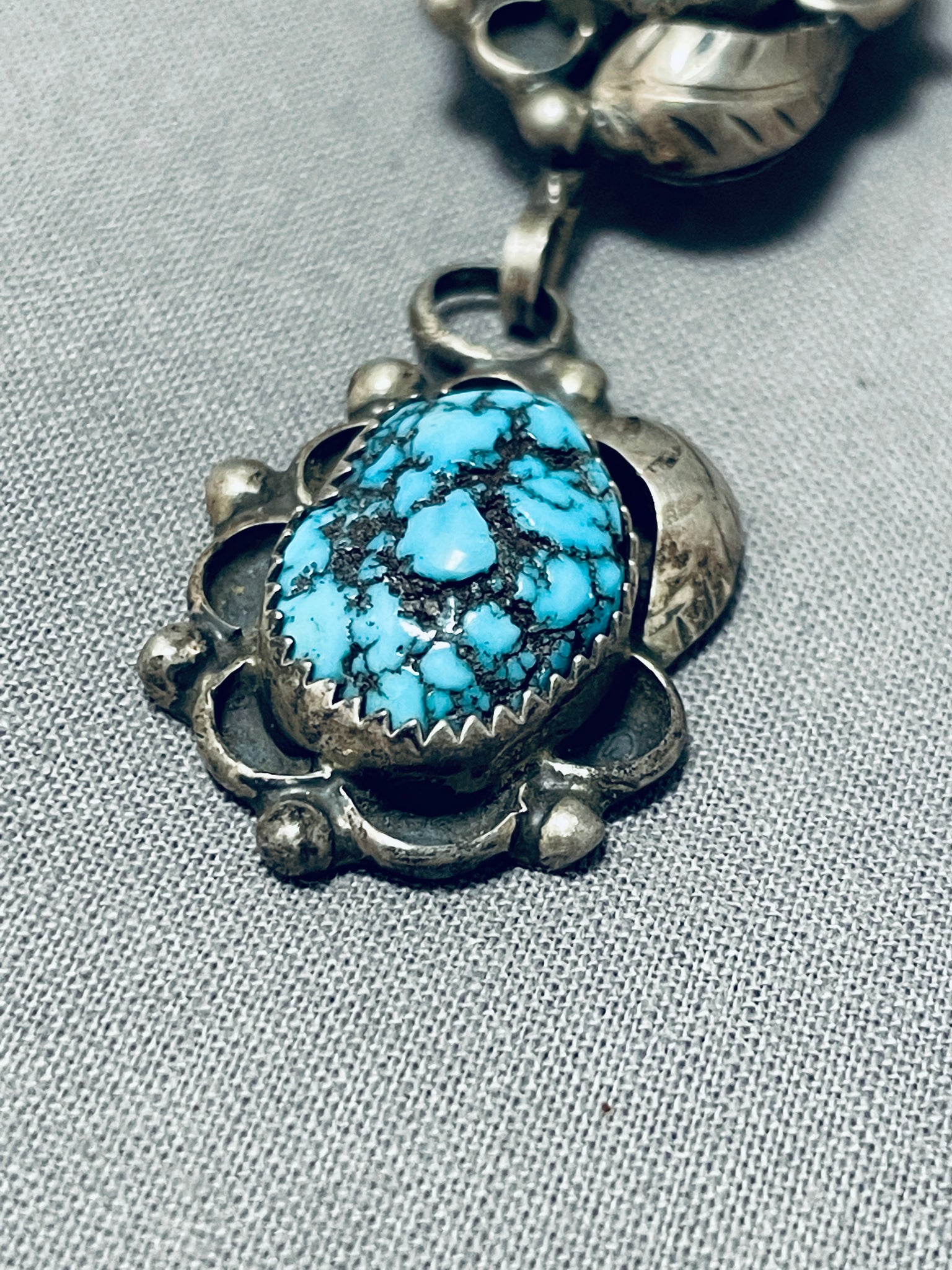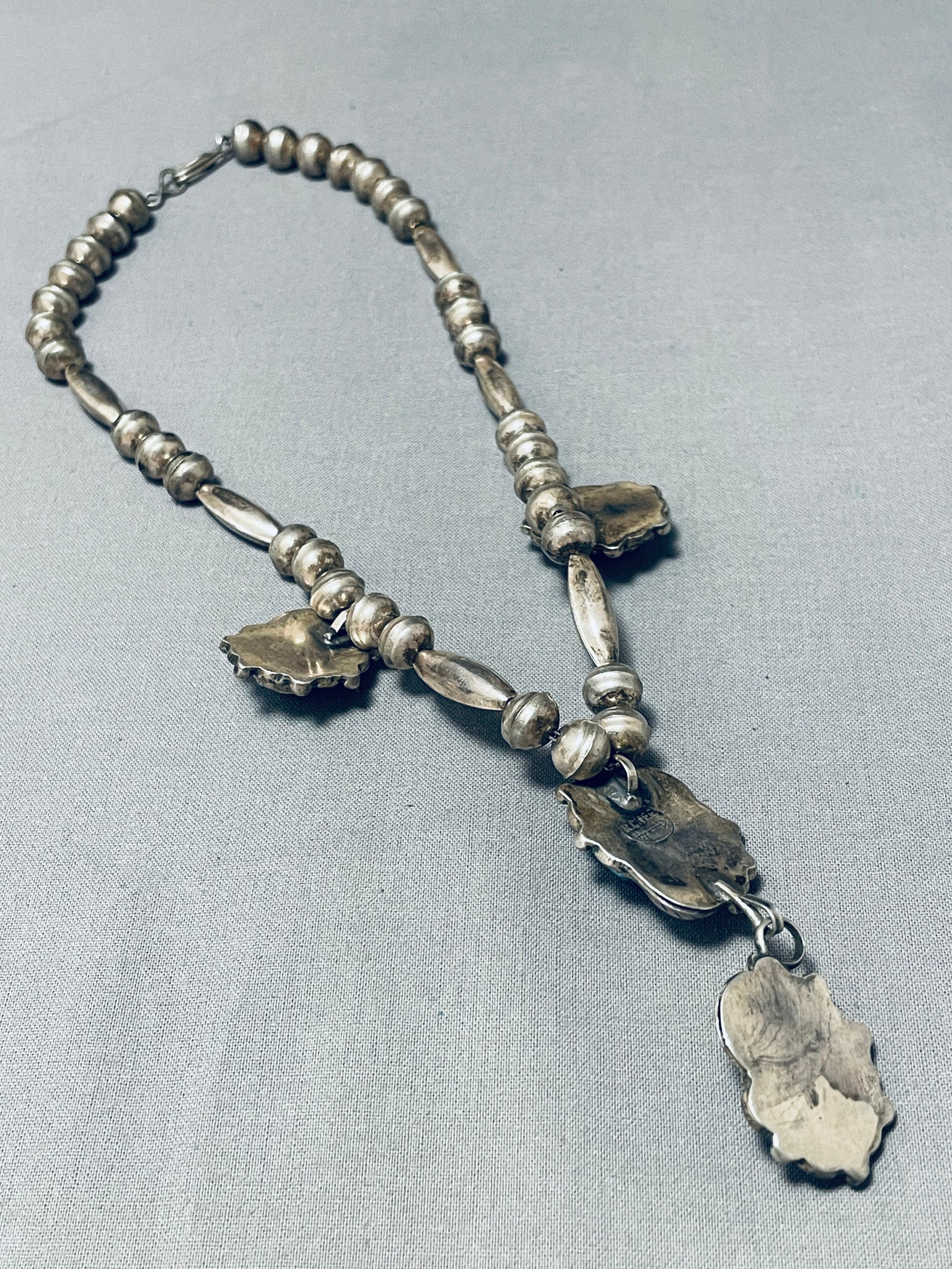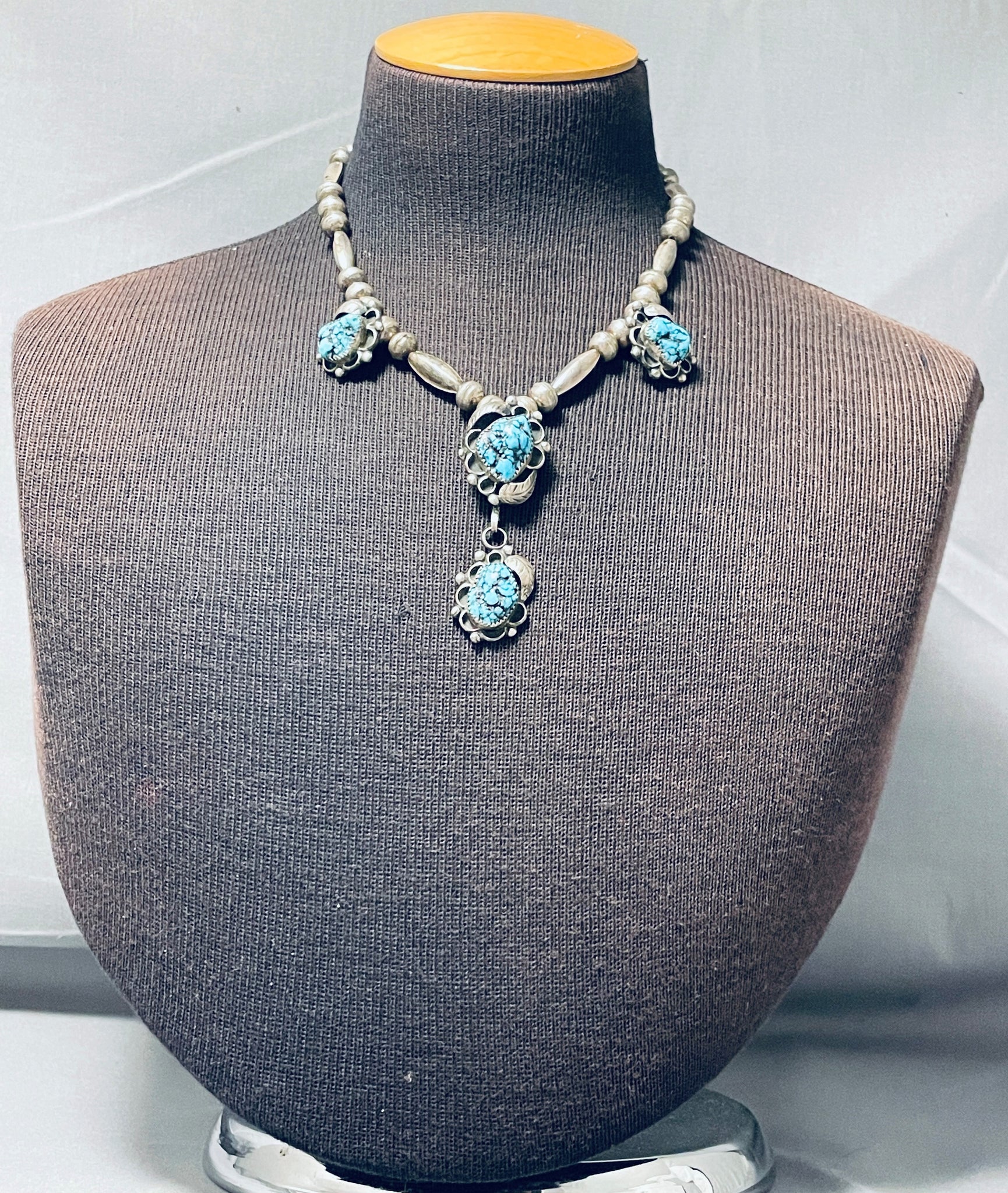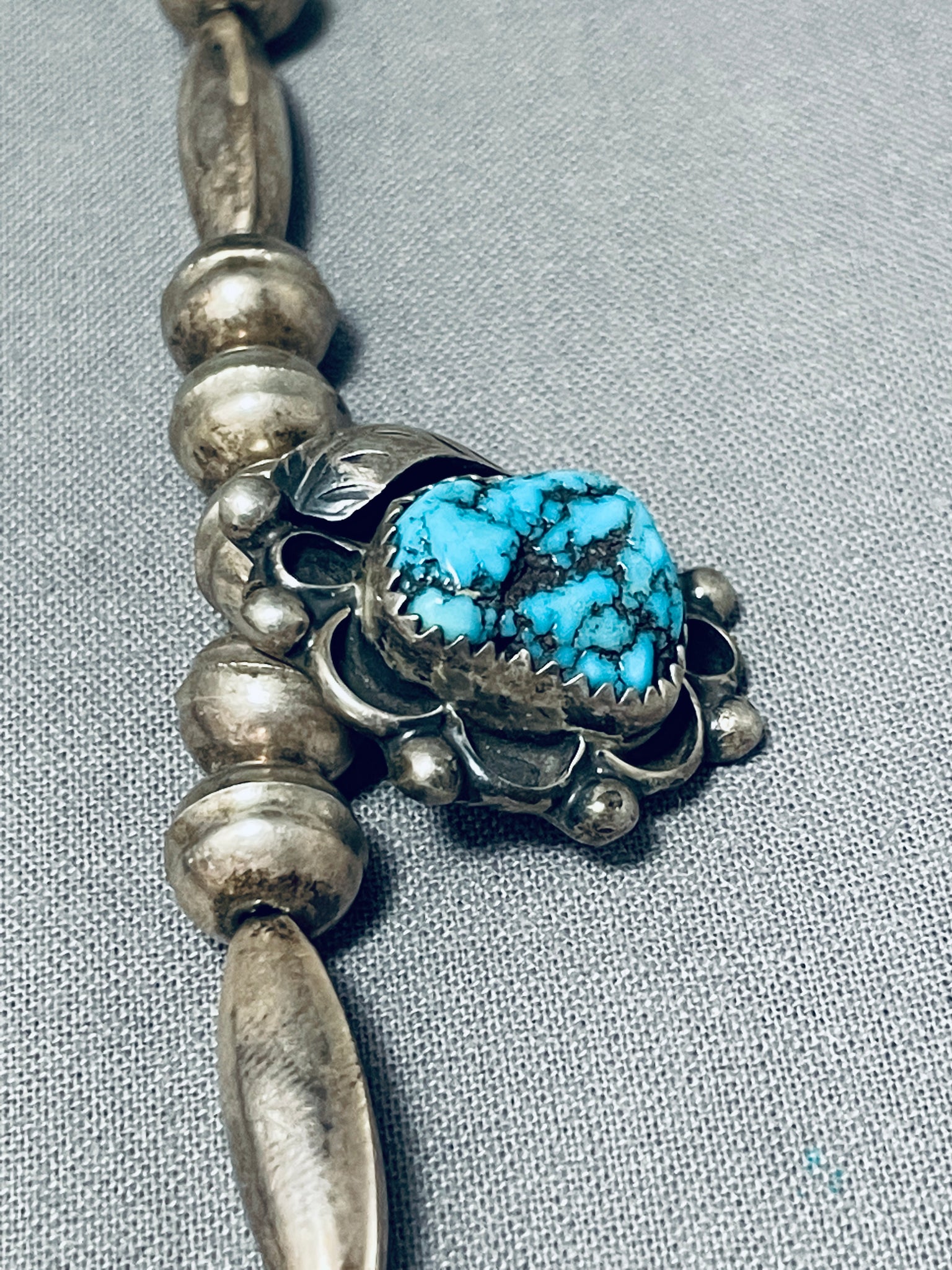 Very Unique Vintage Native American Navajo Turquoise Sterling Silver Tubule Necklace Old