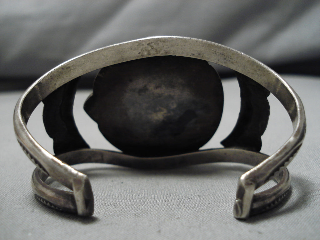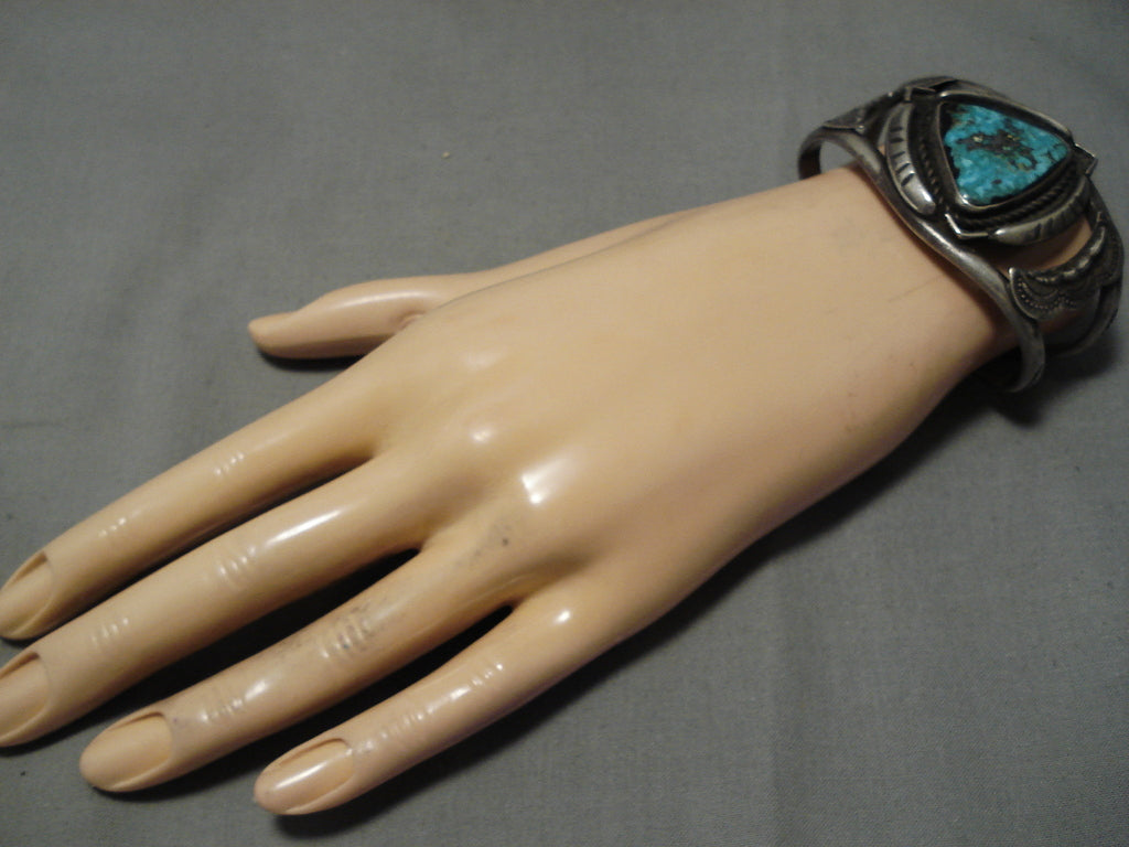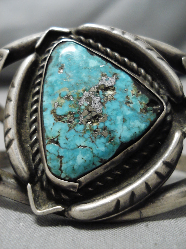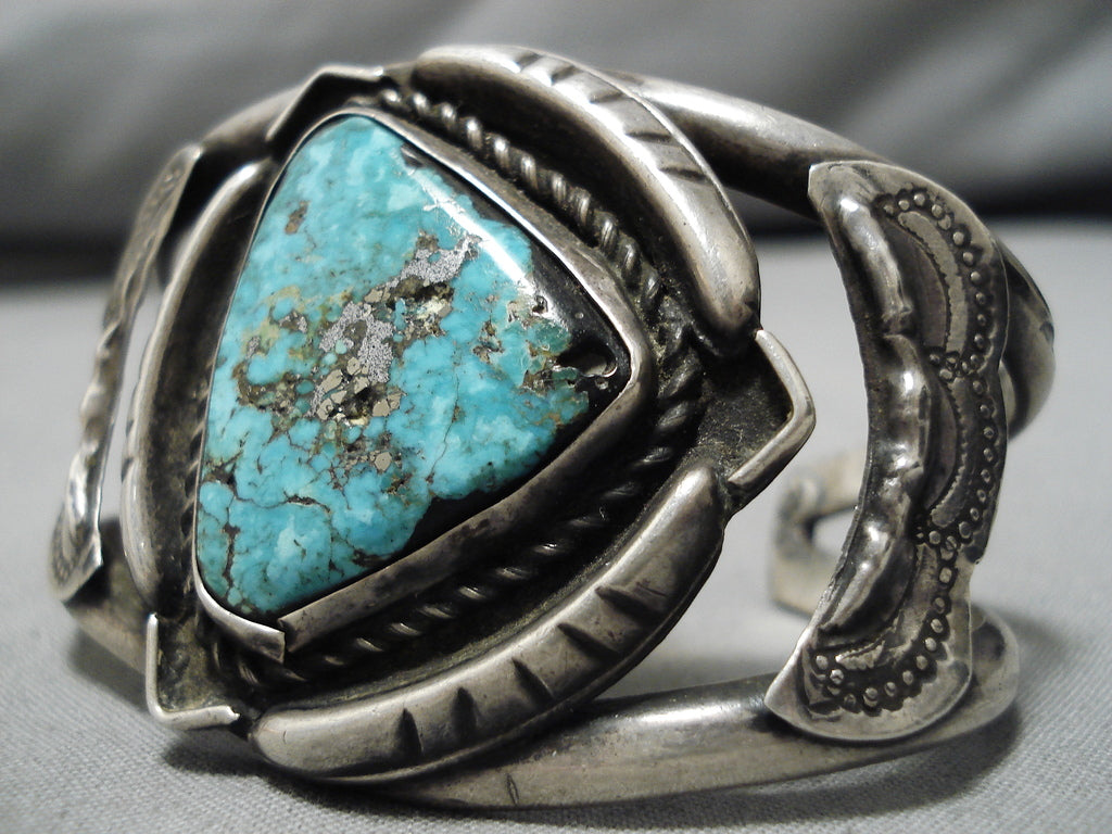 Vintage Native American Navajo Triangular Spiderweb Turquoise Sterling Silver Bracelet