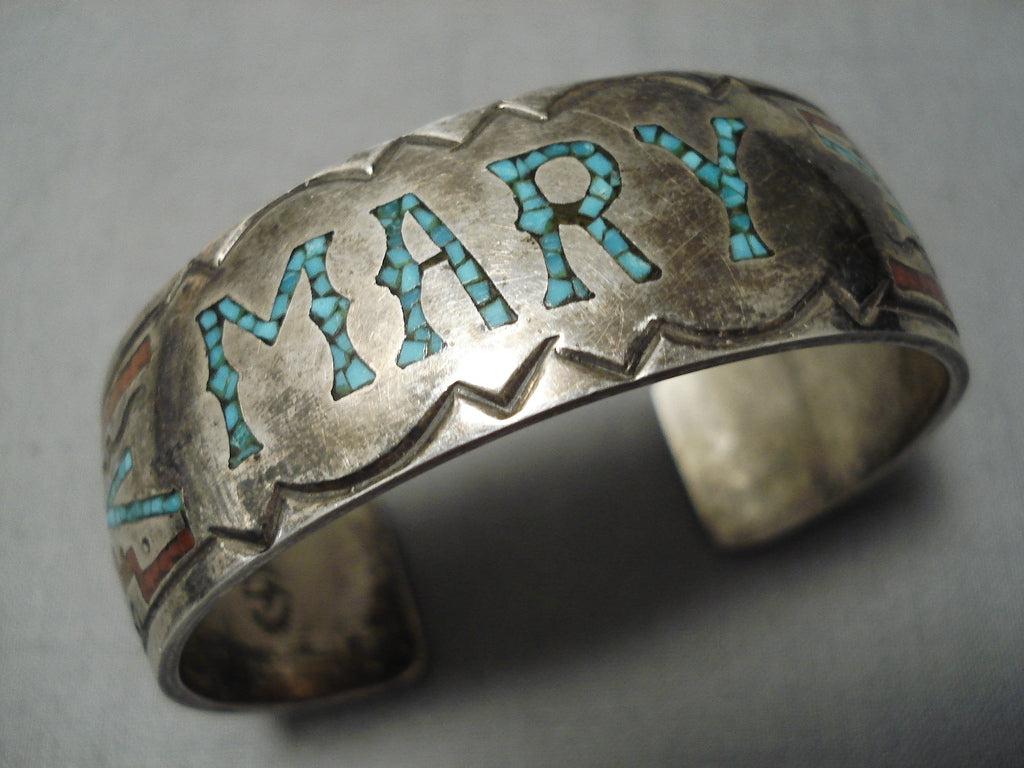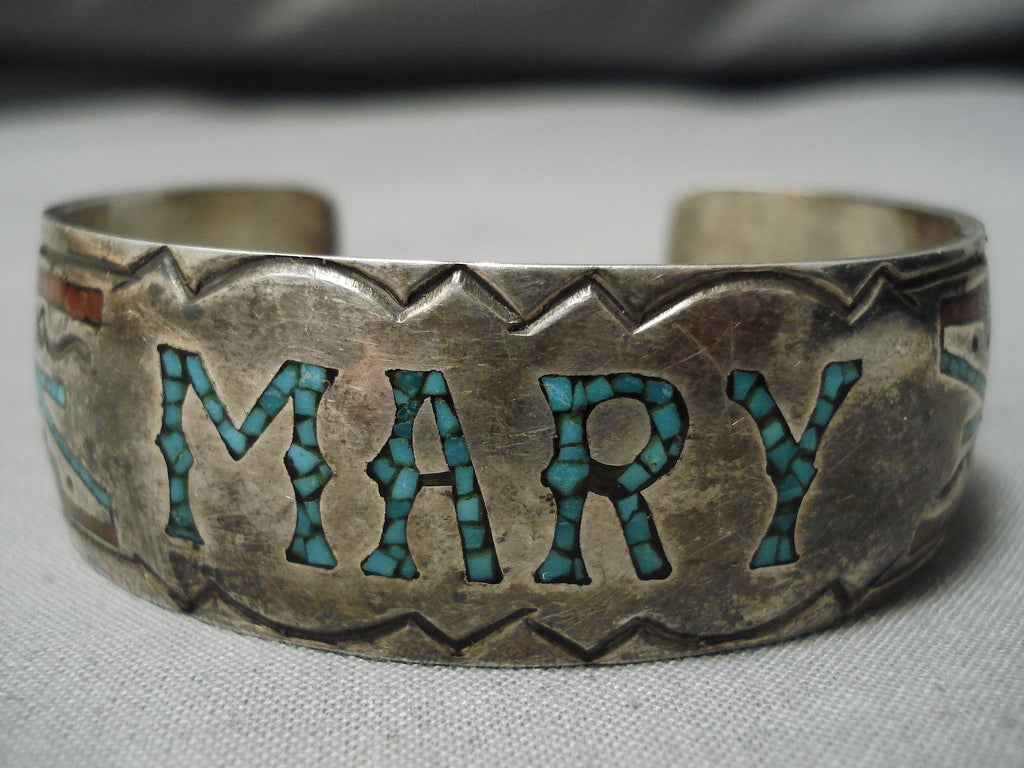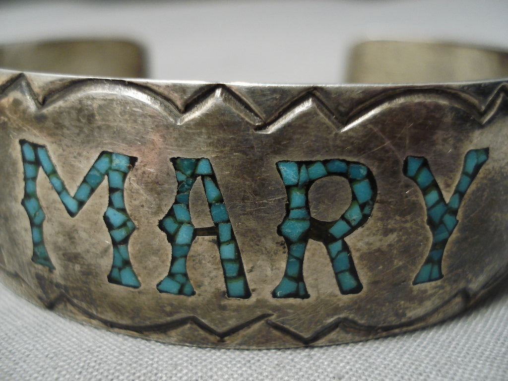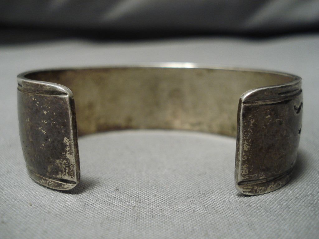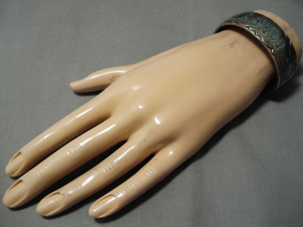 Vintage Native American Navajo Turquoise Inlay Sterling Silver Bracelet Cuff
