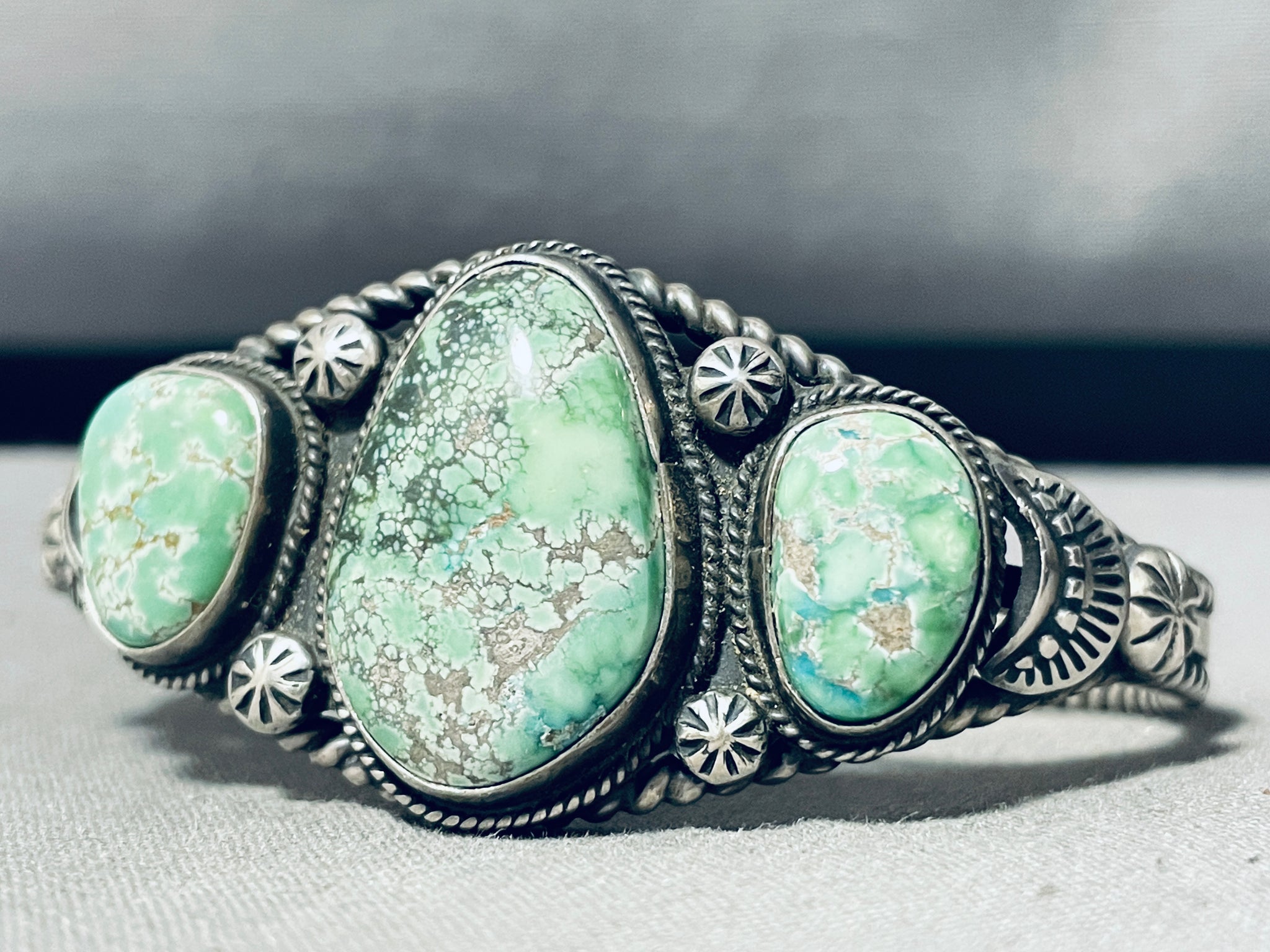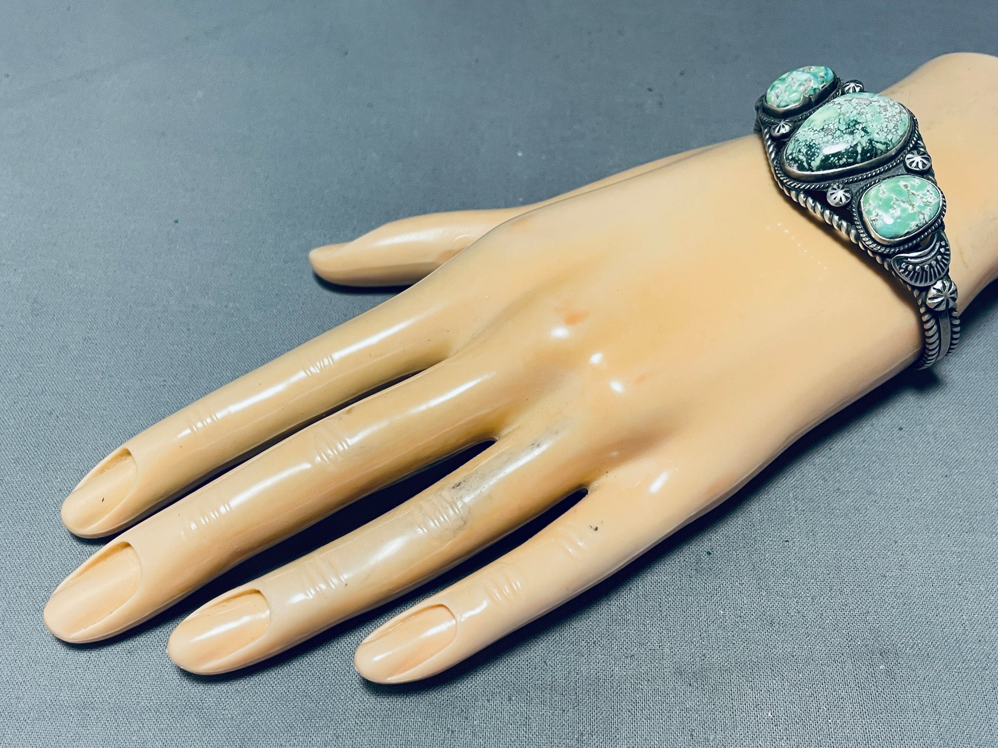Viv Barbone!! Vintage Native American Navajo Carico Lake Turquoise Sterling Silver Bracelet