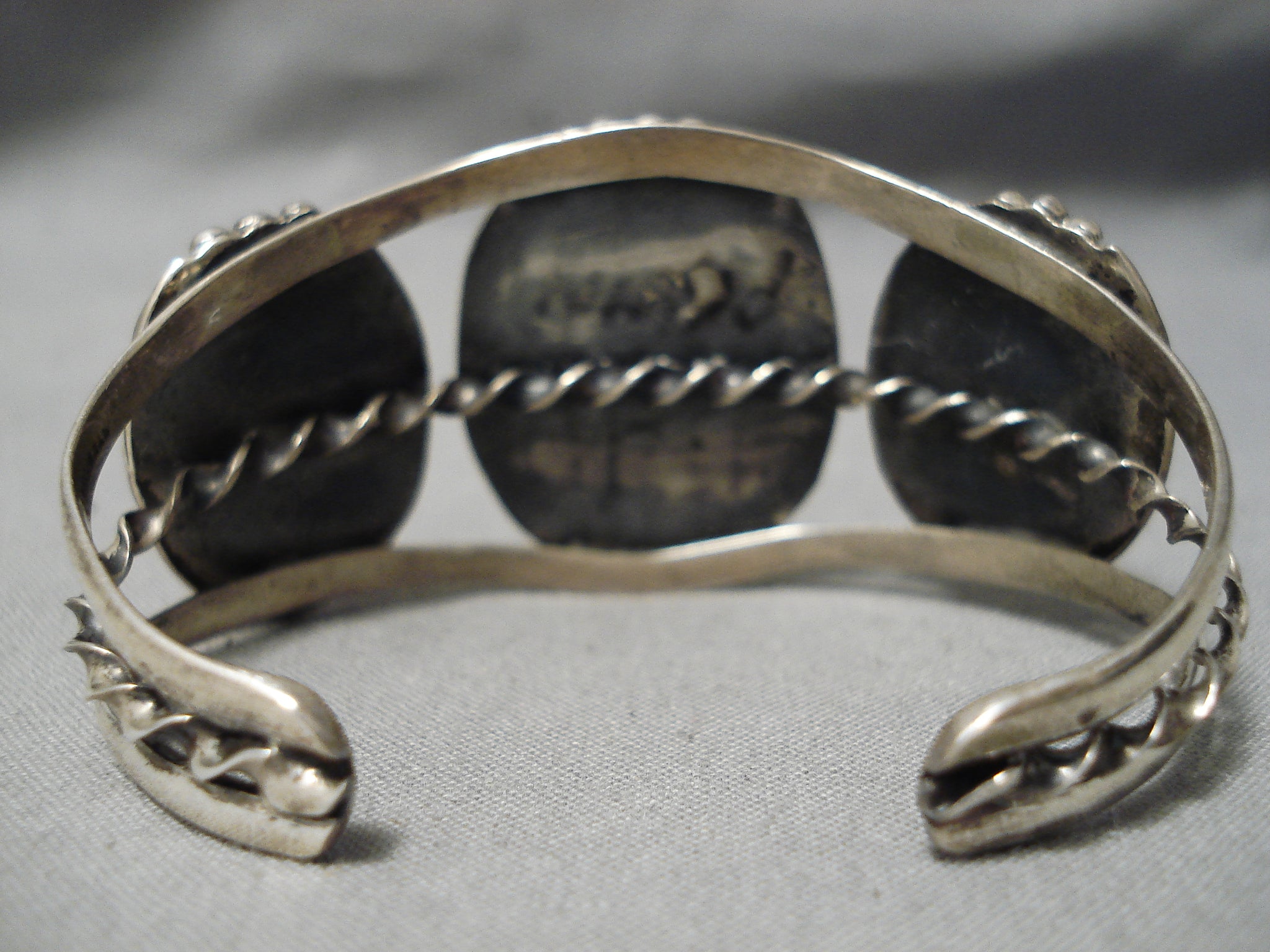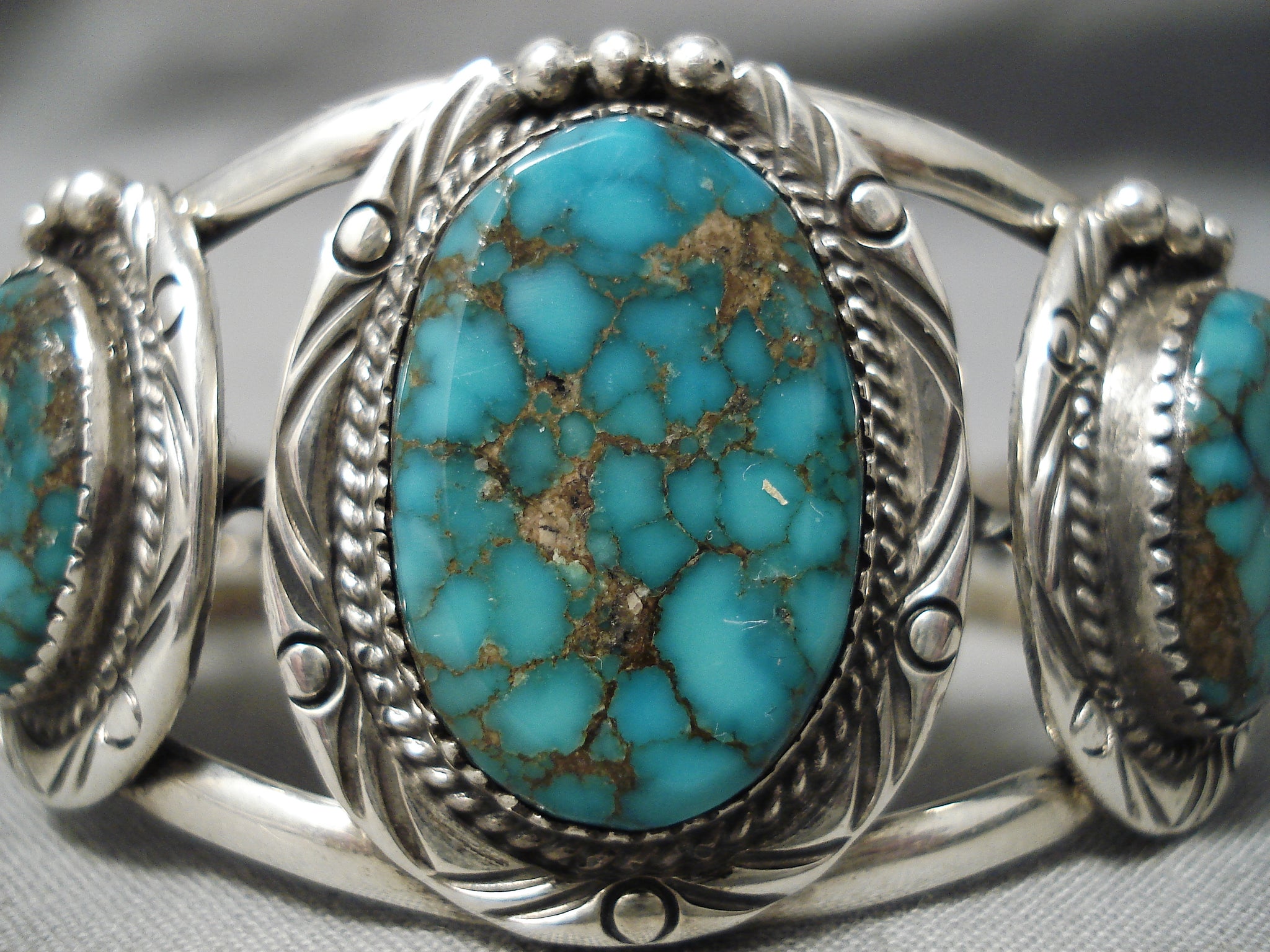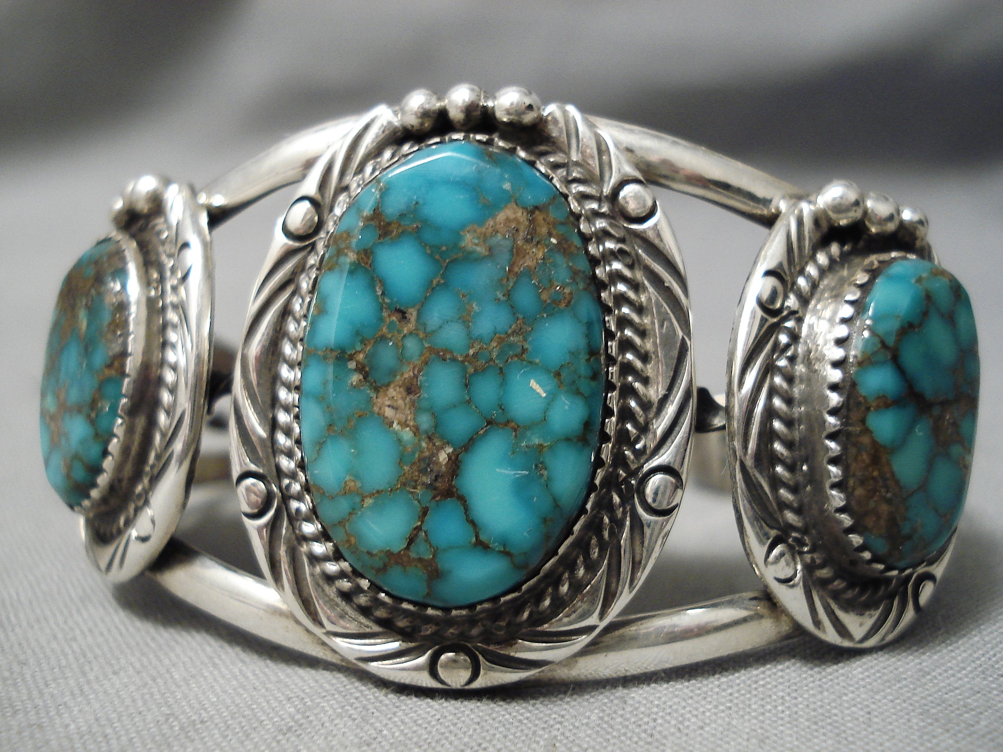 Vivid Blue Vintage Native American Navajo Spiderweb Turquoise Sterling Silver Bracelet