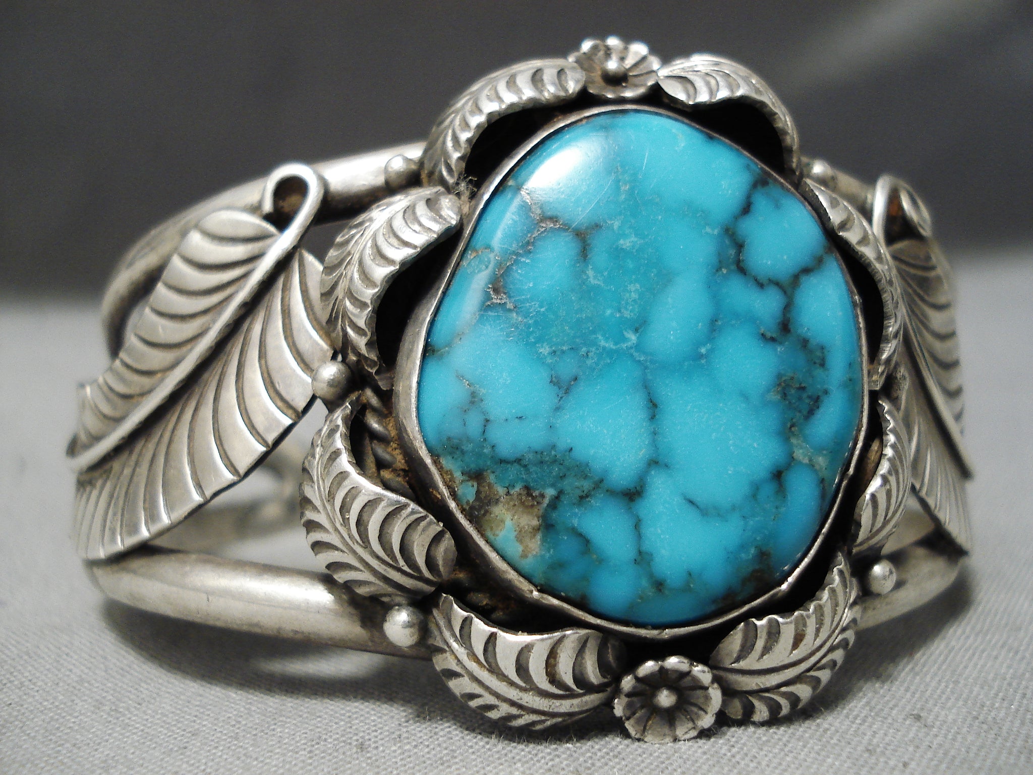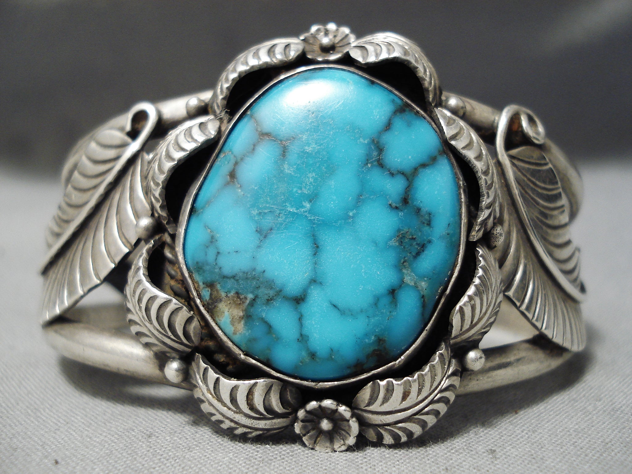 Vivid Blue Vintage Native American Navajo Sterling Silver Leaf Bracelet Old