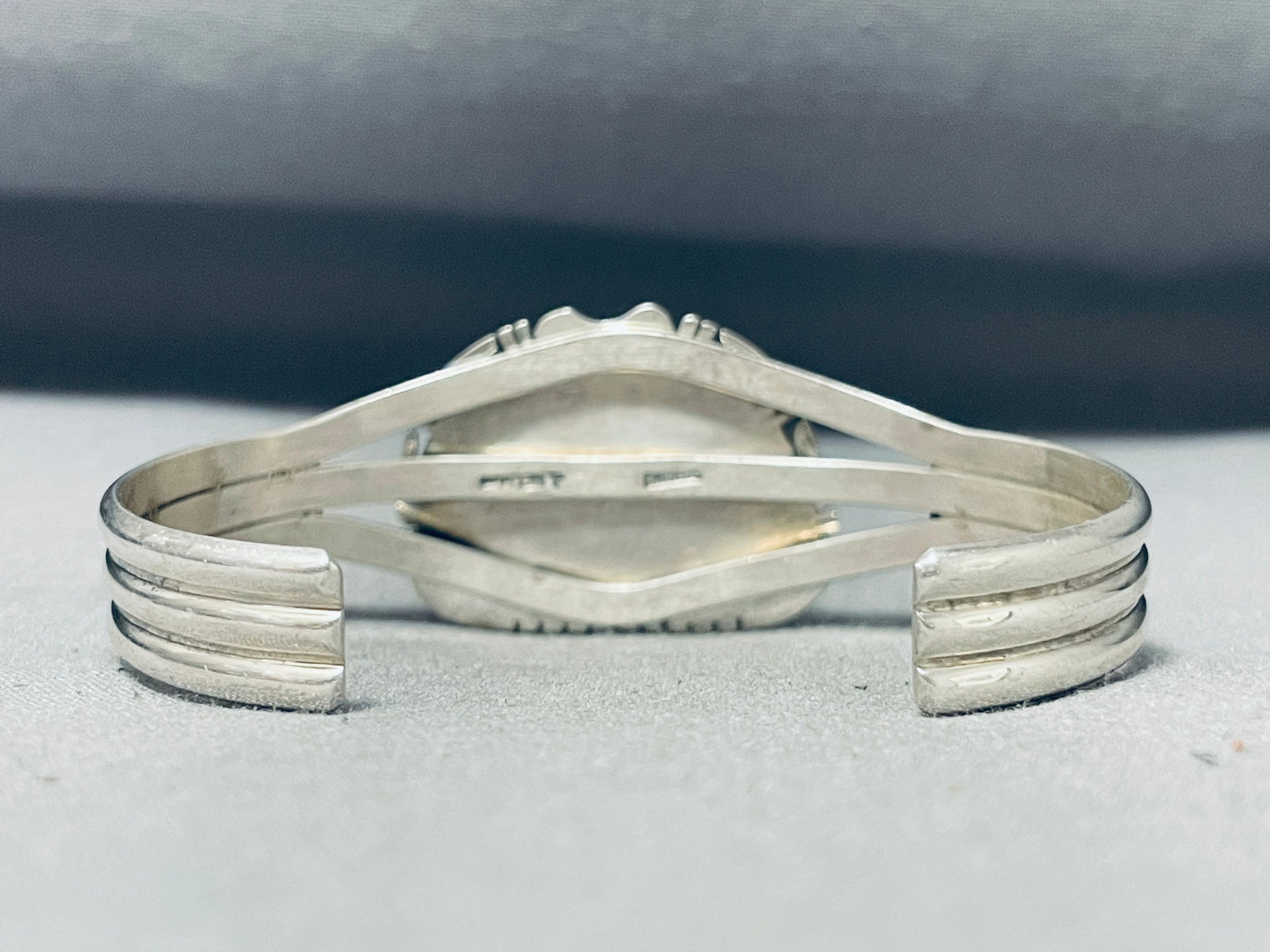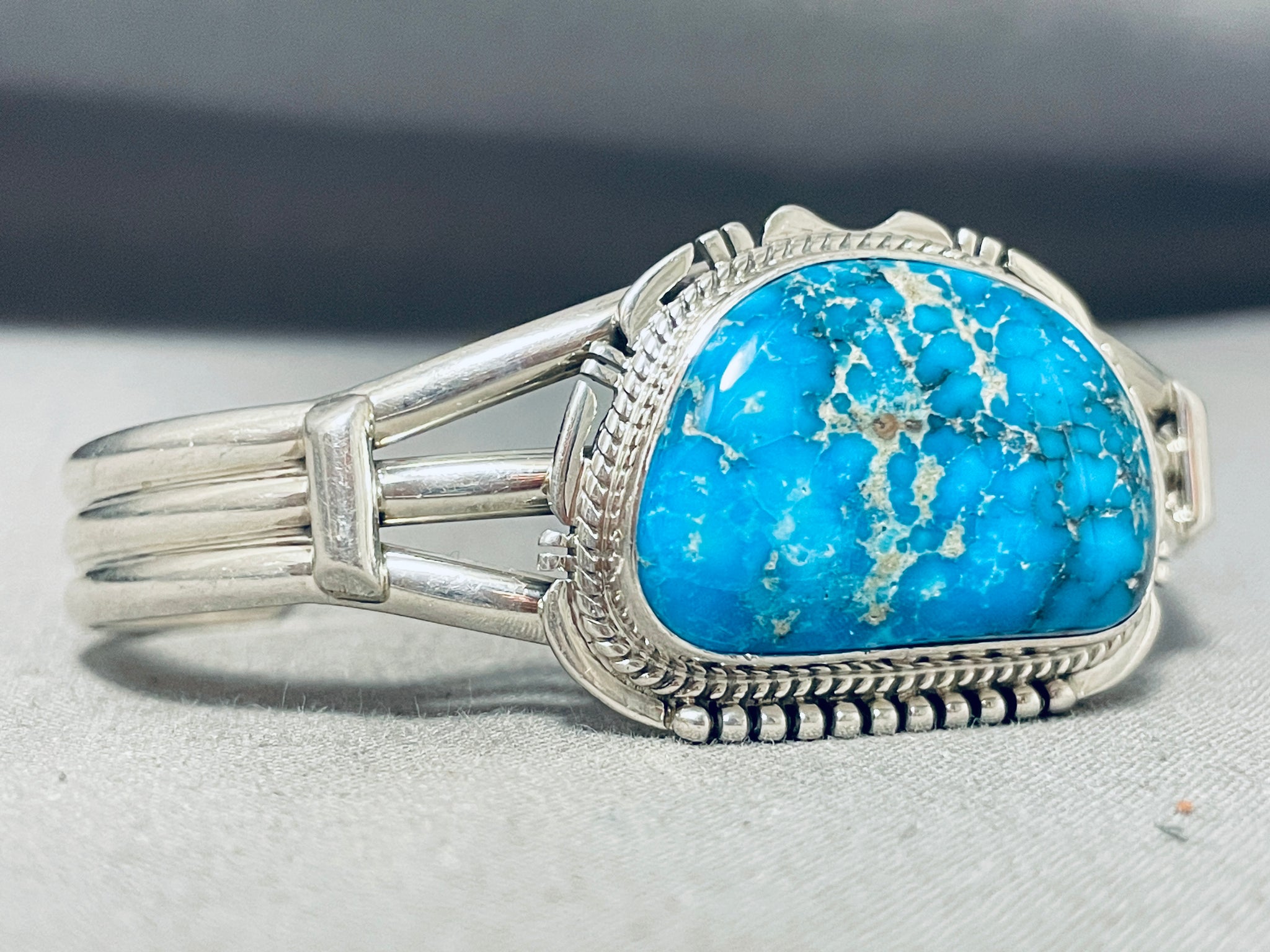 Vivid Native American Navajo Intense Turquoise Sterling Silver Bracelet Signed