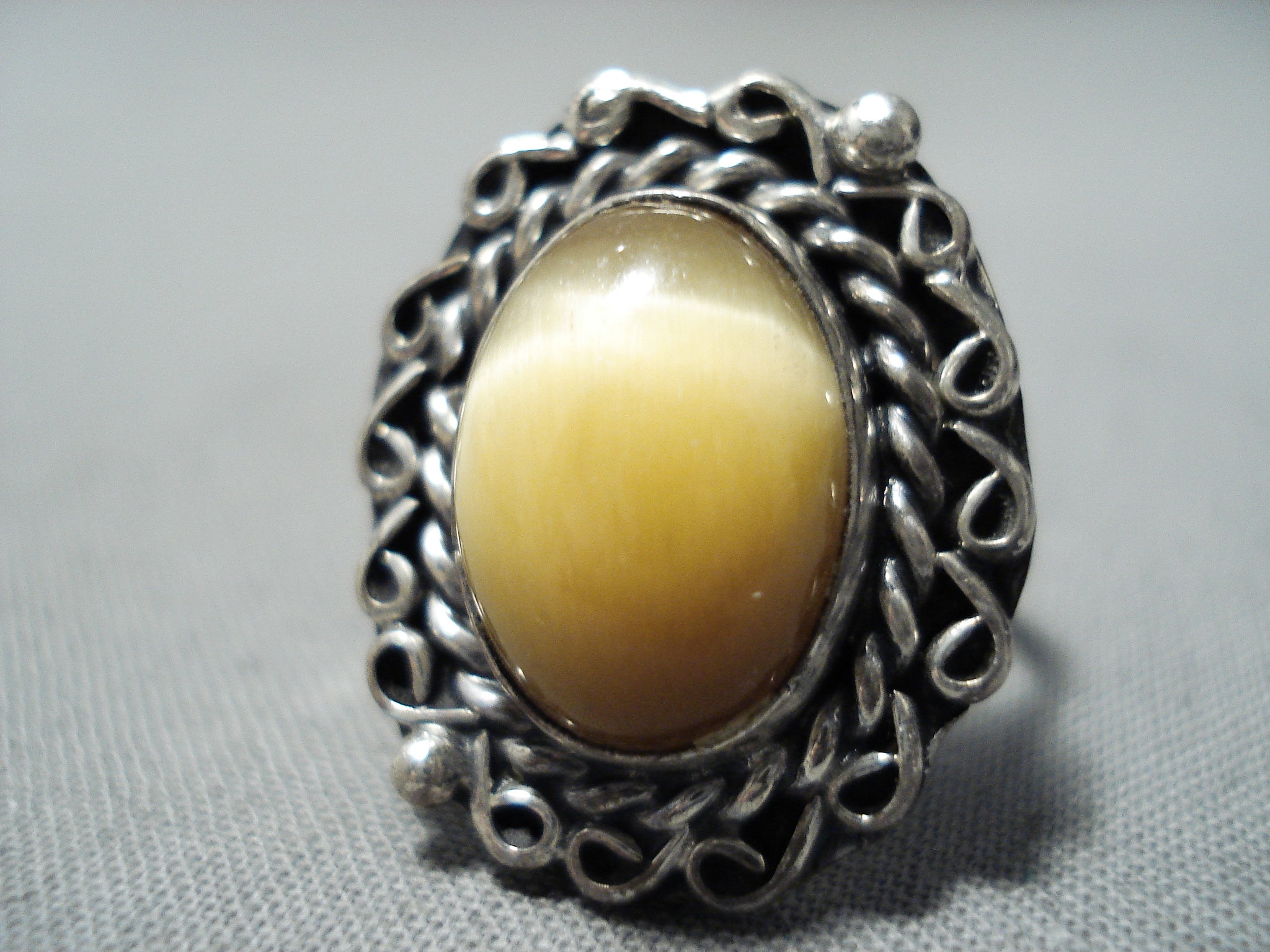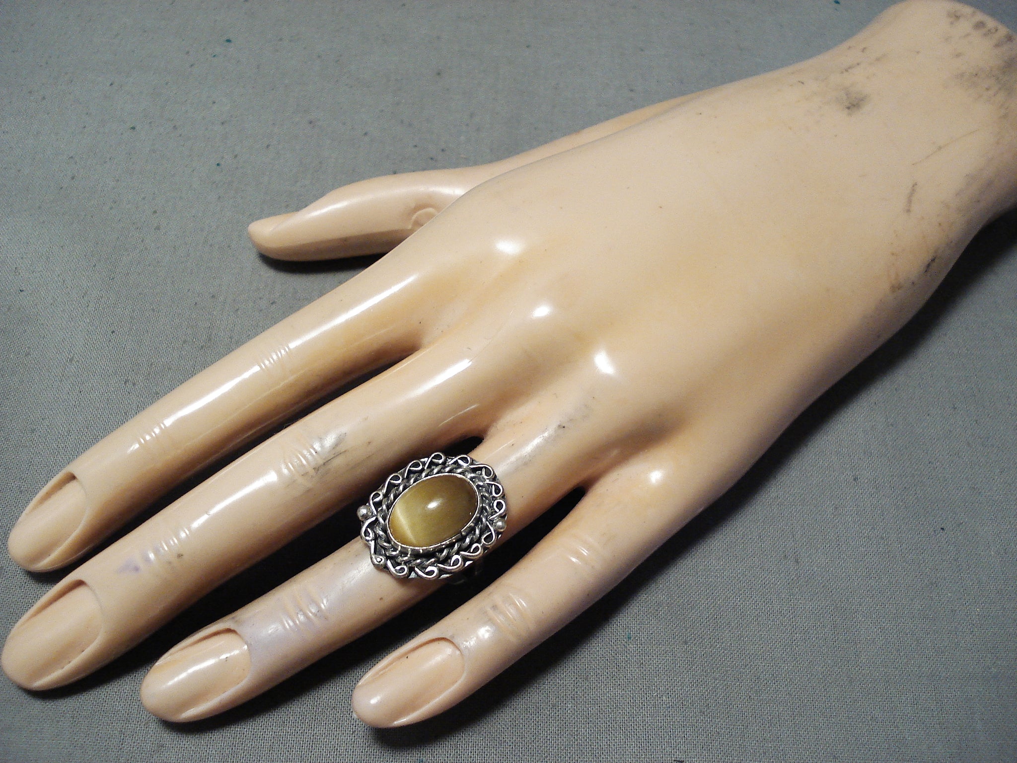 Vivid Vintage Navajo Tigers Eye Sterling Silver Ring Native American Old