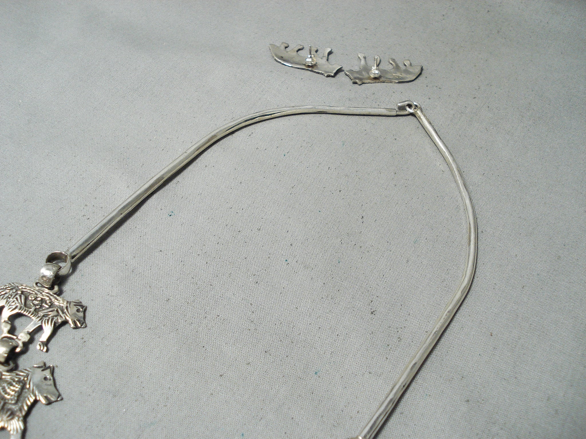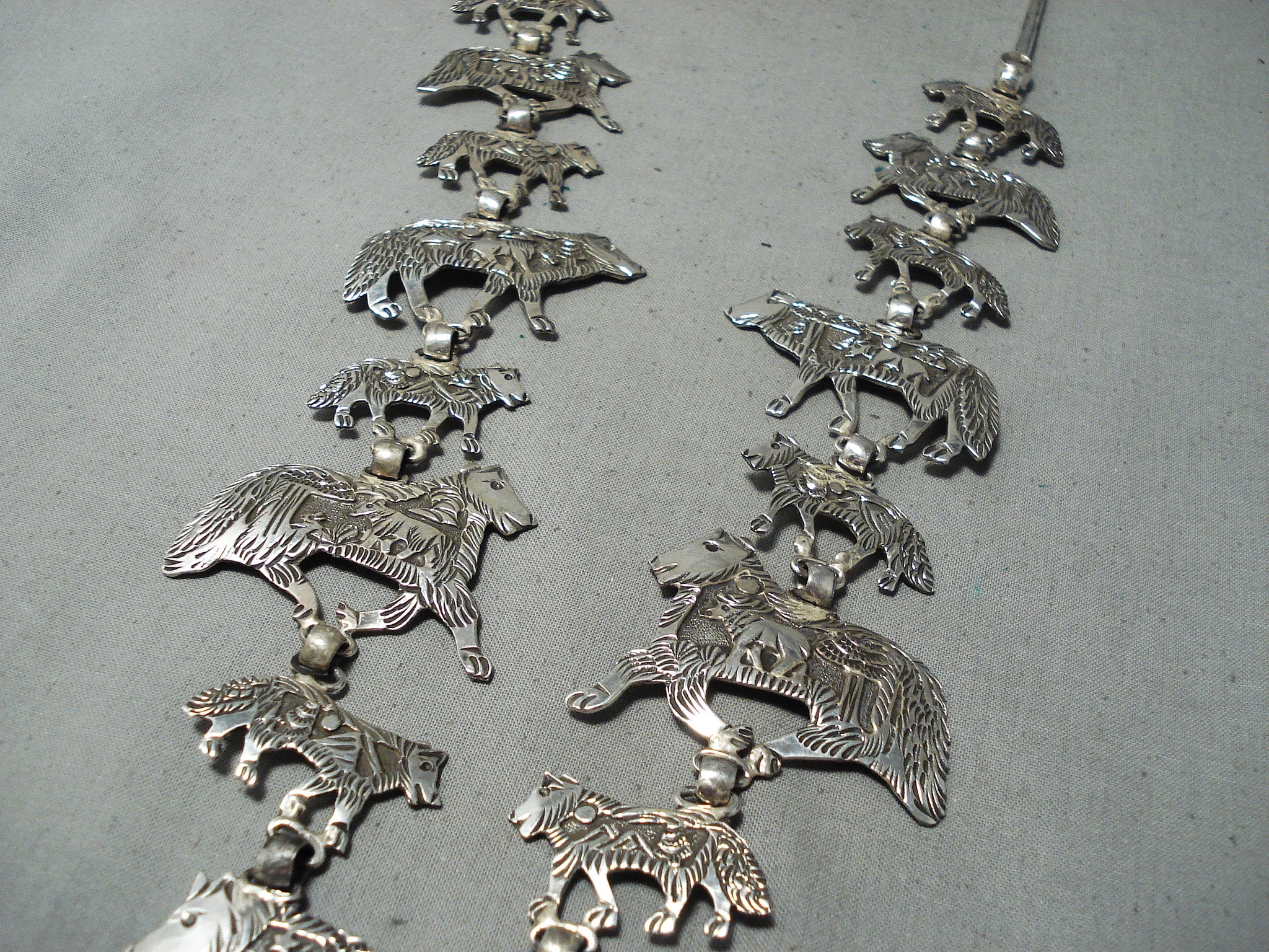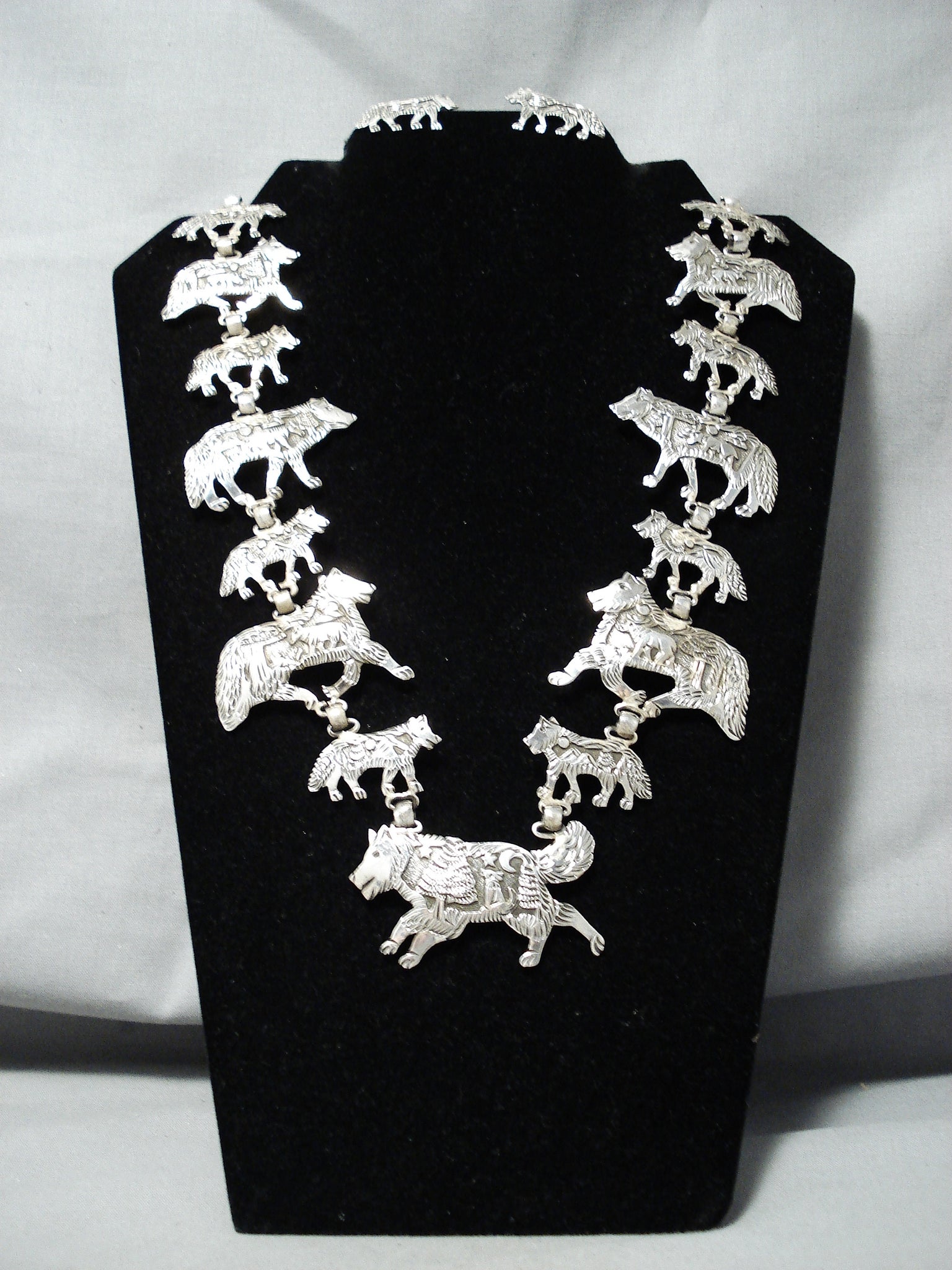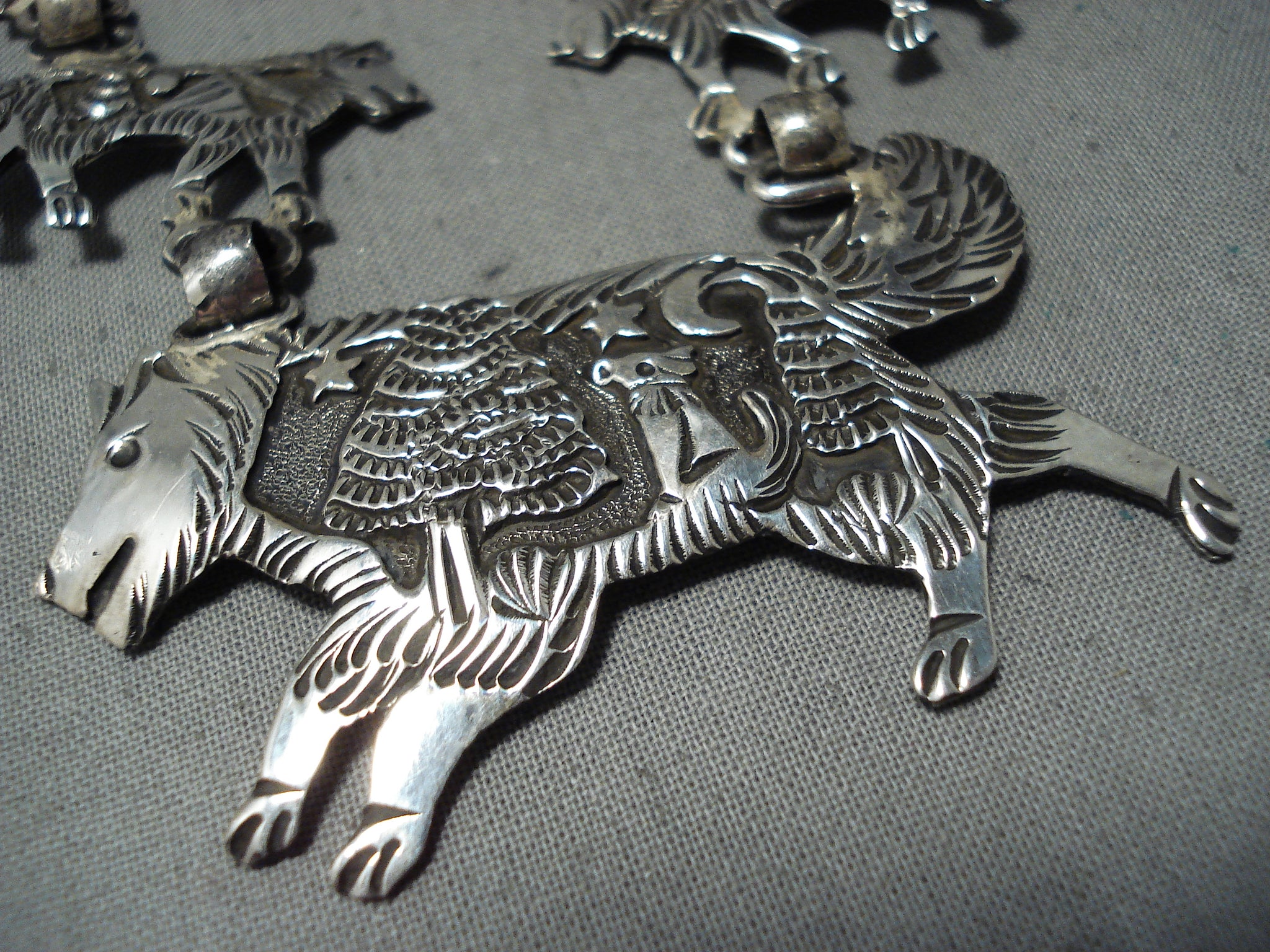 Warewolf Vintage Native American Navajo Sterling Silver Squash Blossom Necklace