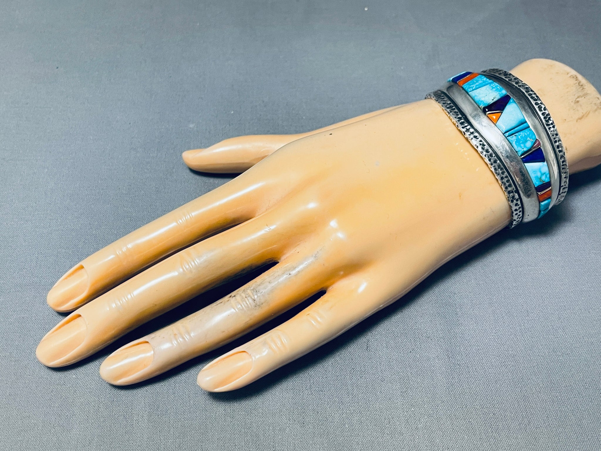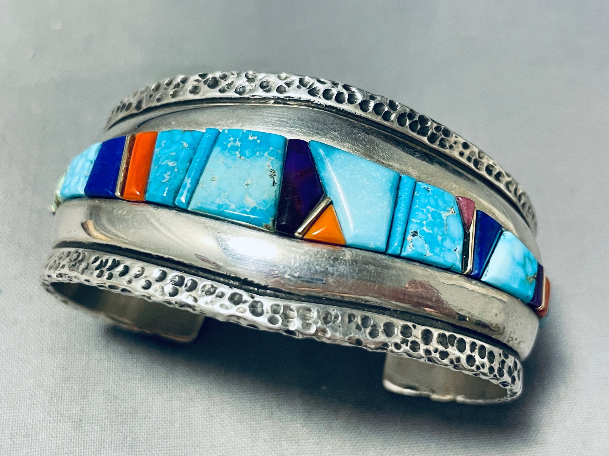 Wes Willie Award Winning Vintage Native American Navajo Inlay Gold Sterling Silver Bracelet