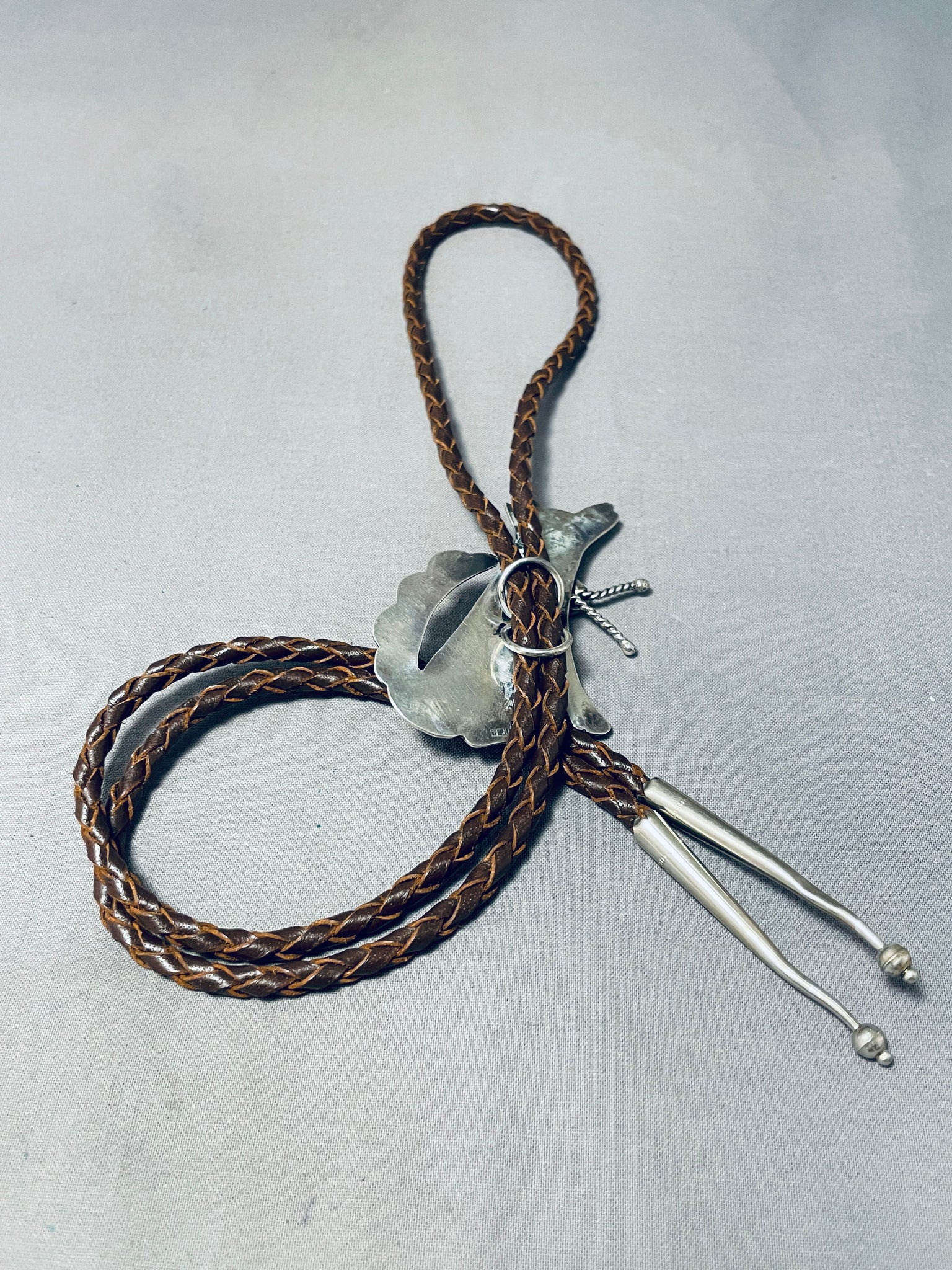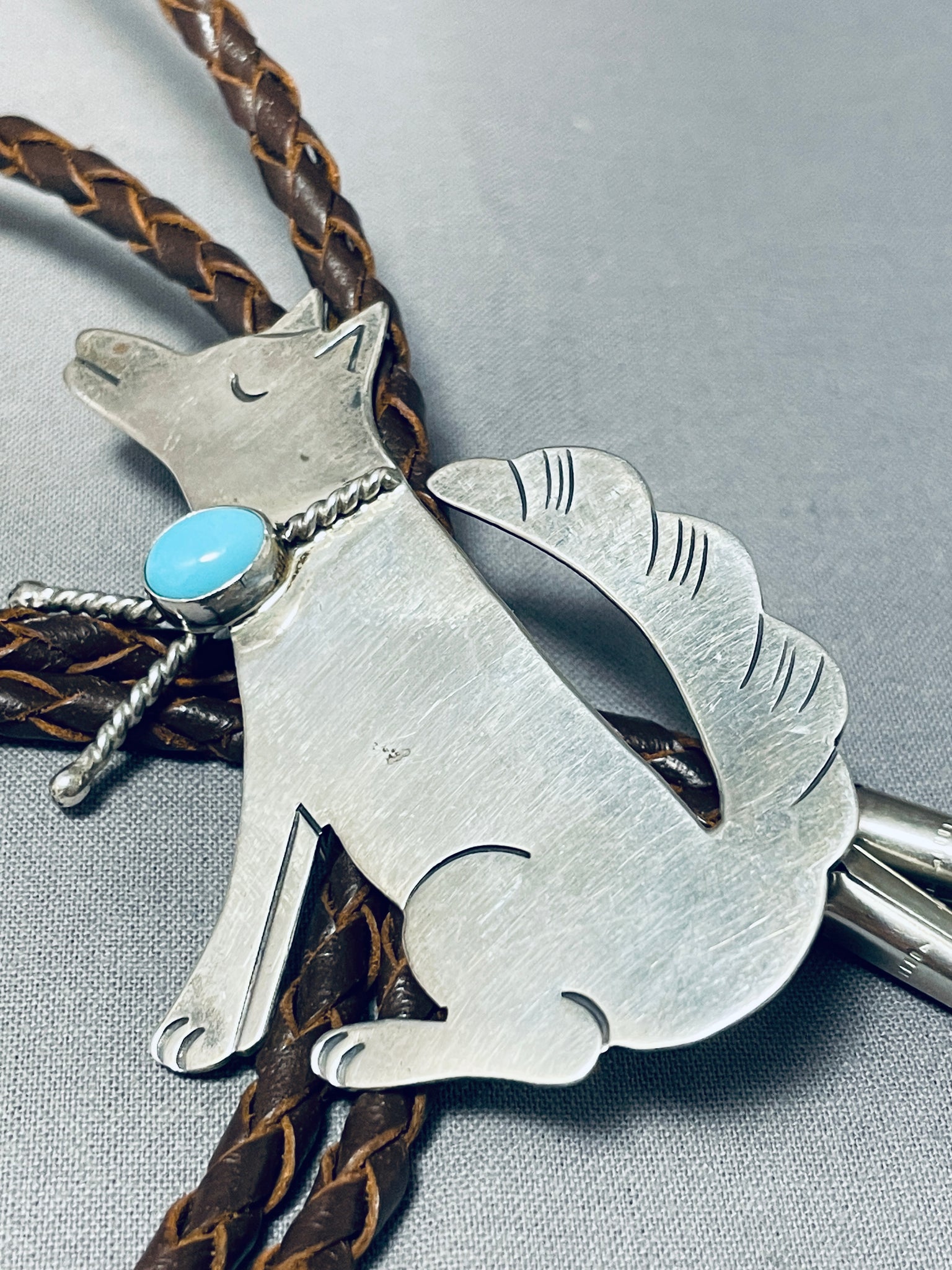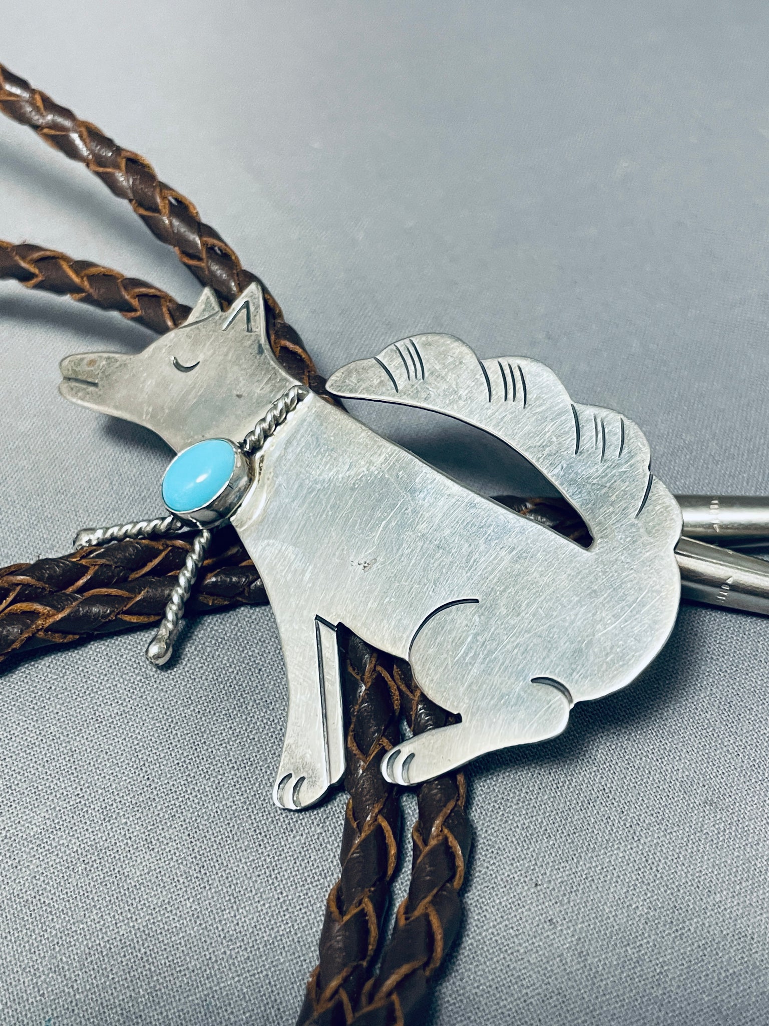 Whimsical Native American Navajo Sleeping Beauty Turquoise Sterling Silver Coyote Bolo