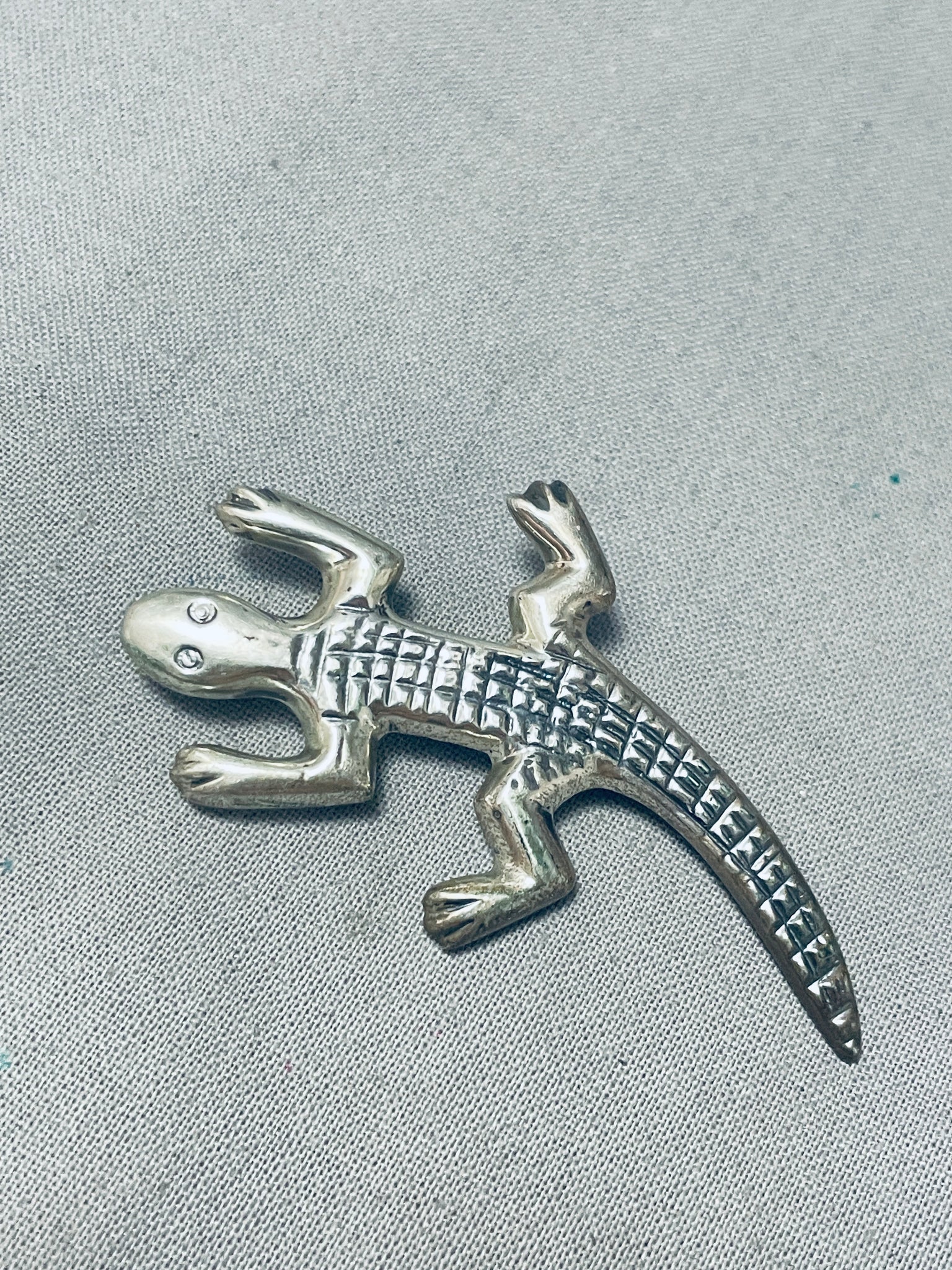 Whimsical Native American Navajo Sterling Silver Gecko Pin