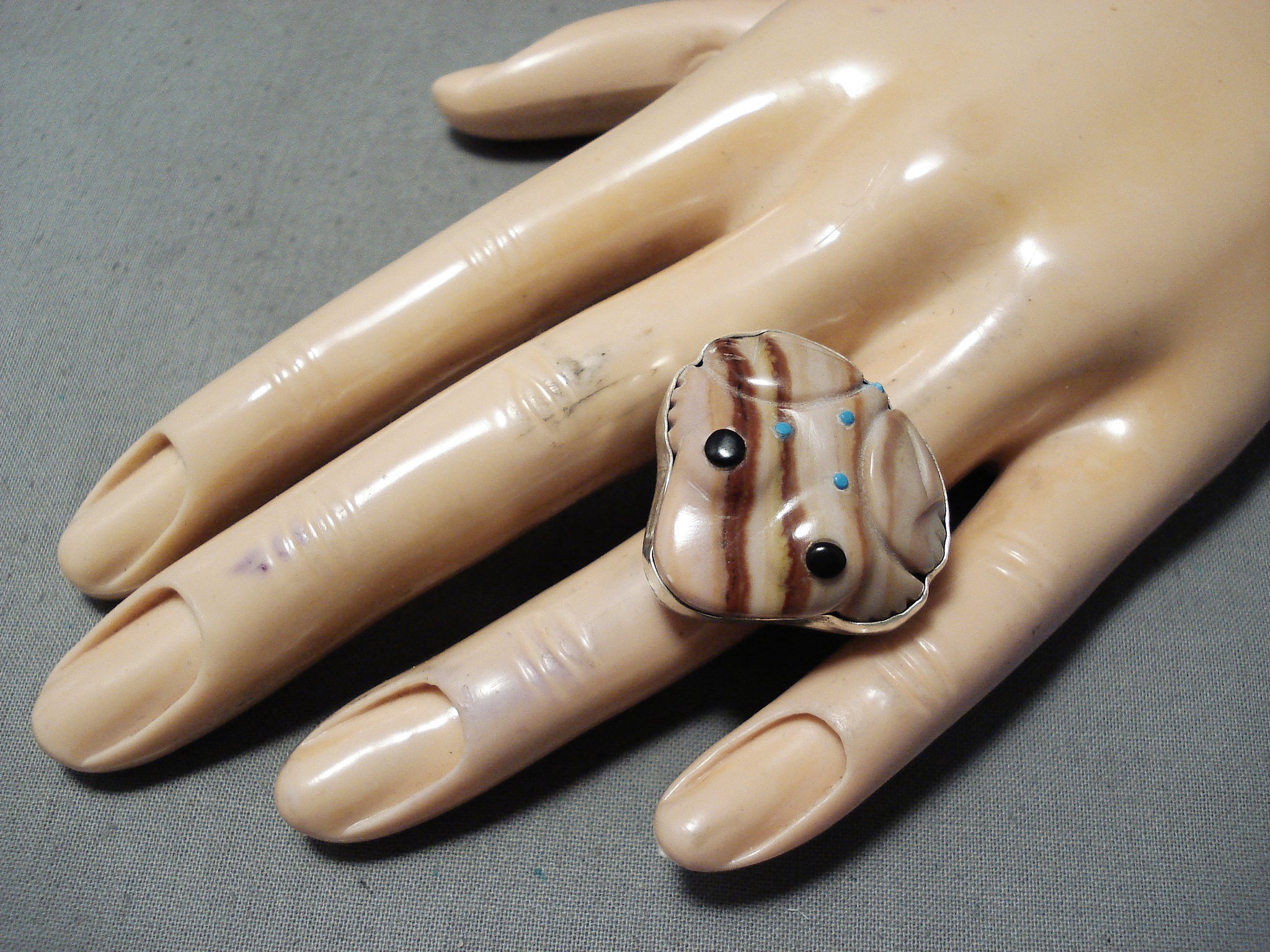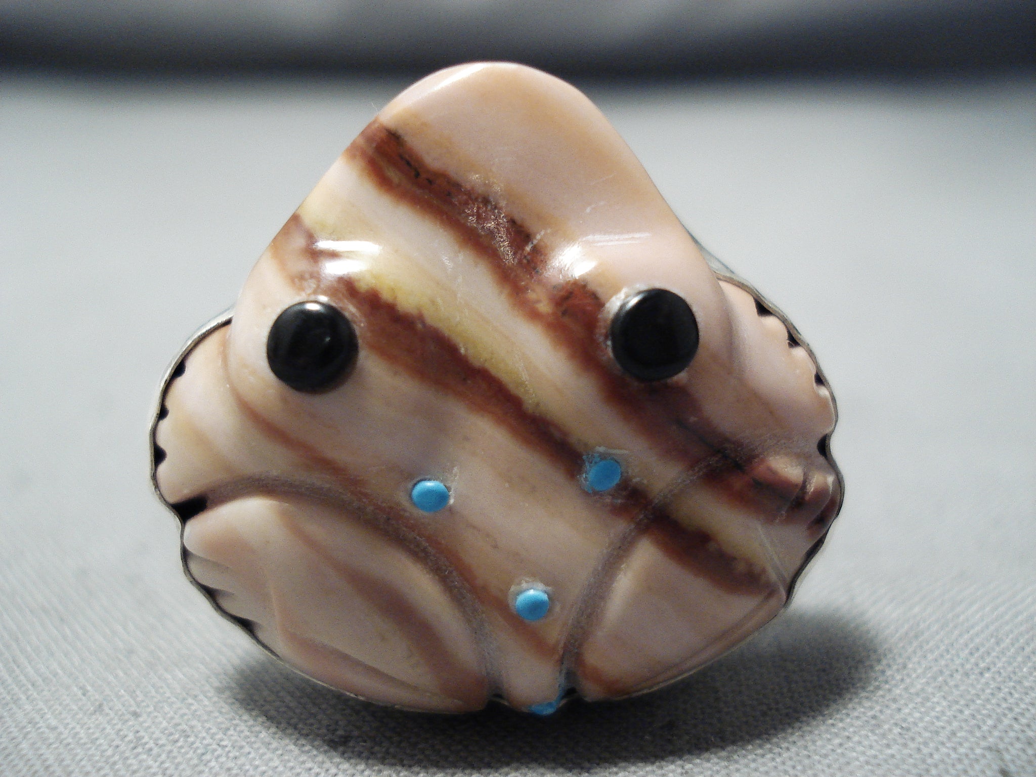 Whimsical Navajo Shell Frog Sterling Silver Ring Native American