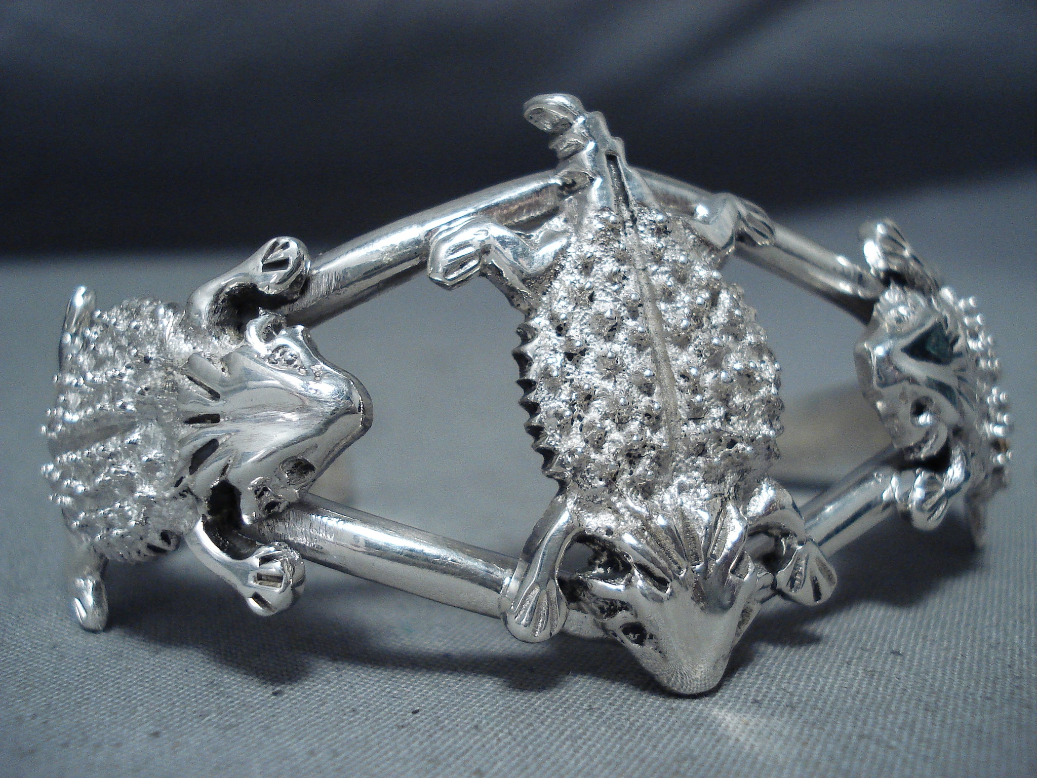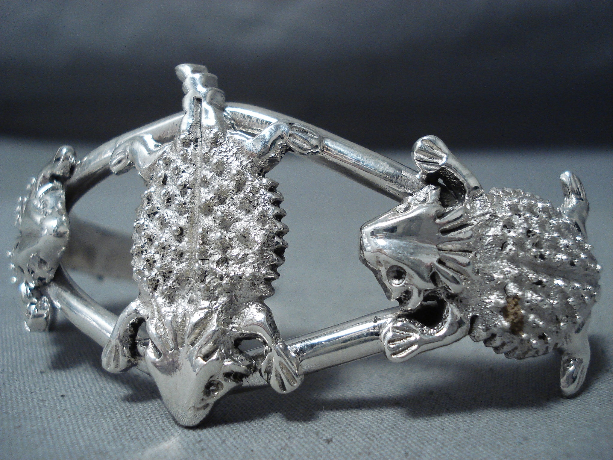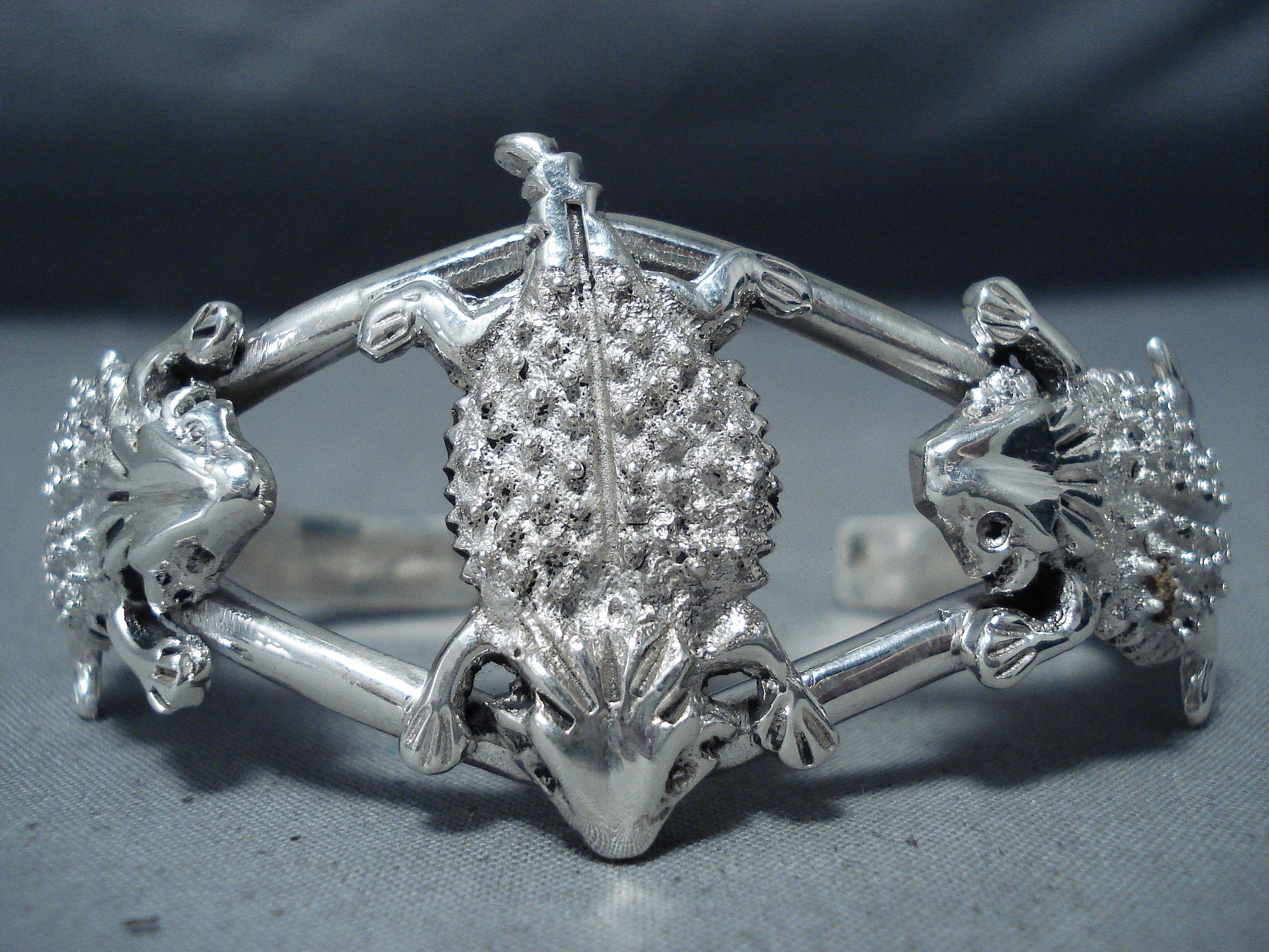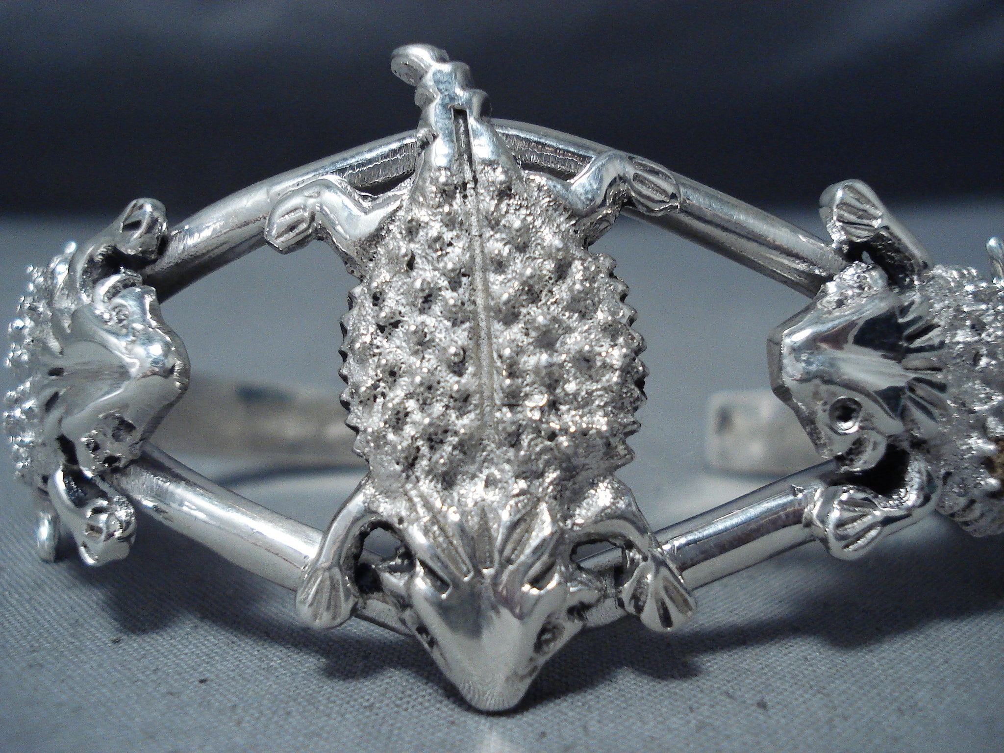 Whimsical Navajo Sterling Silver Southwestern Toad Bracelet Native American
