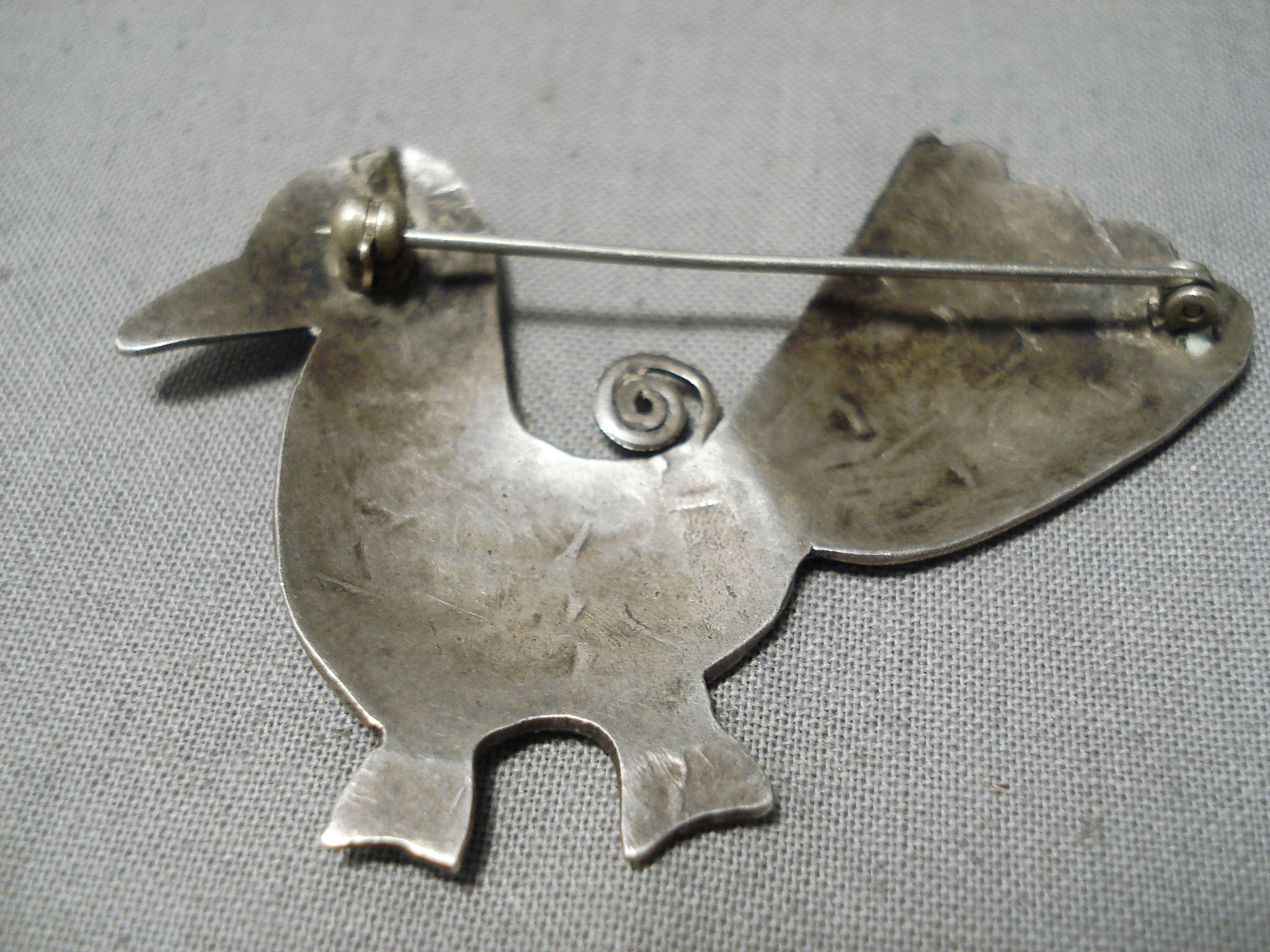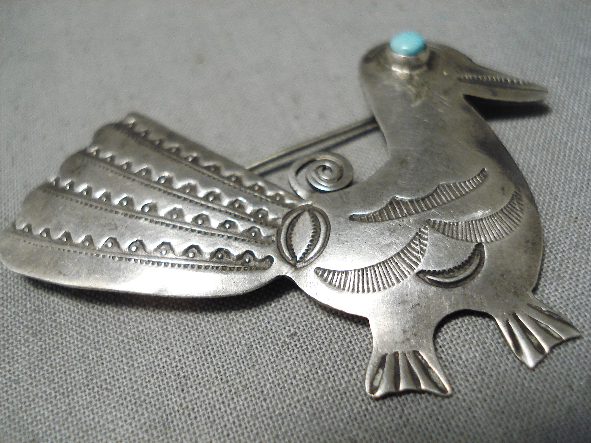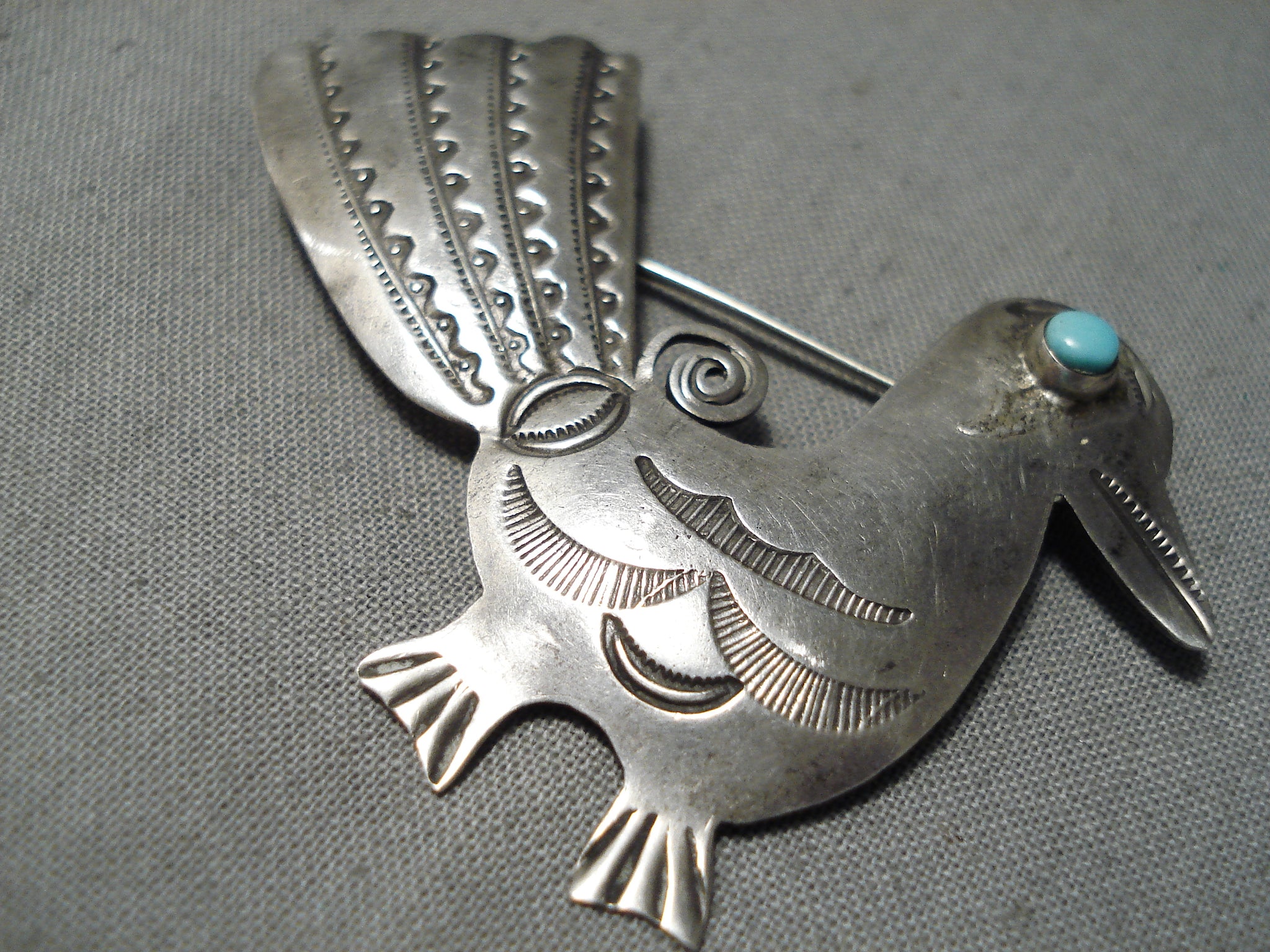 Whimsical Vintage Native American Navajo Sleeping Beauty Turquoise Sterling Silver Pin Old