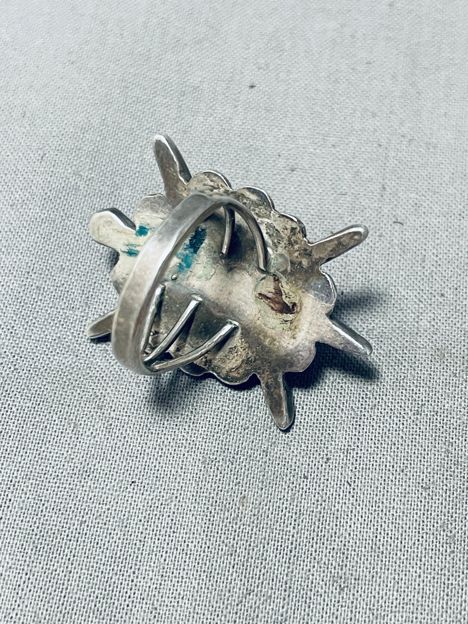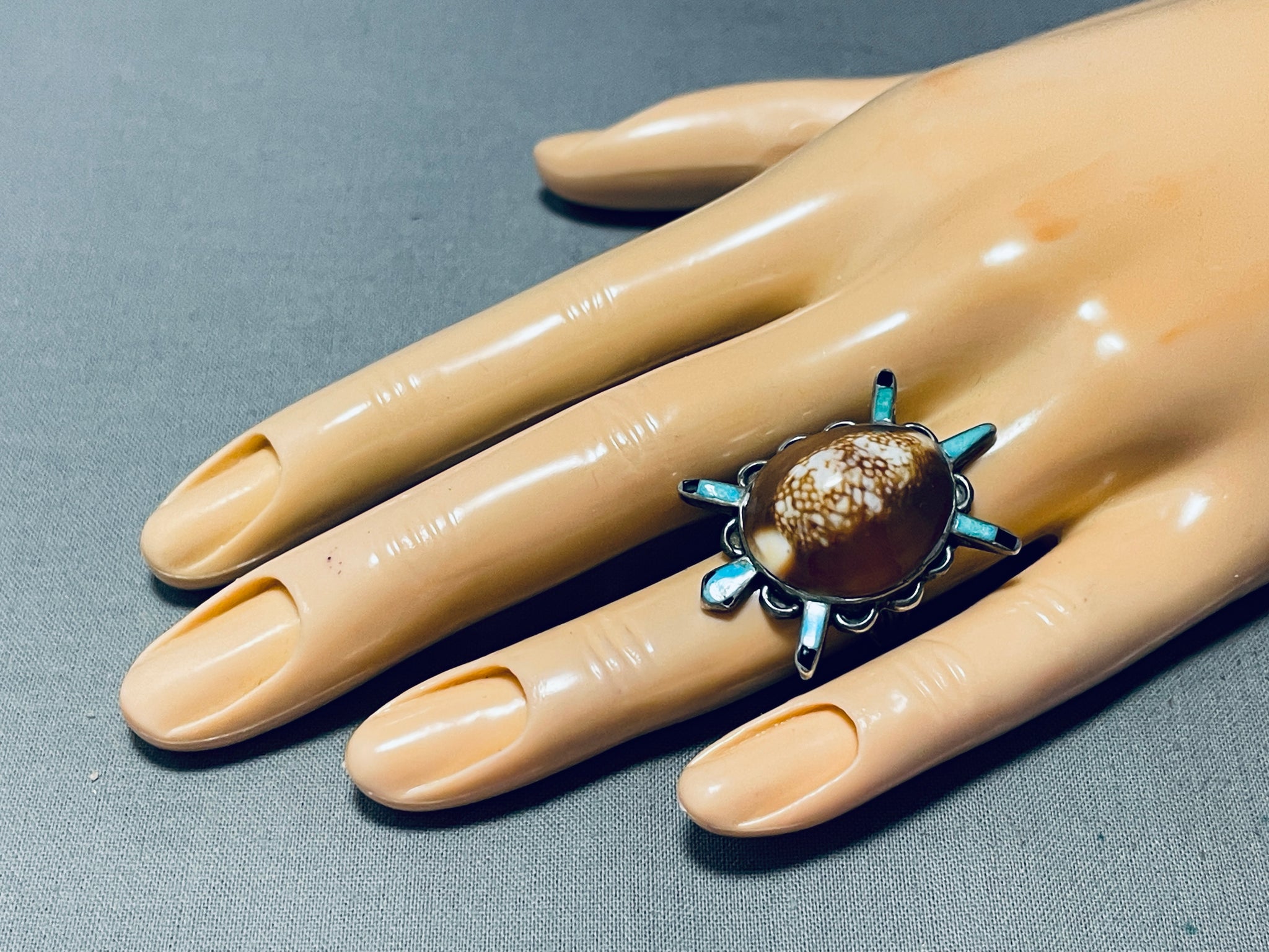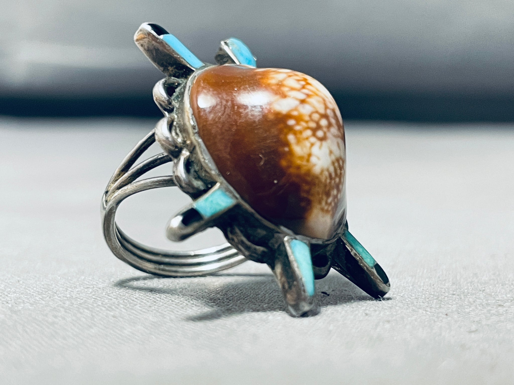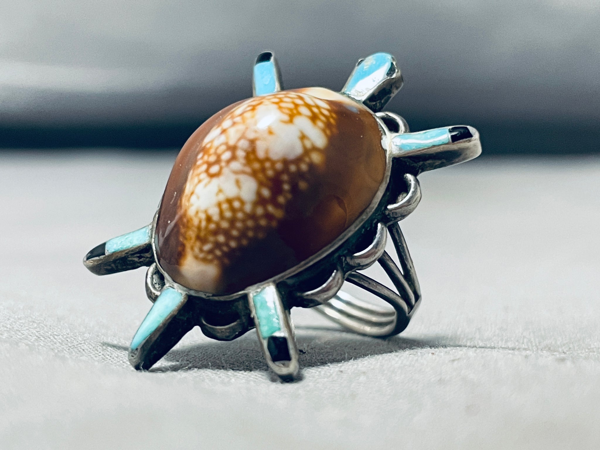 Whimsical Vintage Native American Navajo Turquoise Jet Shell Sterling Silver Turtle Ring